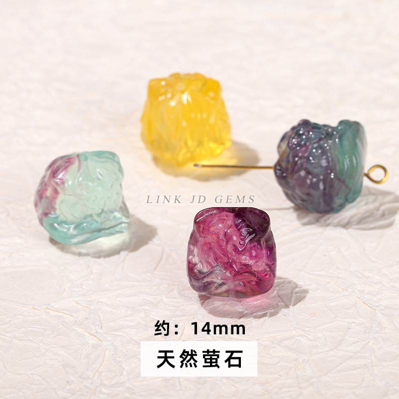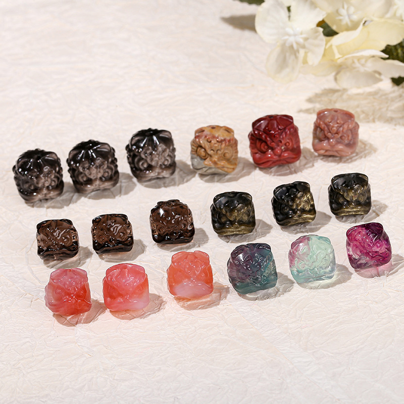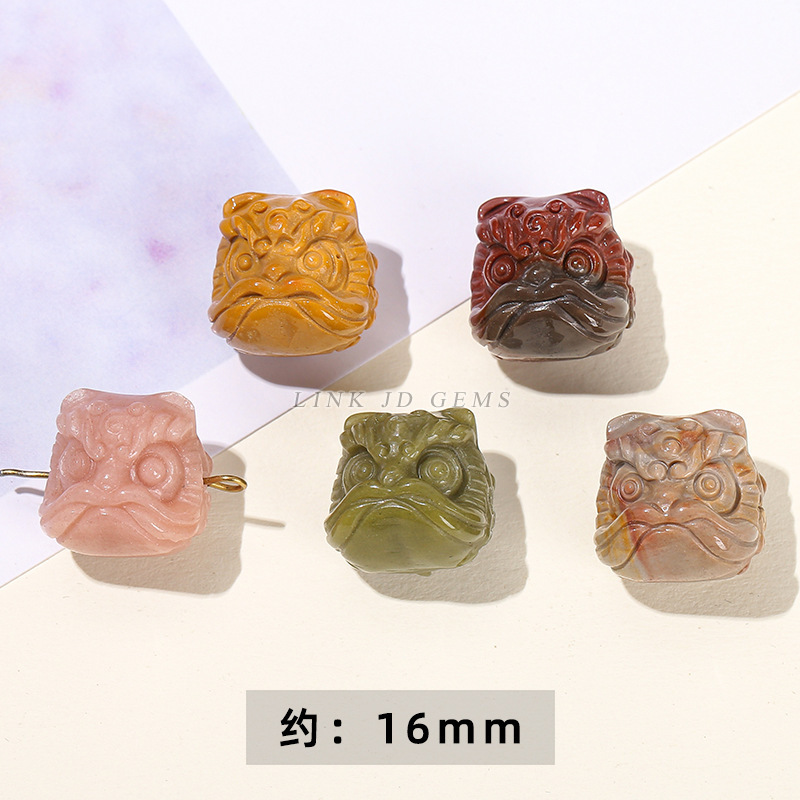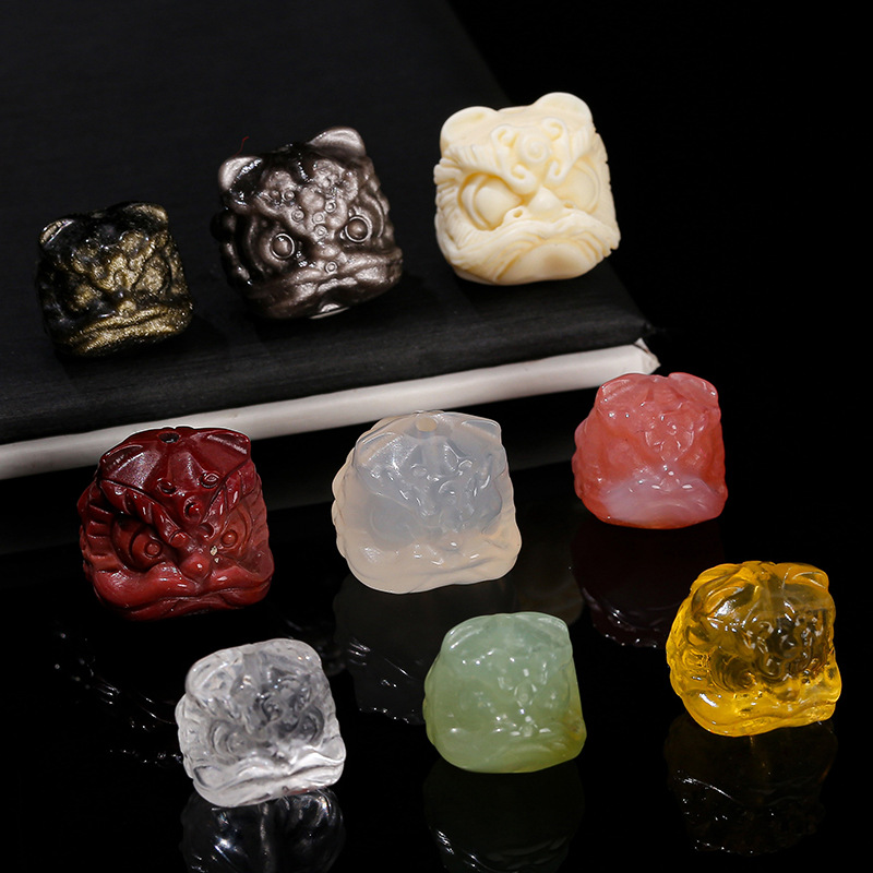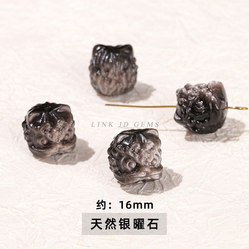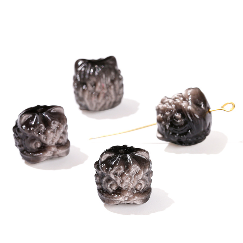 晶德珠宝 天然石水晶银曜石醒狮头雕刻件散珠diy饰品配饰挂件批发