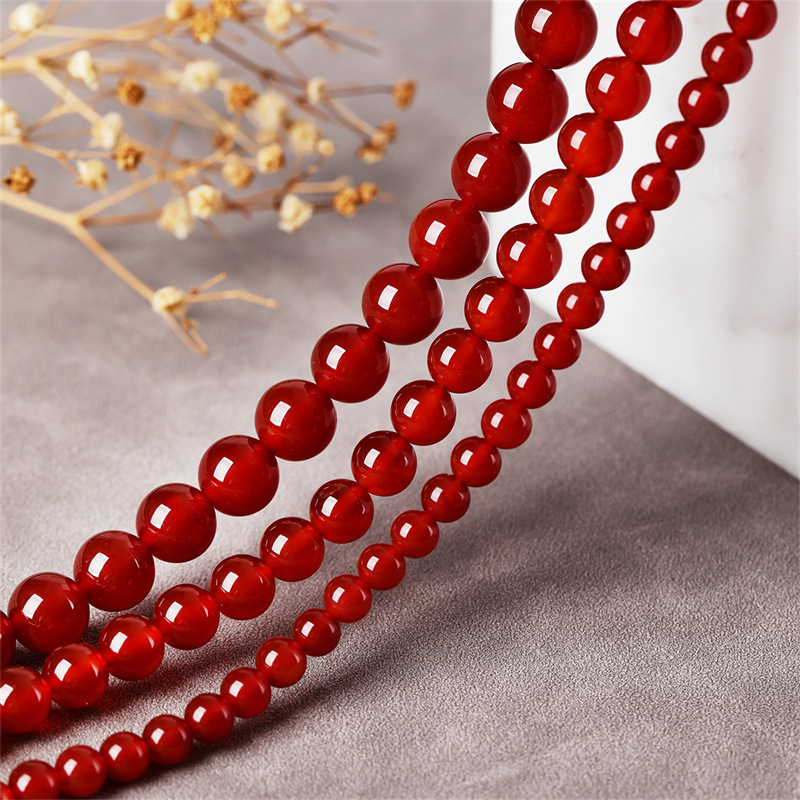 天然红玛瑙散珠长链隔珠半成品diy饰品配件手工串珠配饰圆珠批发