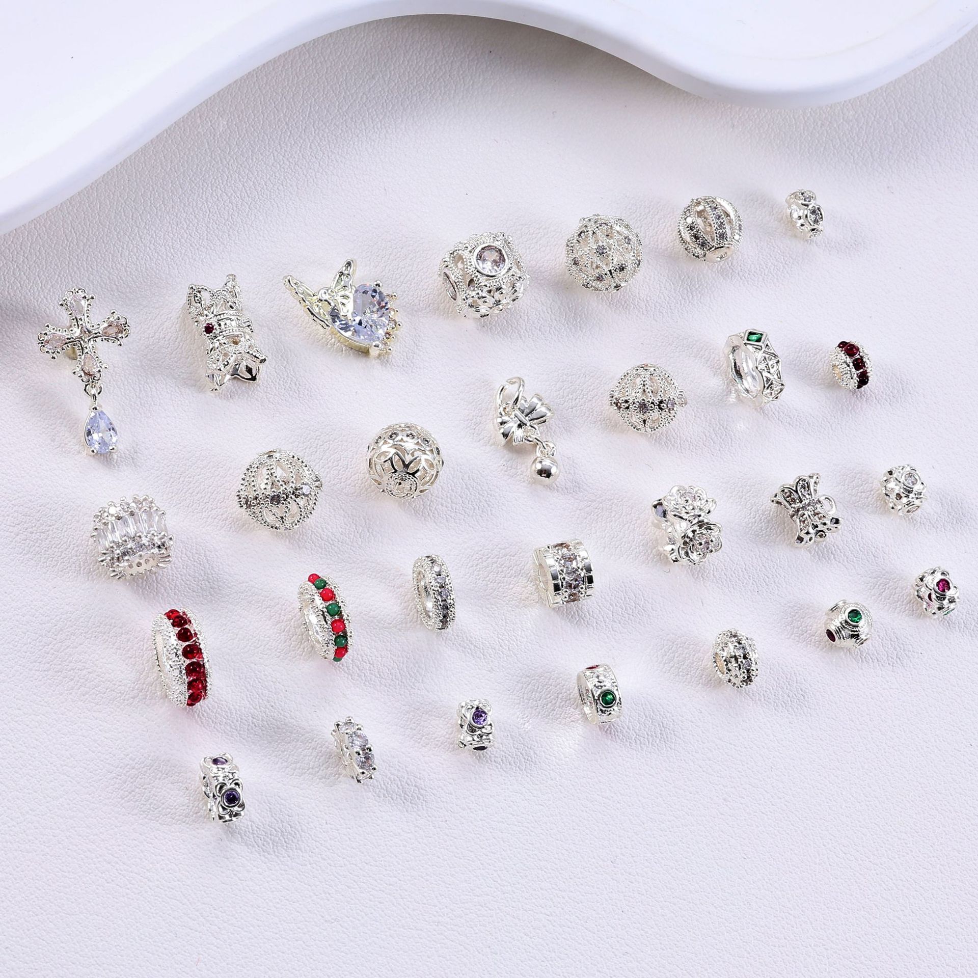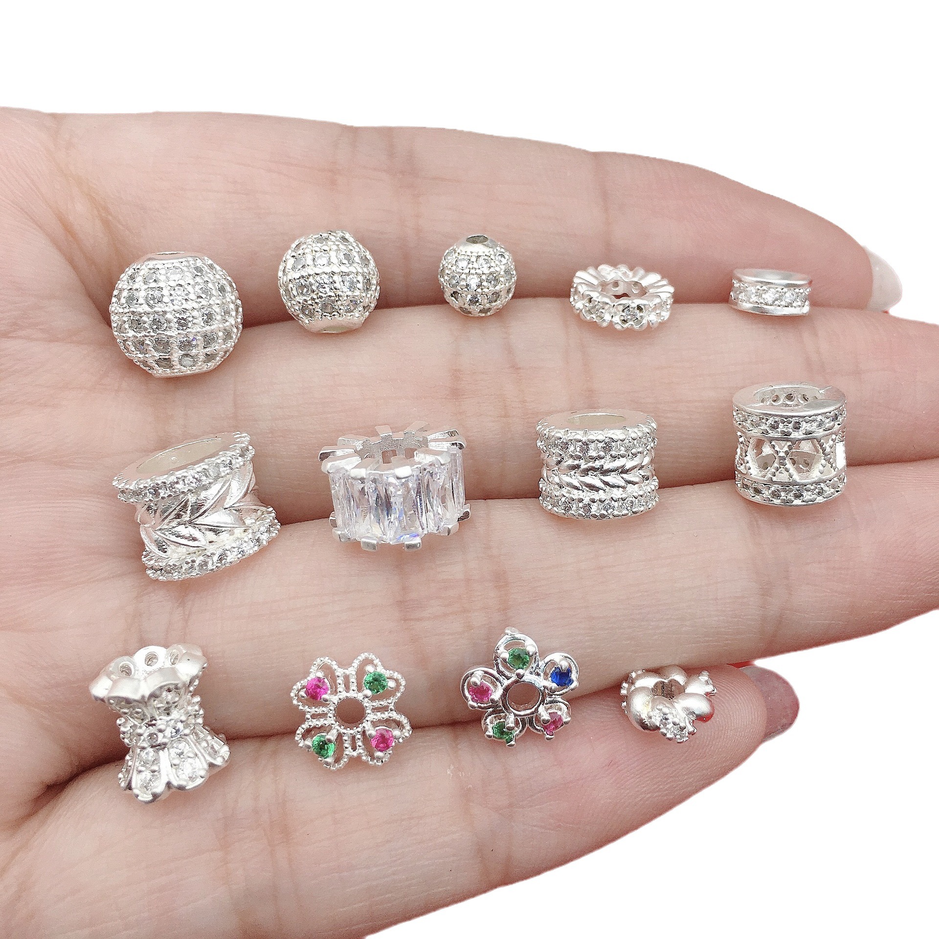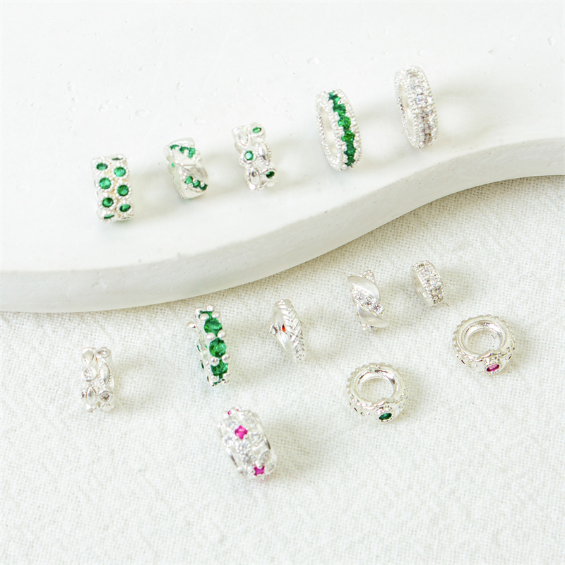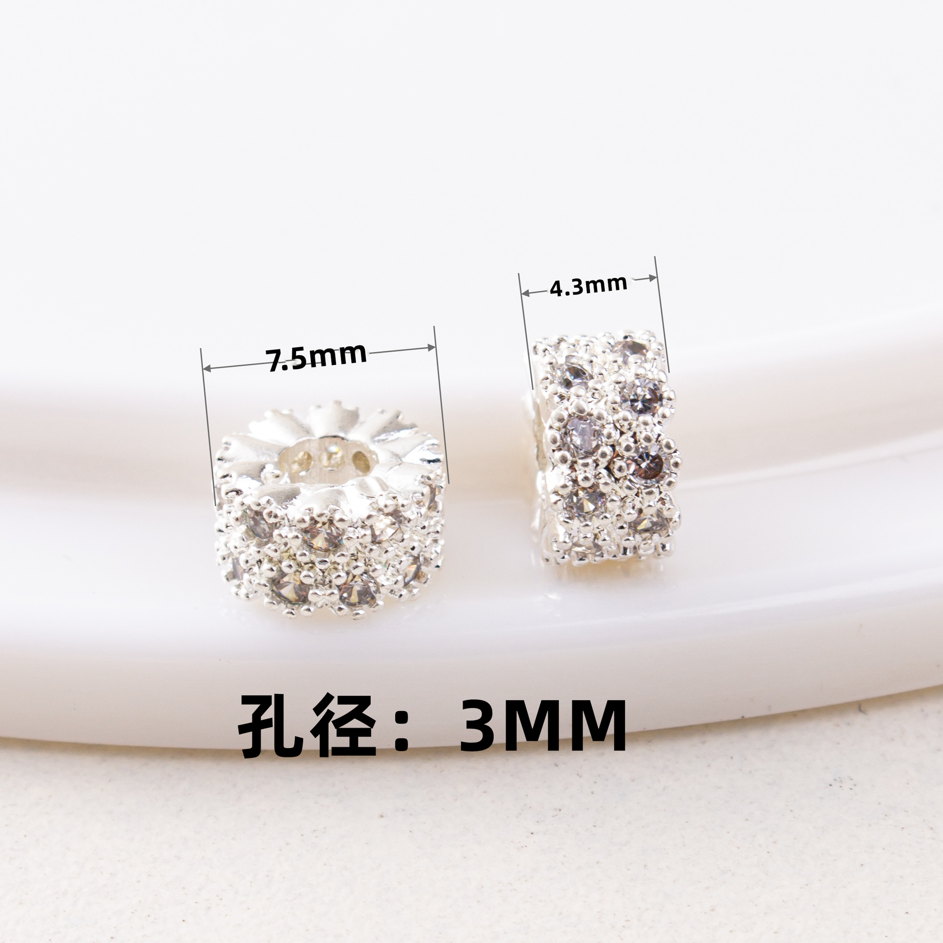银微镶饰品配件锆石隔片手工diy手链项链车轮隔珠跑环花托小蛮腰