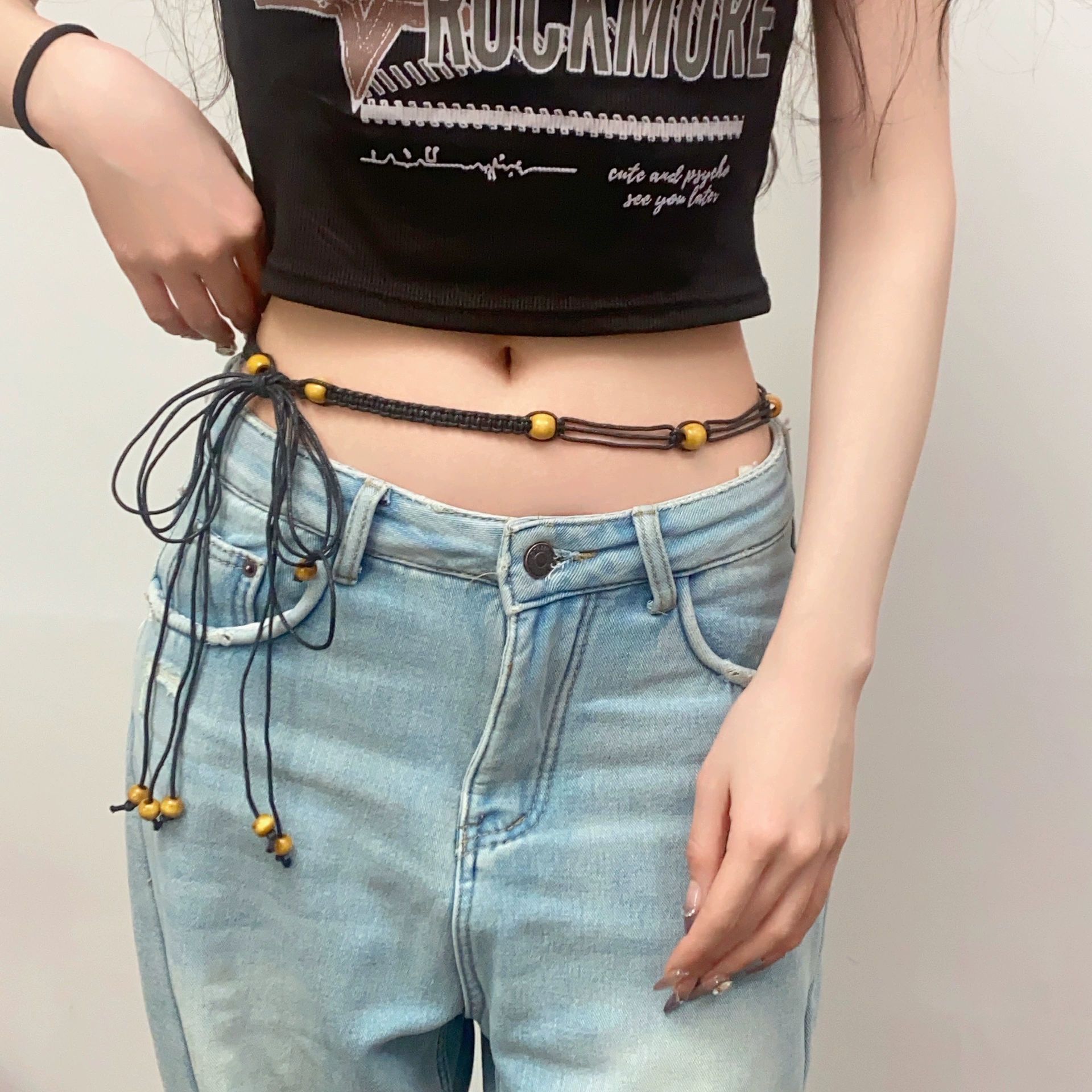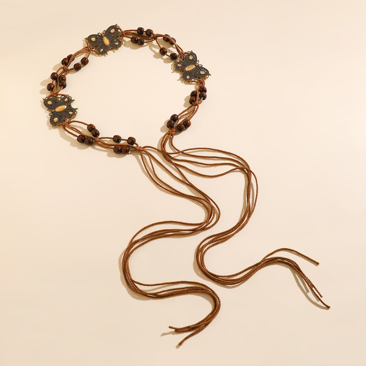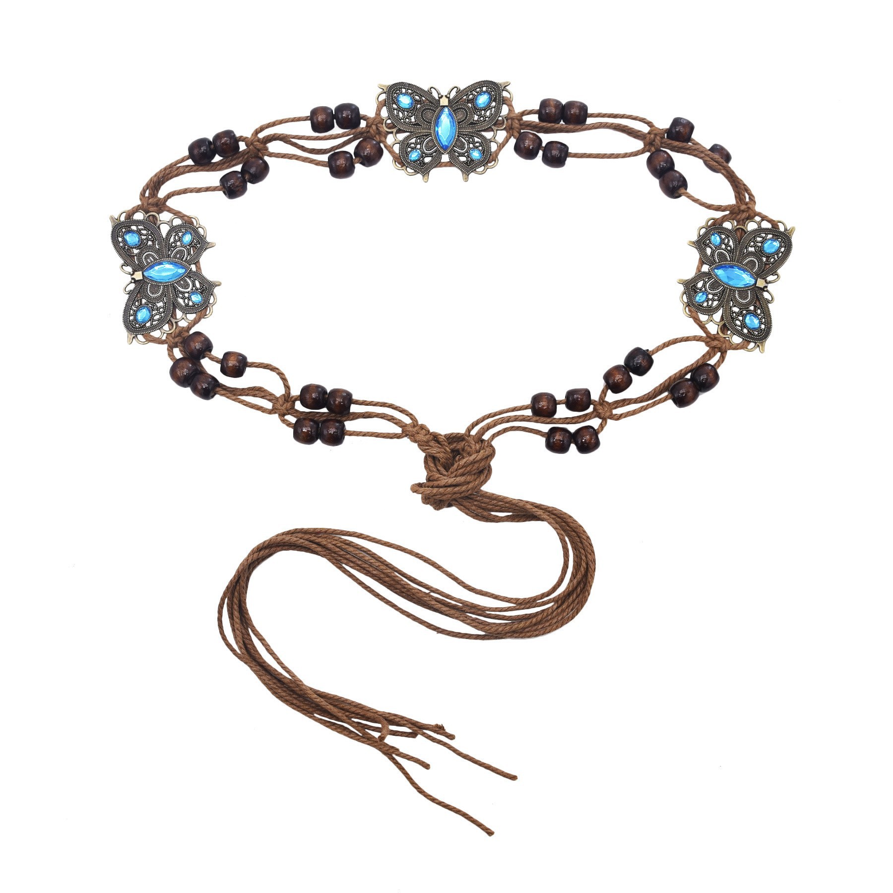 欧美跨境饰品水钻蝴蝶腰链手工编织木珠蜡绳腰带波西米亚身体链