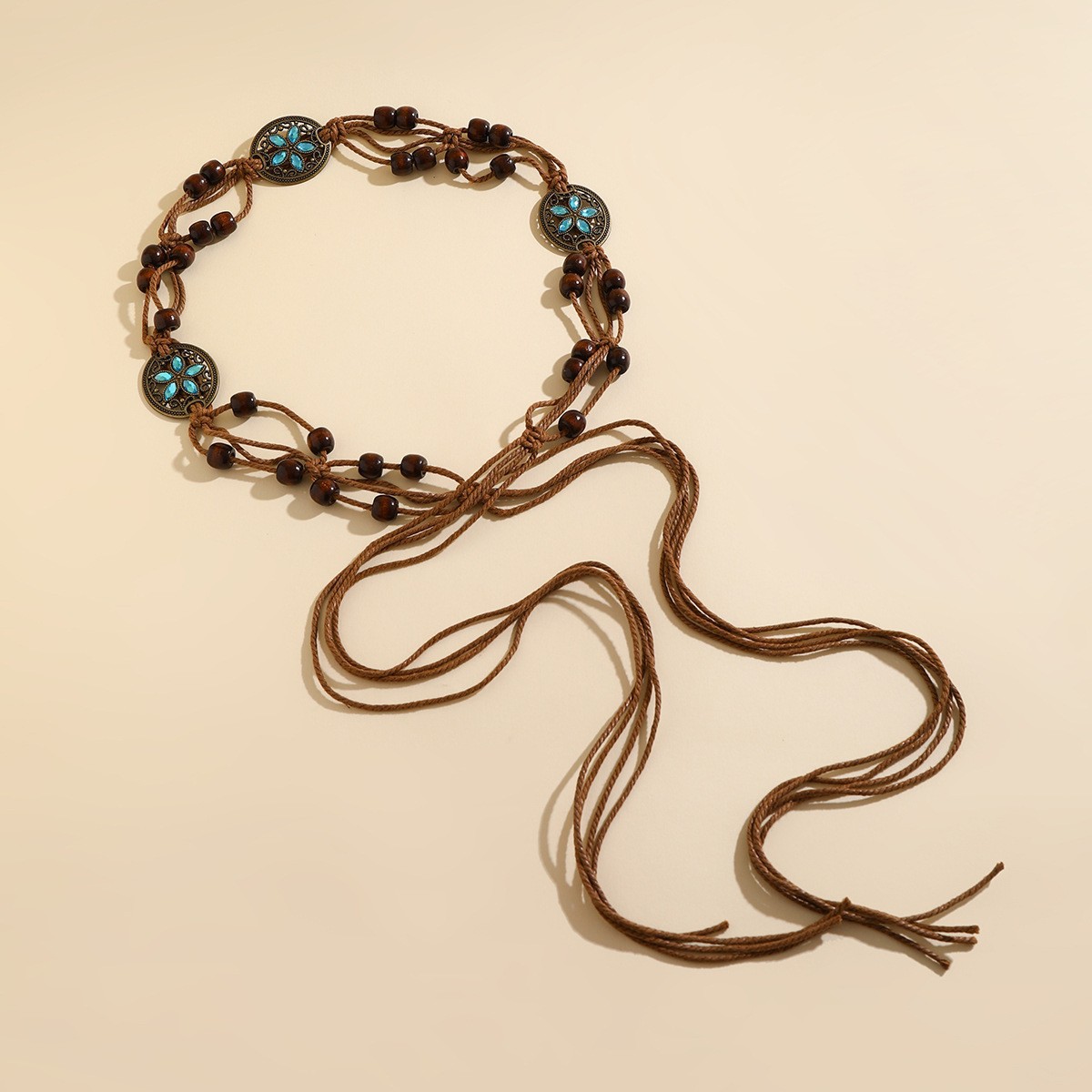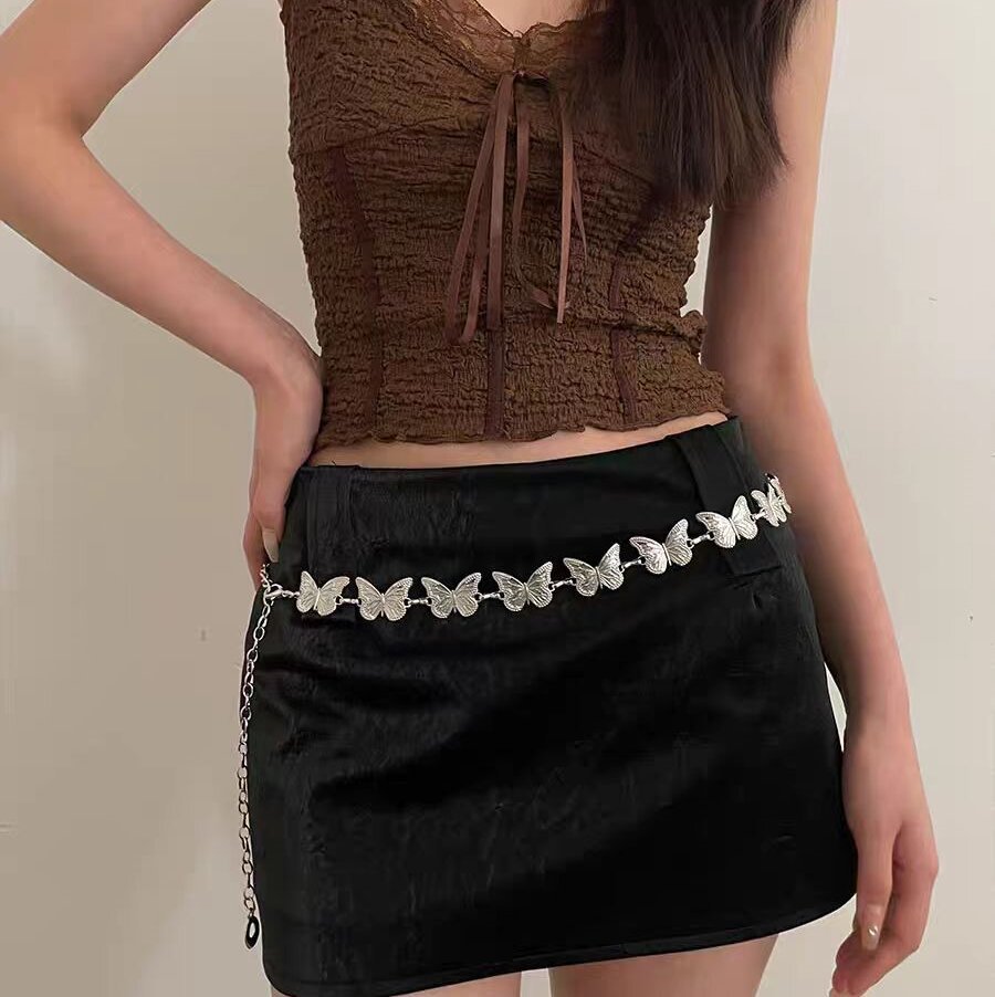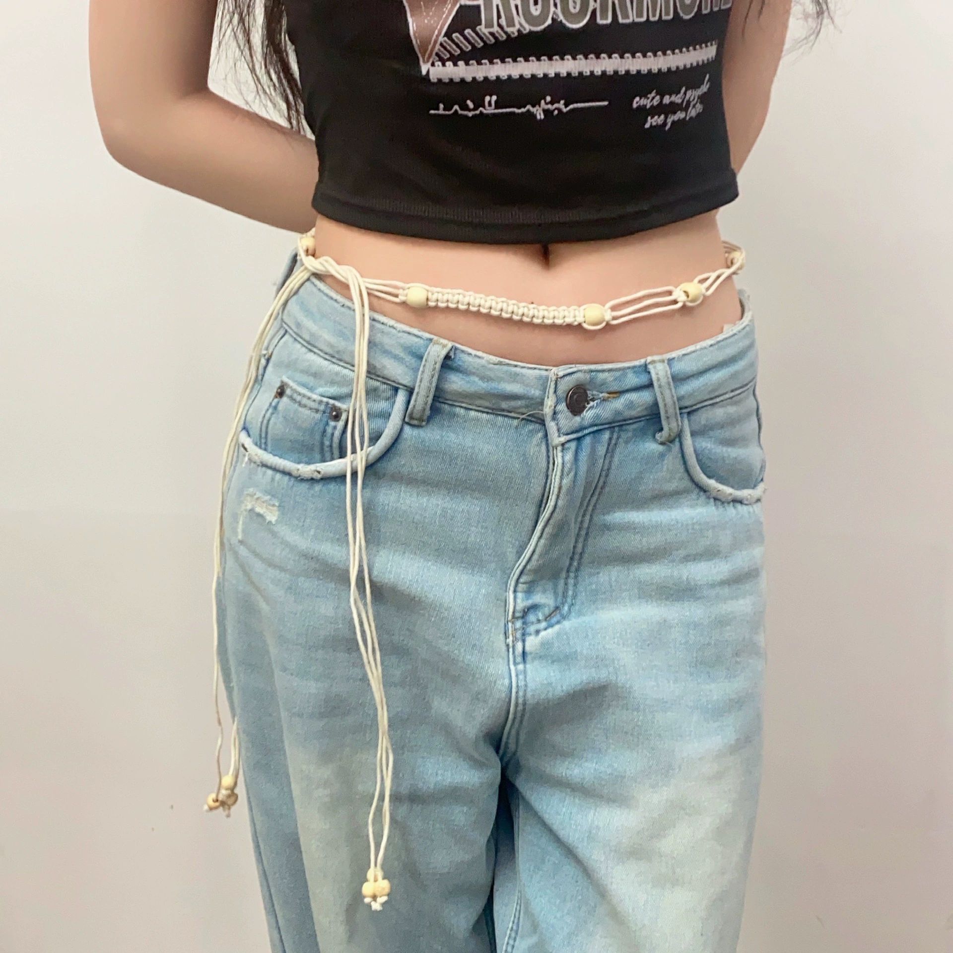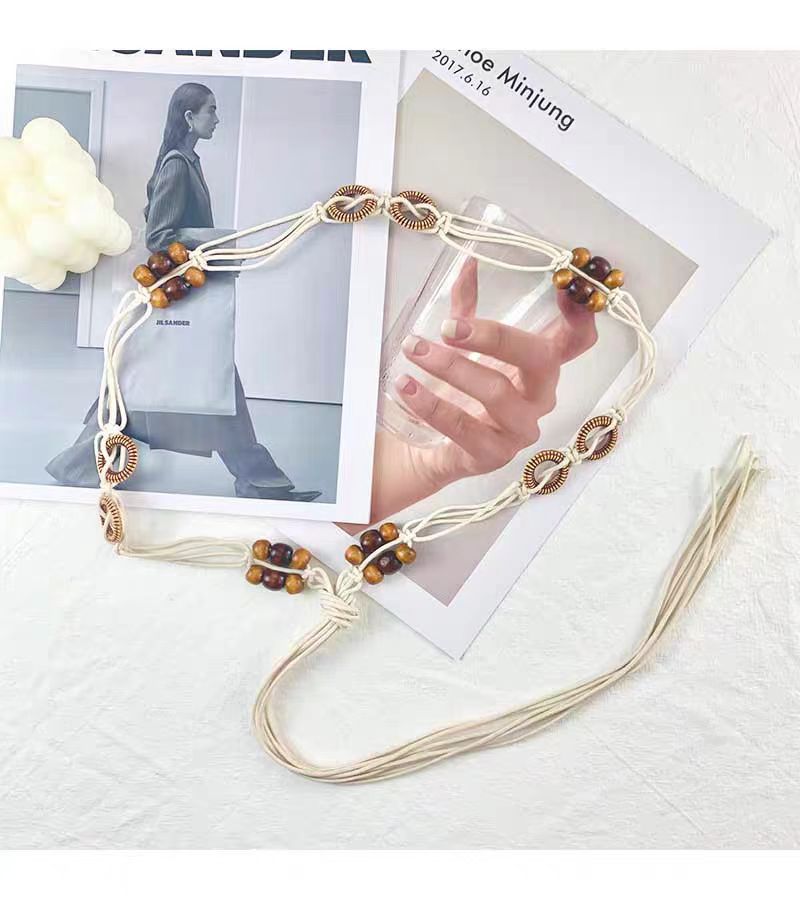 欧美跨境饰品水钻蝴蝶腰链手工编织木珠蜡绳腰带波西米亚身体链