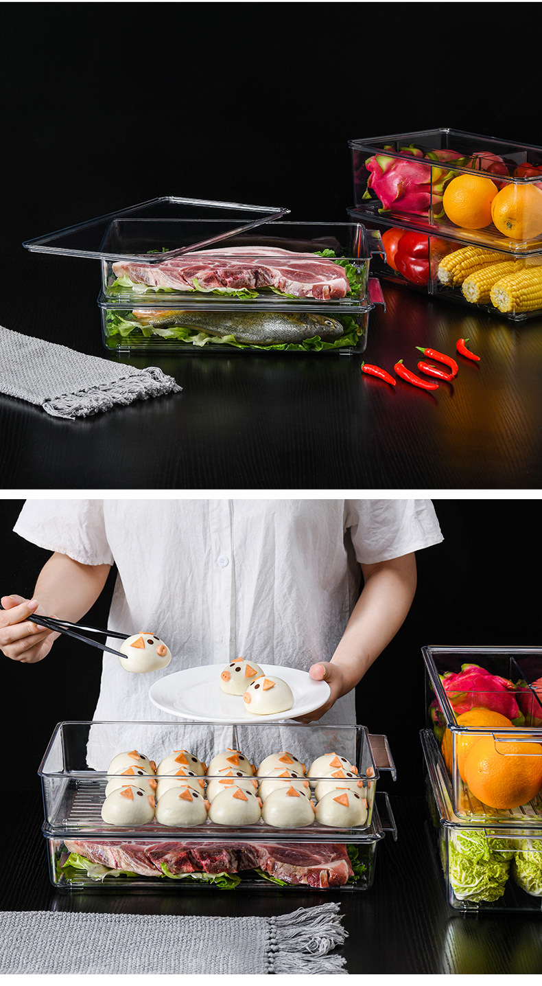 冰箱食物收纳盒大容量带盖密封储物罐加厚保鲜盒透明厨房收纳框
