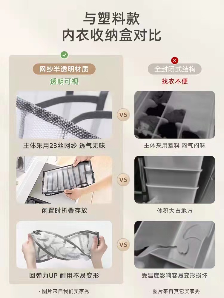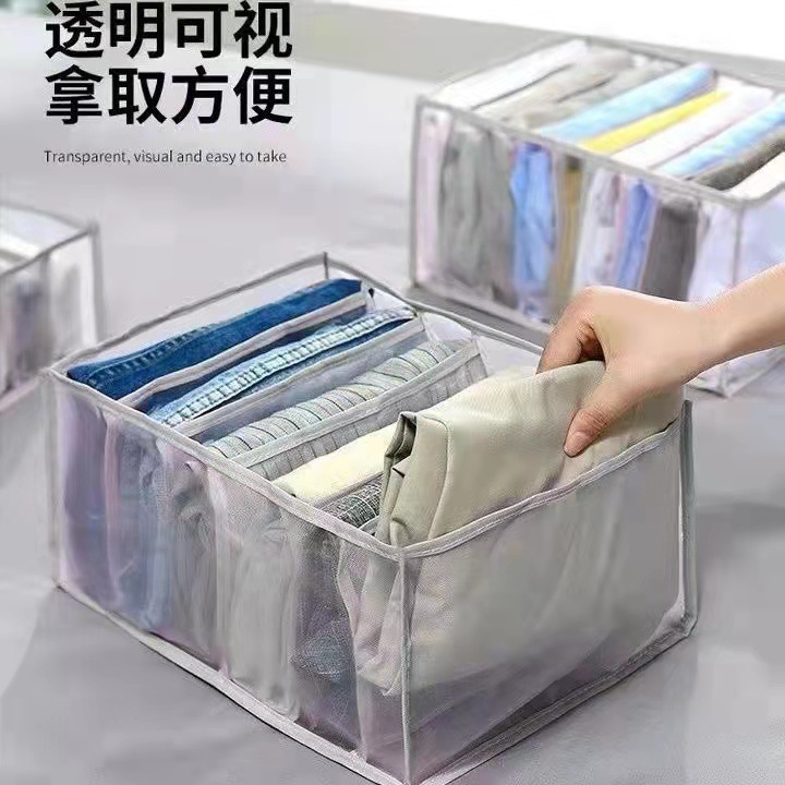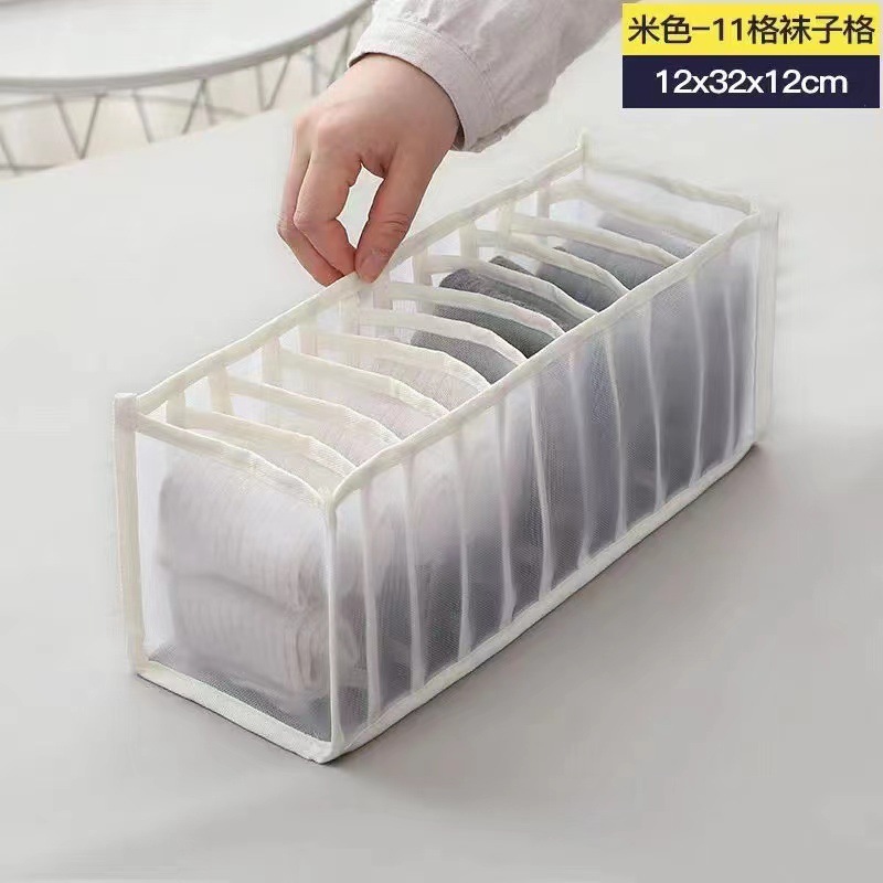 跨境内衣收纳盒牛仔裤收纳神器分格式收纳网格宿舍袜子整理箱网纱