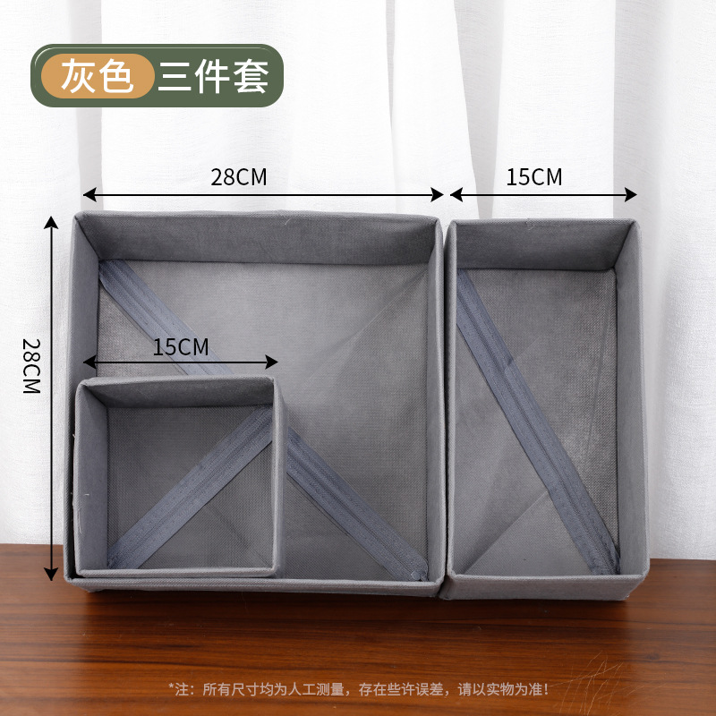 灰色收纳抽屉小盒子3件套大中小号袜子内衣收纳盒整理盒亚马逊
