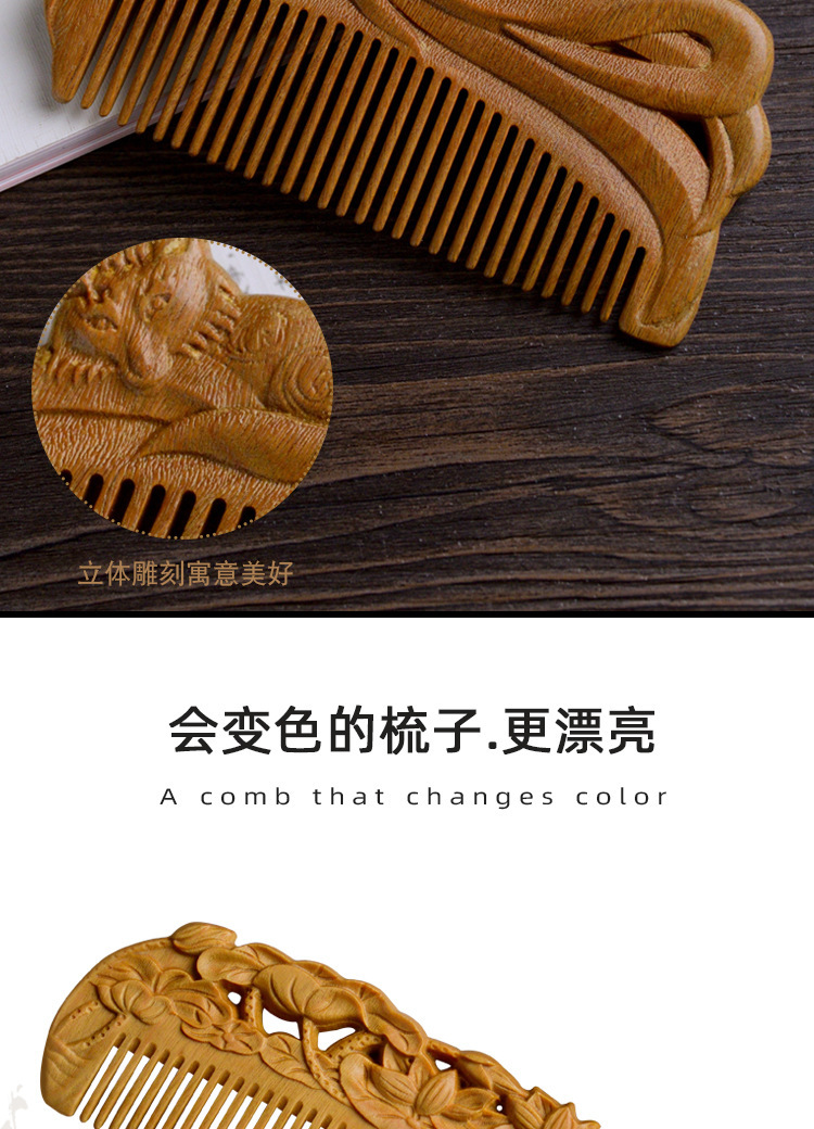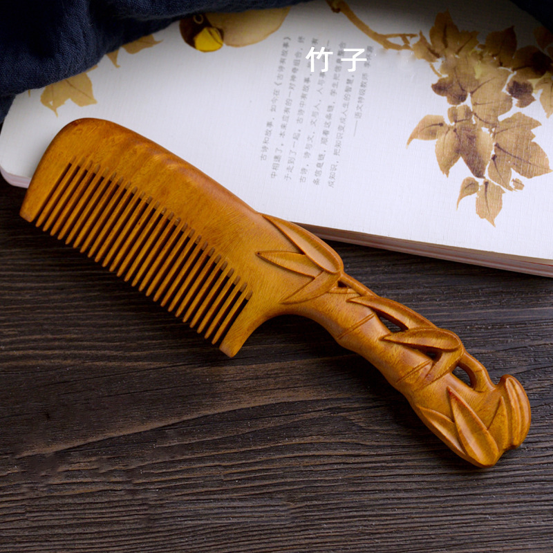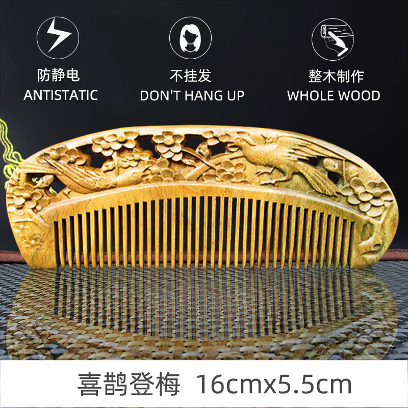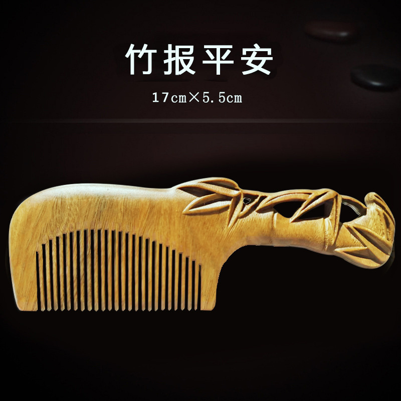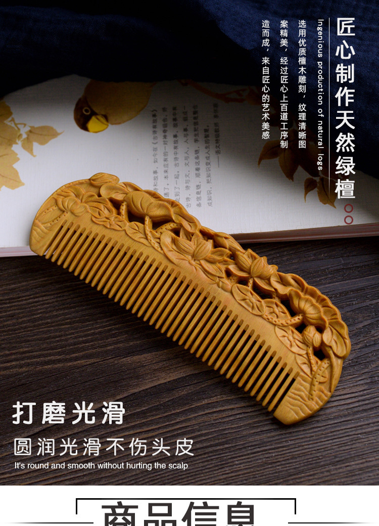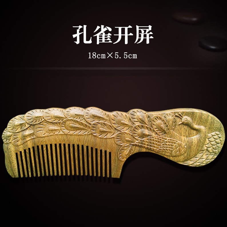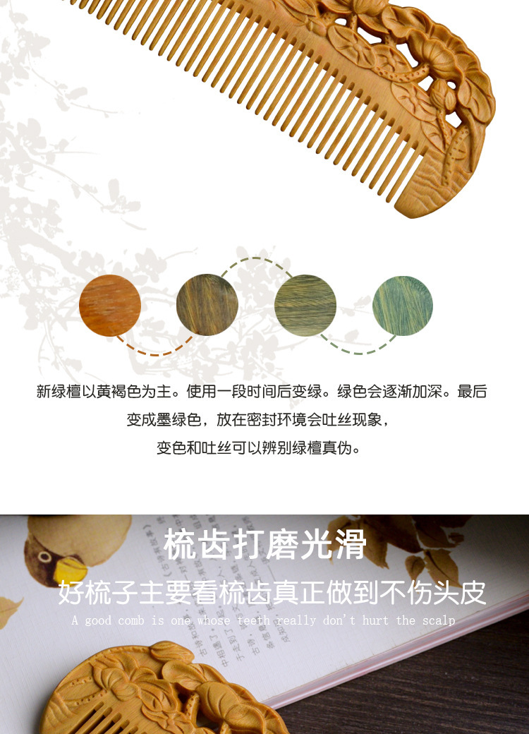 天然绿檀木梳绿檀雕花梳子檀香木美发梳黑金檀雕花木梳刻字梳