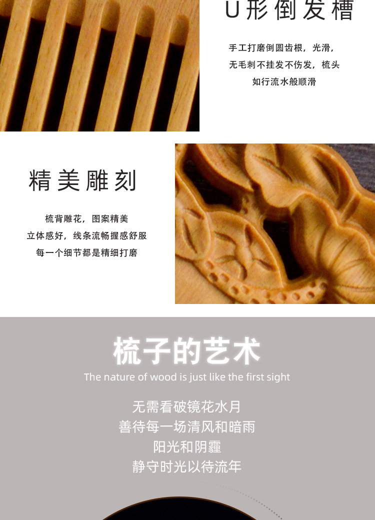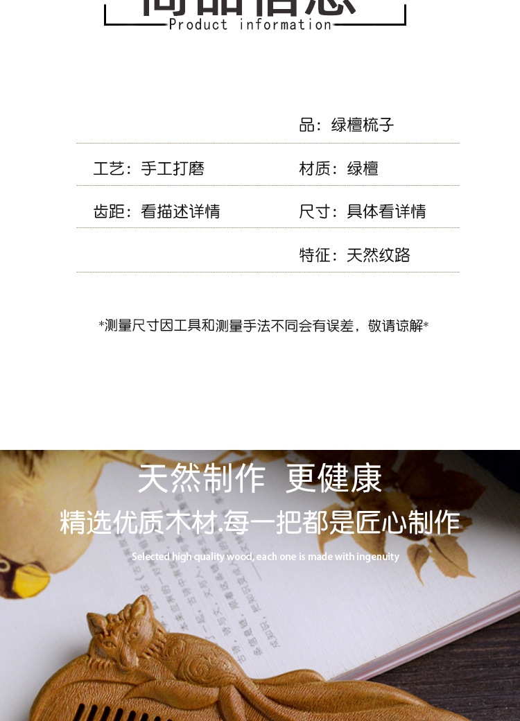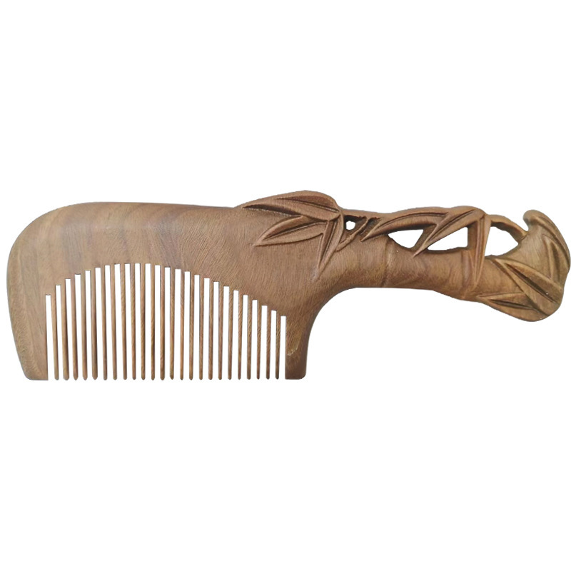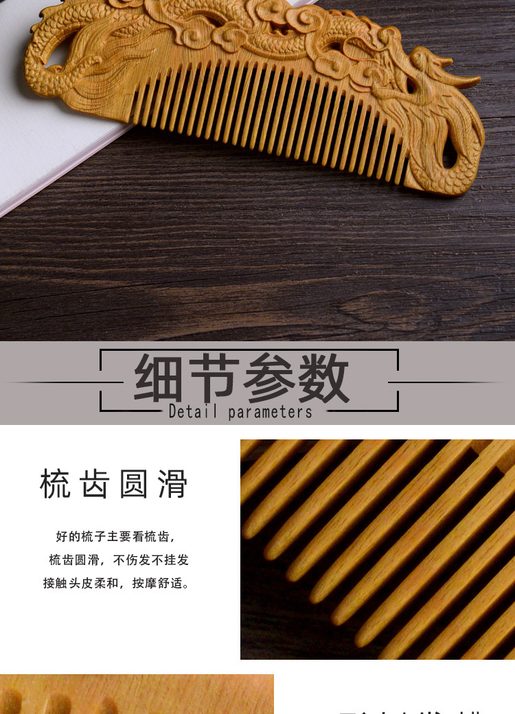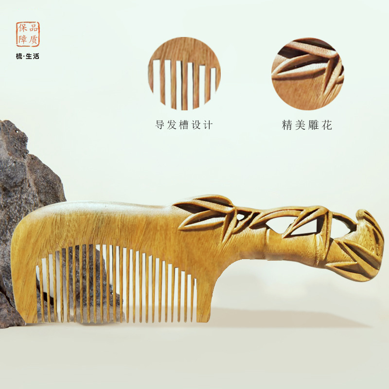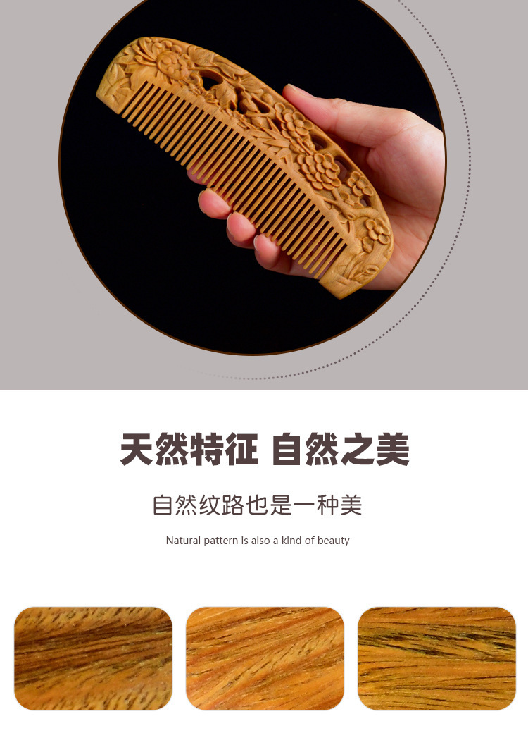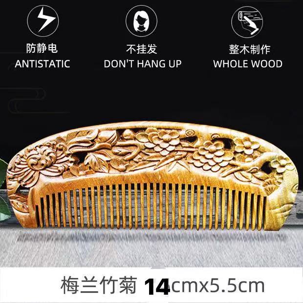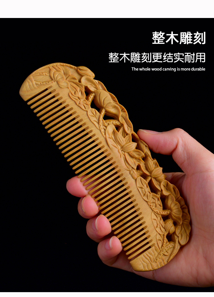 天然绿檀木梳绿檀雕花梳子檀香木美发梳黑金檀雕花木梳刻字梳