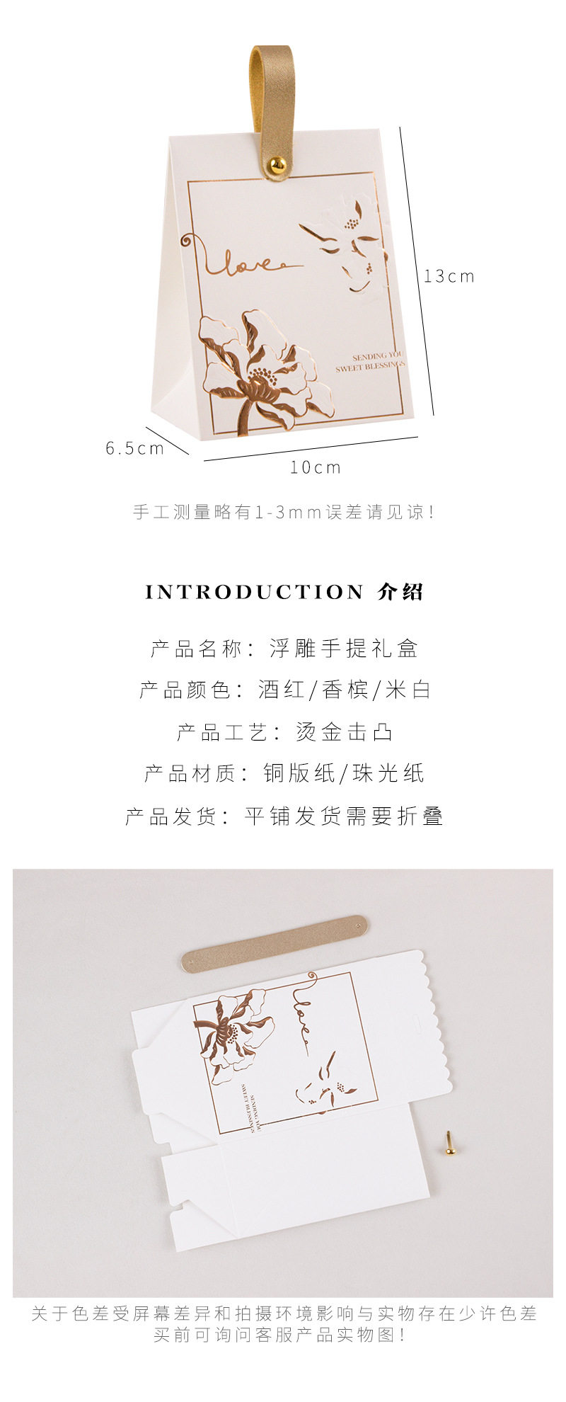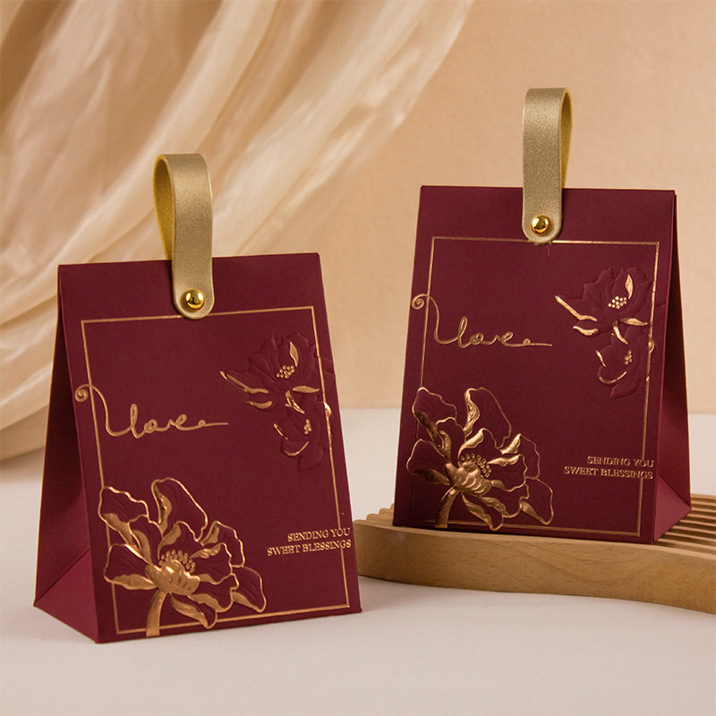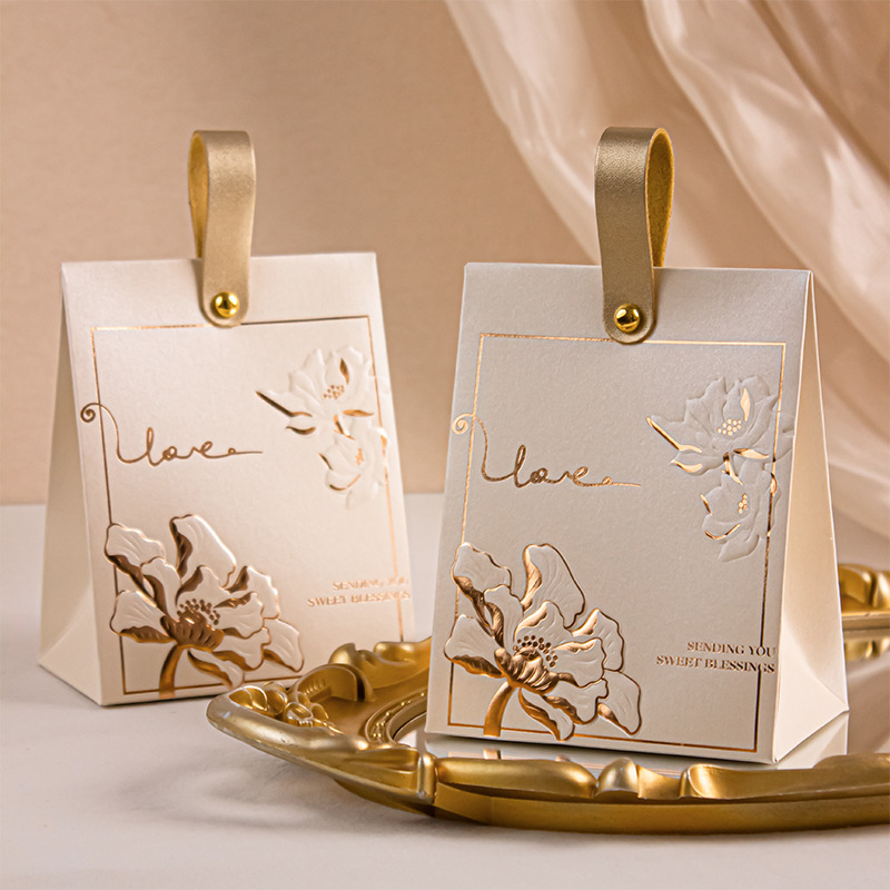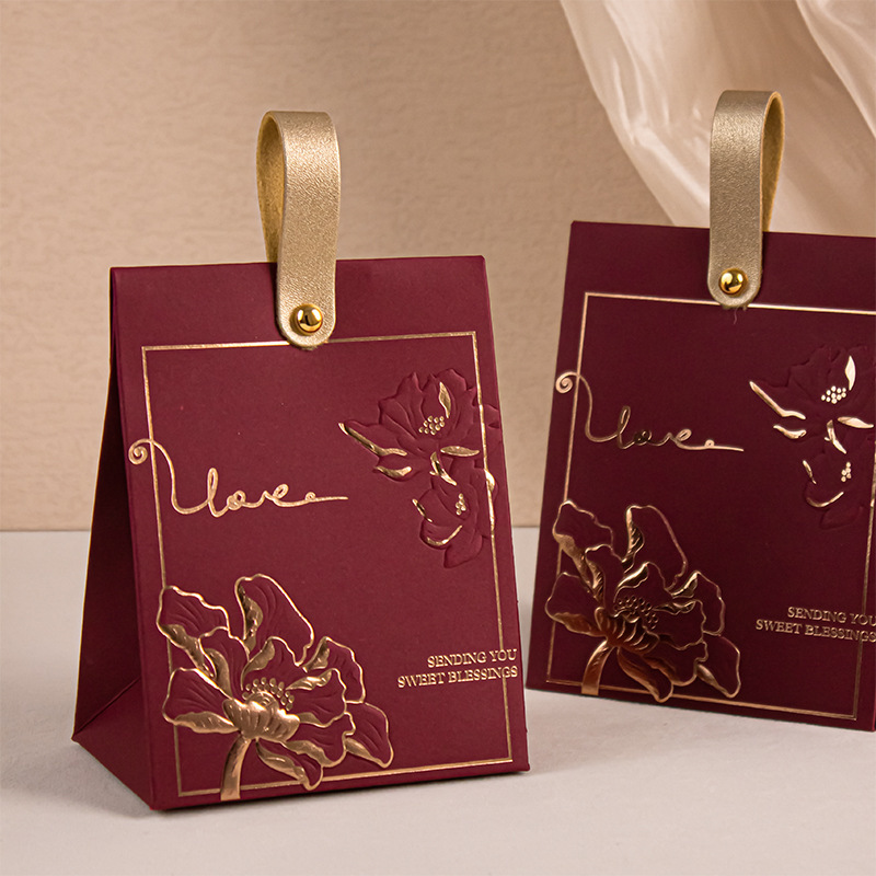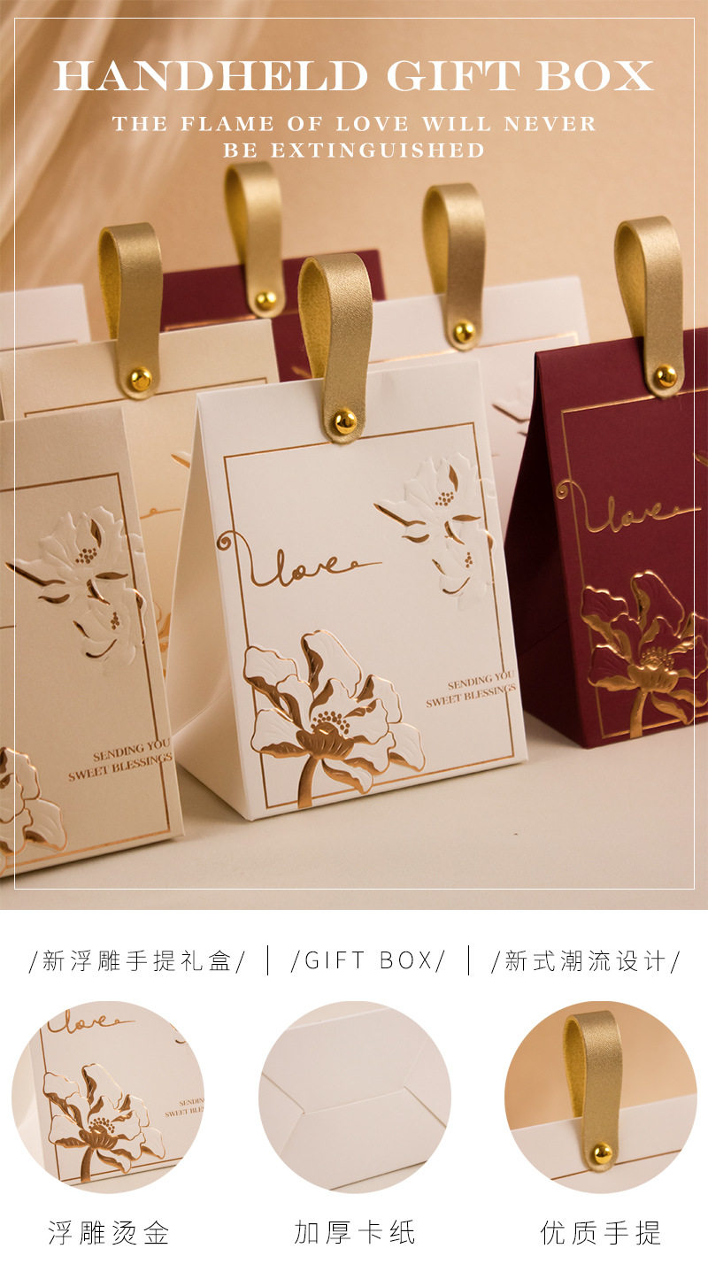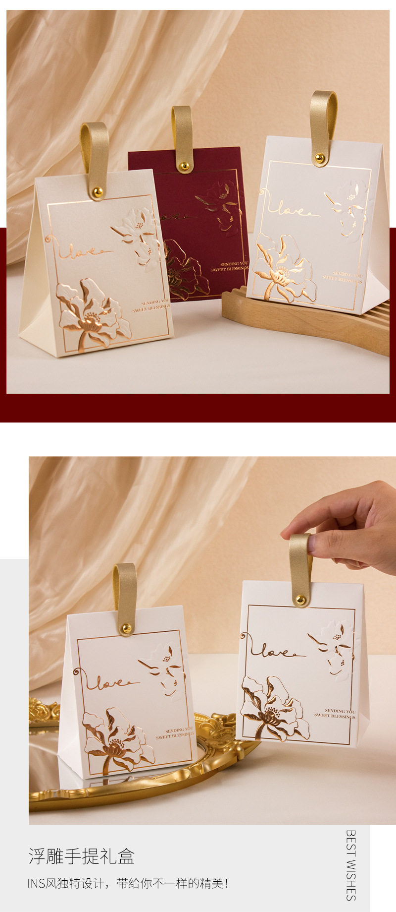 2025新款结婚喜糖盒高级感法式手提喜糖盒复古浮雕玫瑰喜糖盒子空