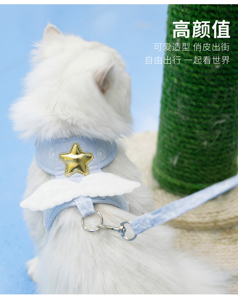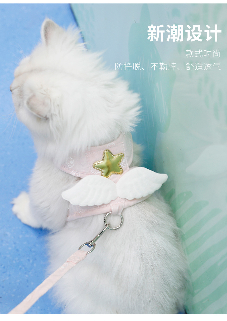 天使翅膀猫咪牵引绳背心式牵引带狗狗幼猫外出牵引防挣脱宠物用品