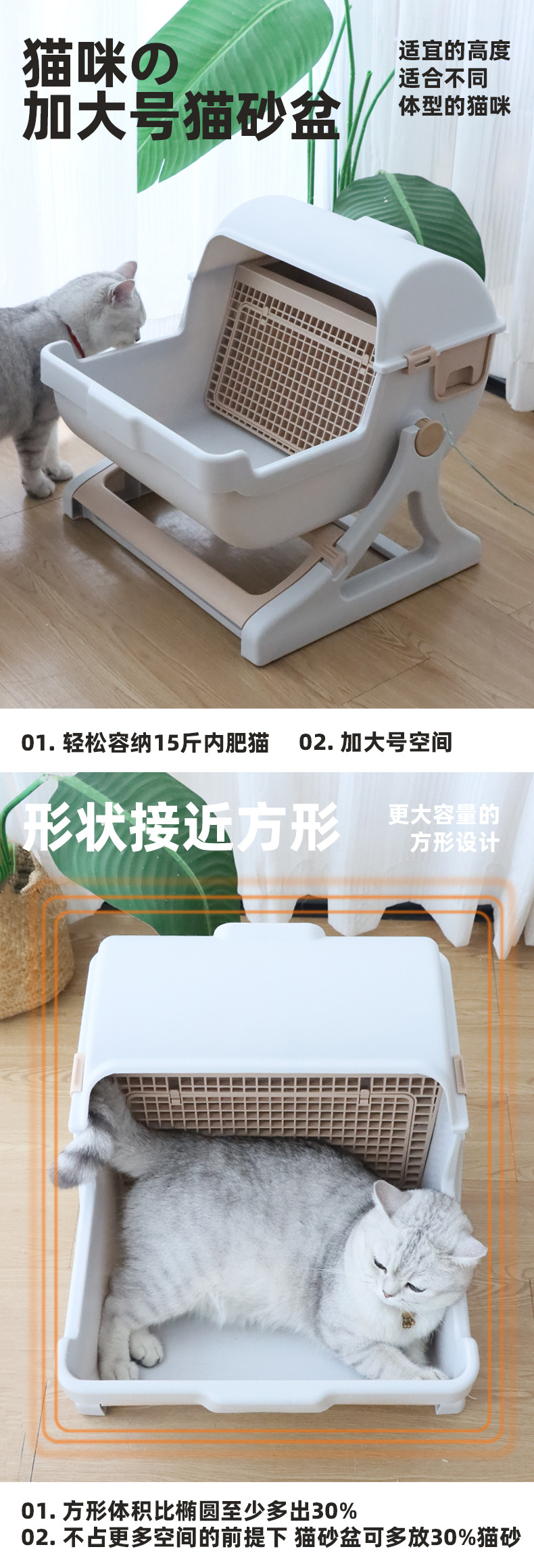 跨境半自动猫砂盆防外溅超大号半封闭猫咪厕所厂家批发懒人猫厕所