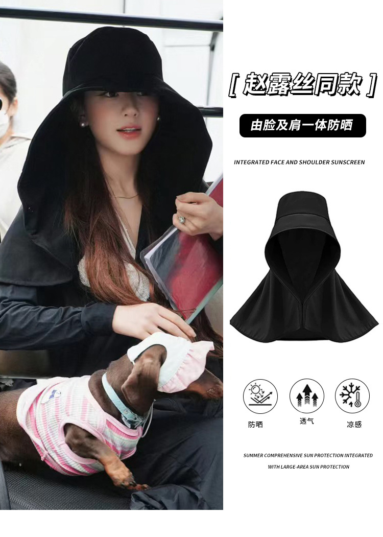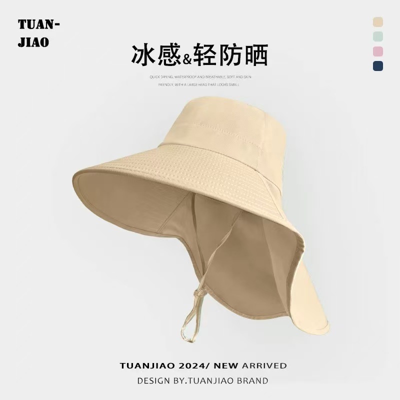 Temu跨境代发防晒帽女新款超大披肩遮阳帽大帽檐防紫外线遮阳帽子