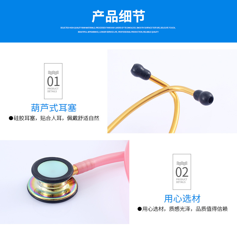供应金属镀彩多功能听诊器 单面成人听诊器 玫瑰金不锈钢听诊器