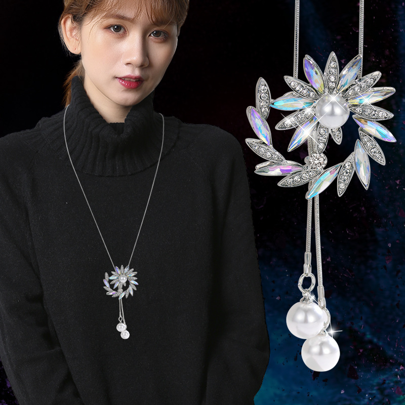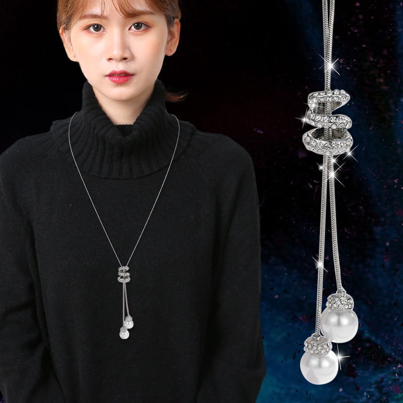 韩版毛衣项链高级感轻奢设计流苏珍珠毛衣链长款项链不掉色配饰品