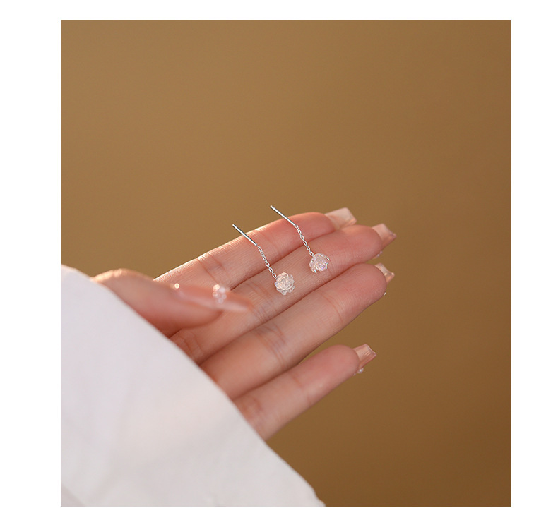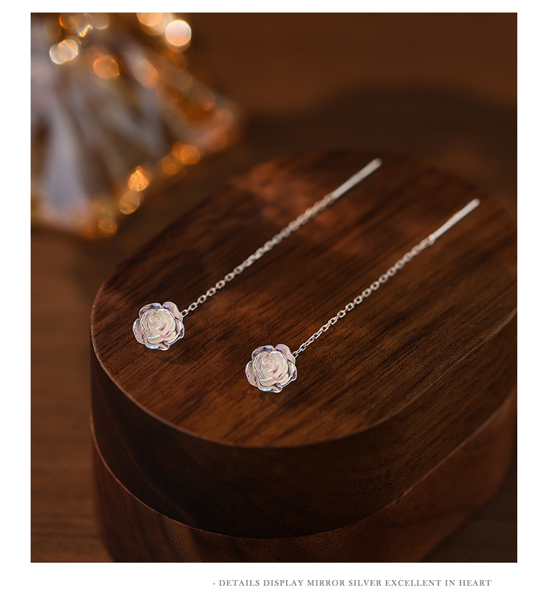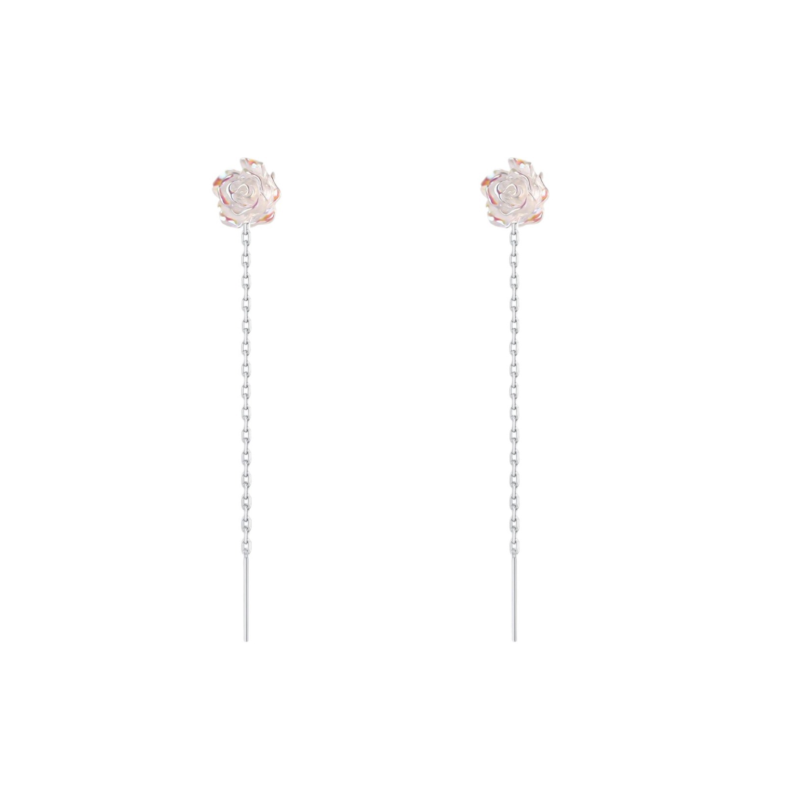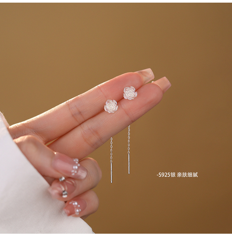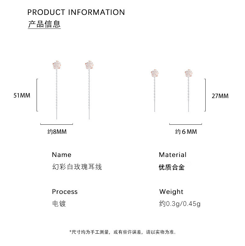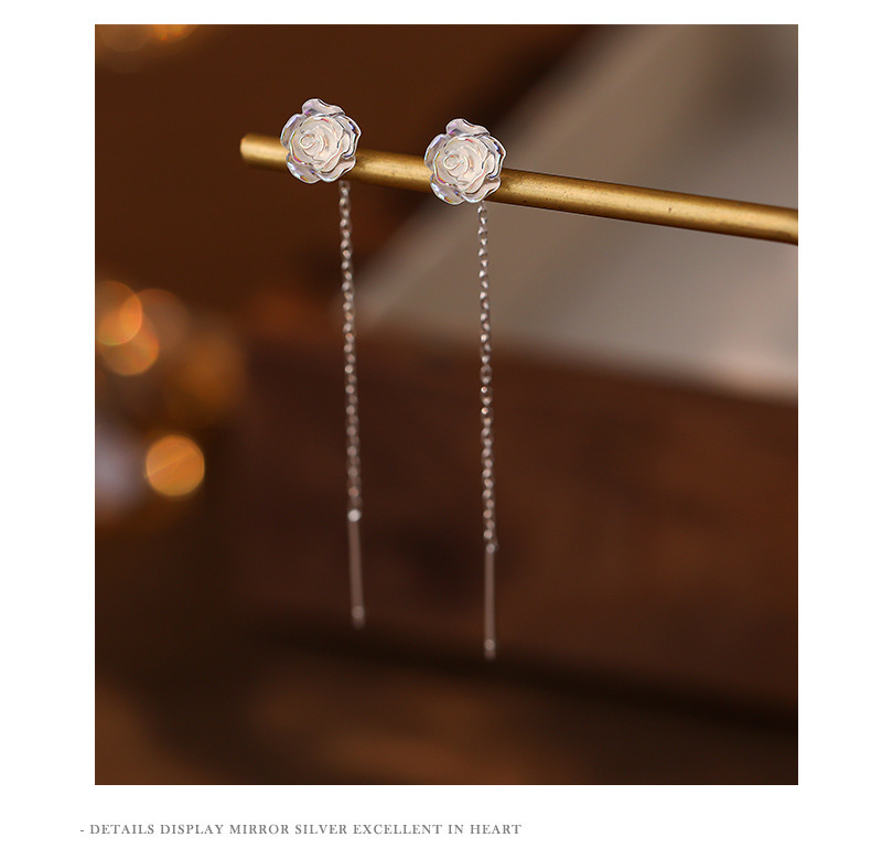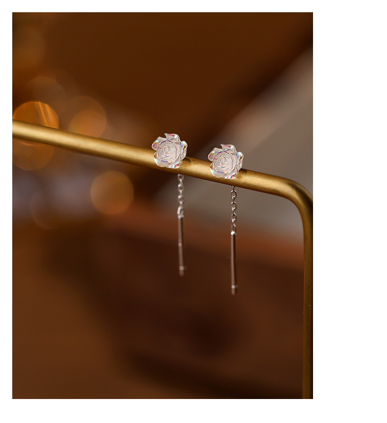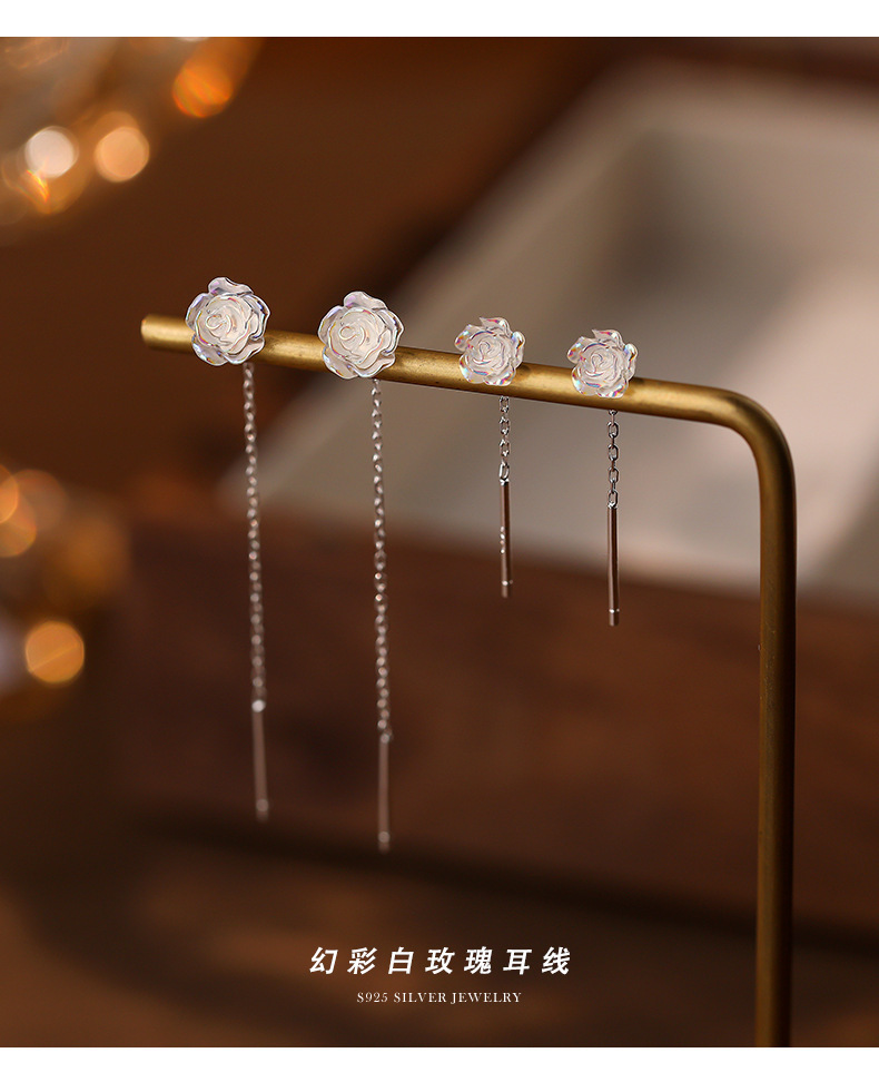 炫彩白玫瑰耳线女轻奢高级感甜美流苏耳线小巧精致养耳洞耳饰批发