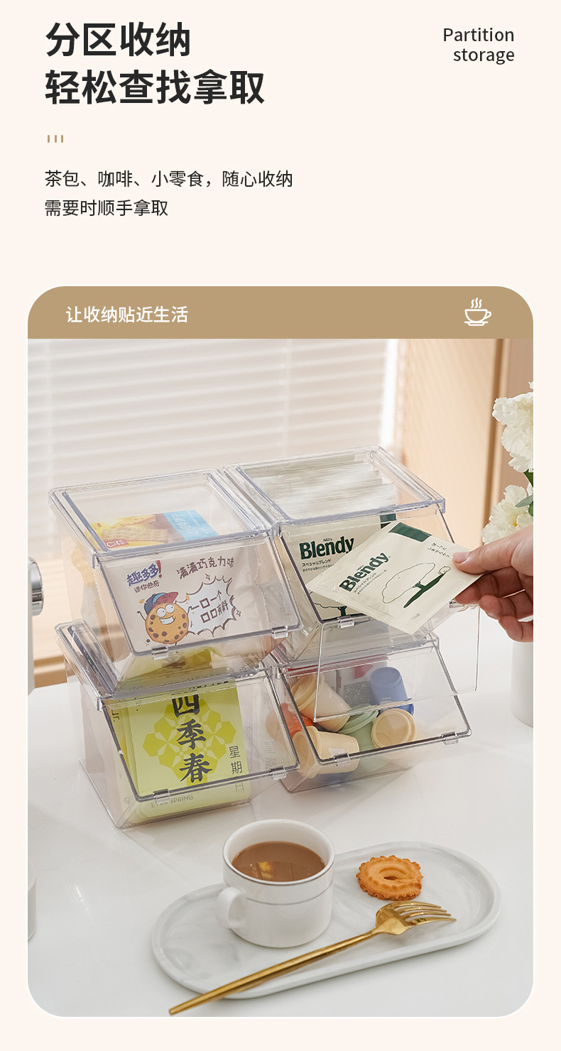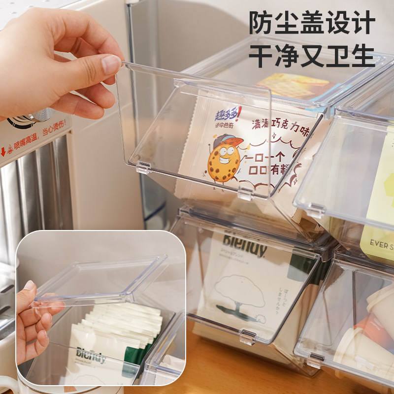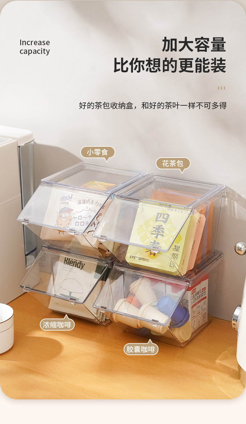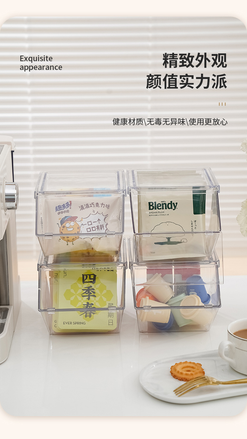 桌面化妆品带盖收纳盒茶包翻盖防尘收纳盒胶囊咖啡办公室茶水间