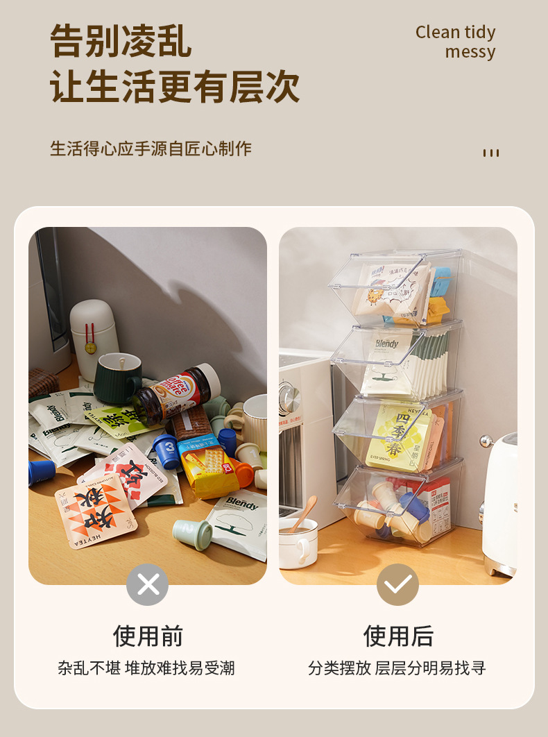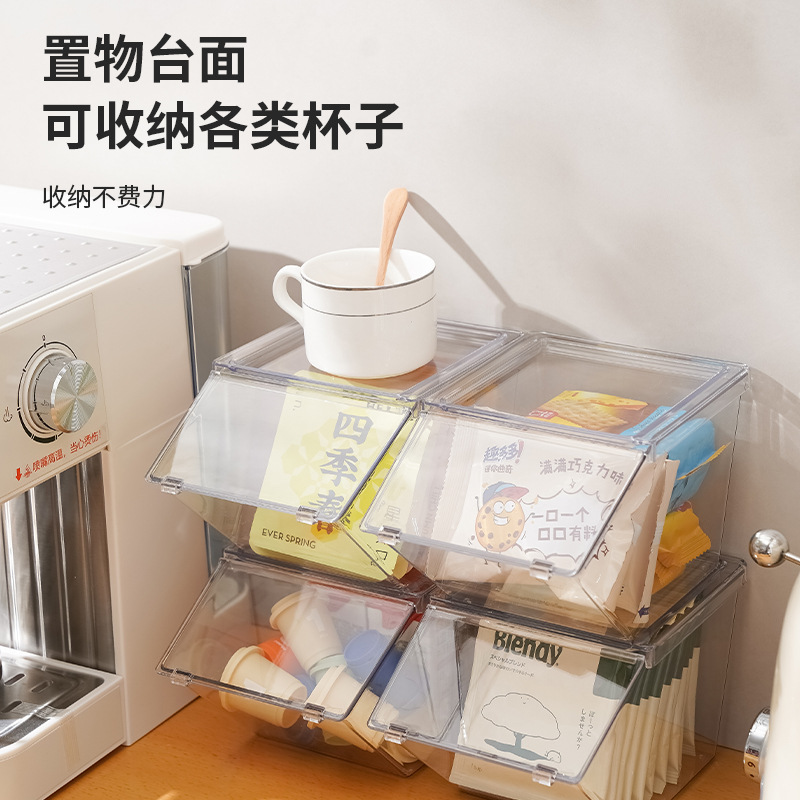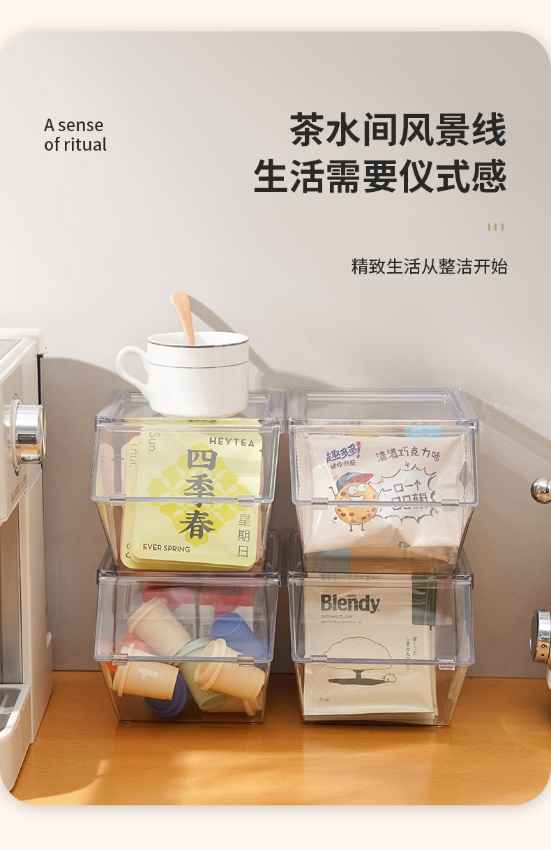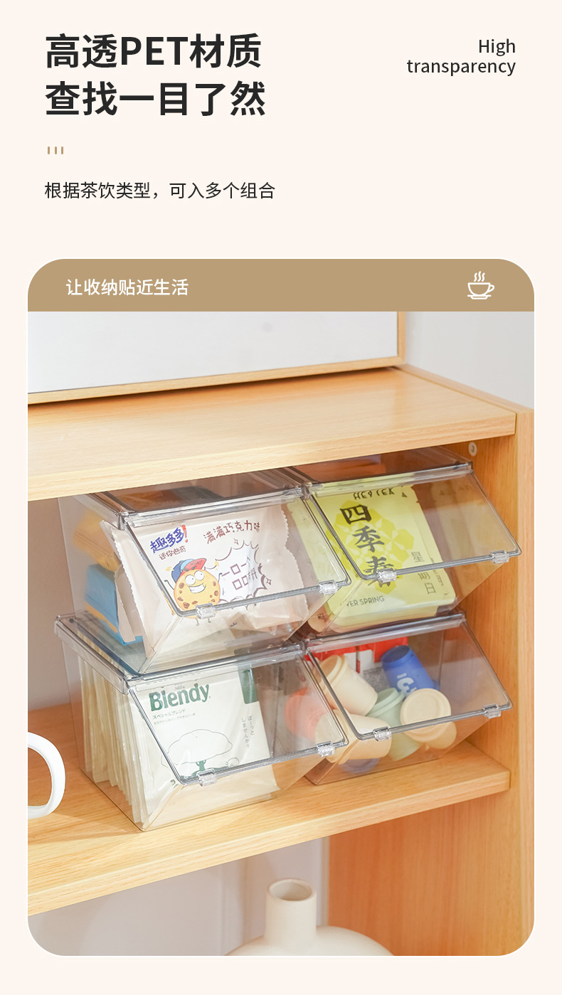 桌面化妆品带盖收纳盒茶包翻盖防尘收纳盒胶囊咖啡办公室茶水间