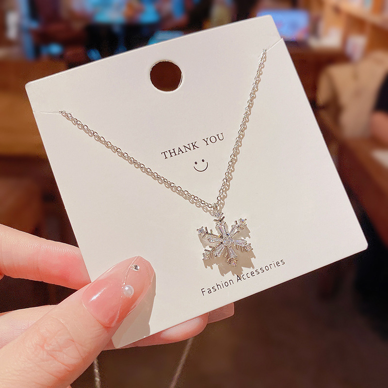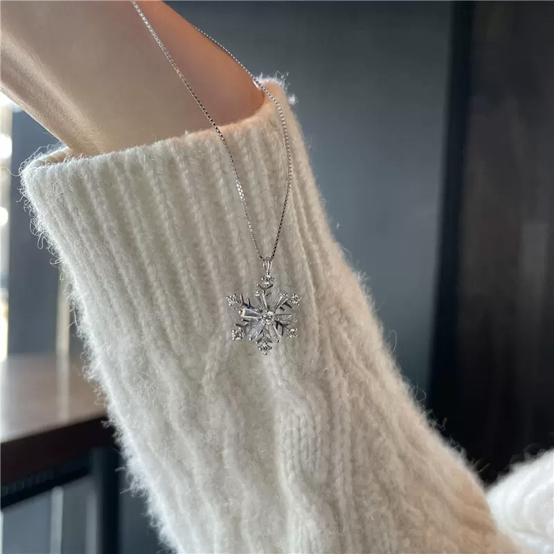 韩版潮网红同款可旋转锆石雪花钛钢项链小众高级设计感轻奢锁骨链