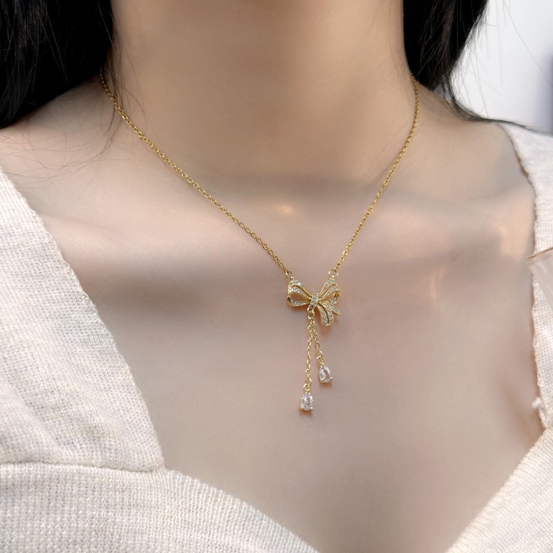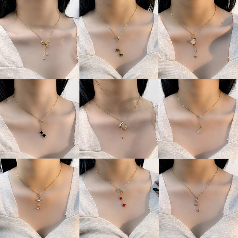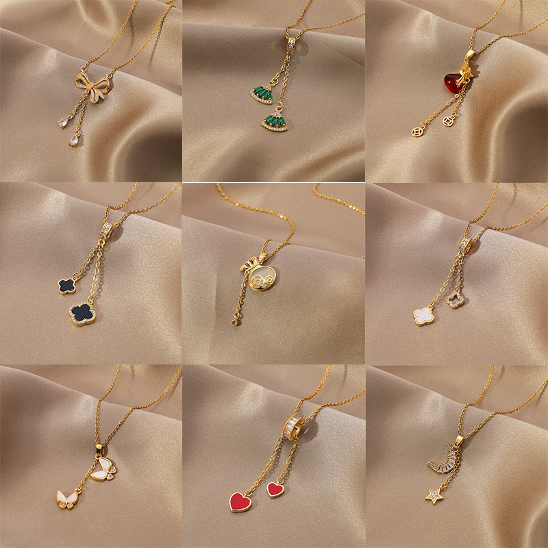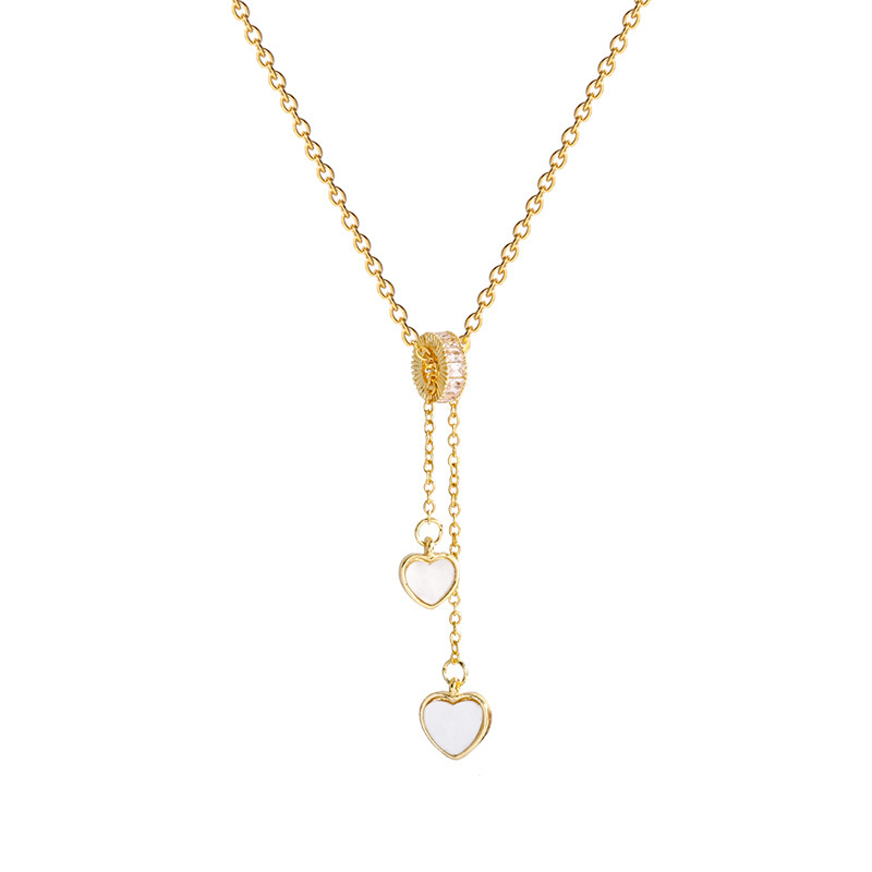 韩版设计感流苏双爱心钛钢项链女百搭轻奢小众桃心吊坠锁骨链配饰