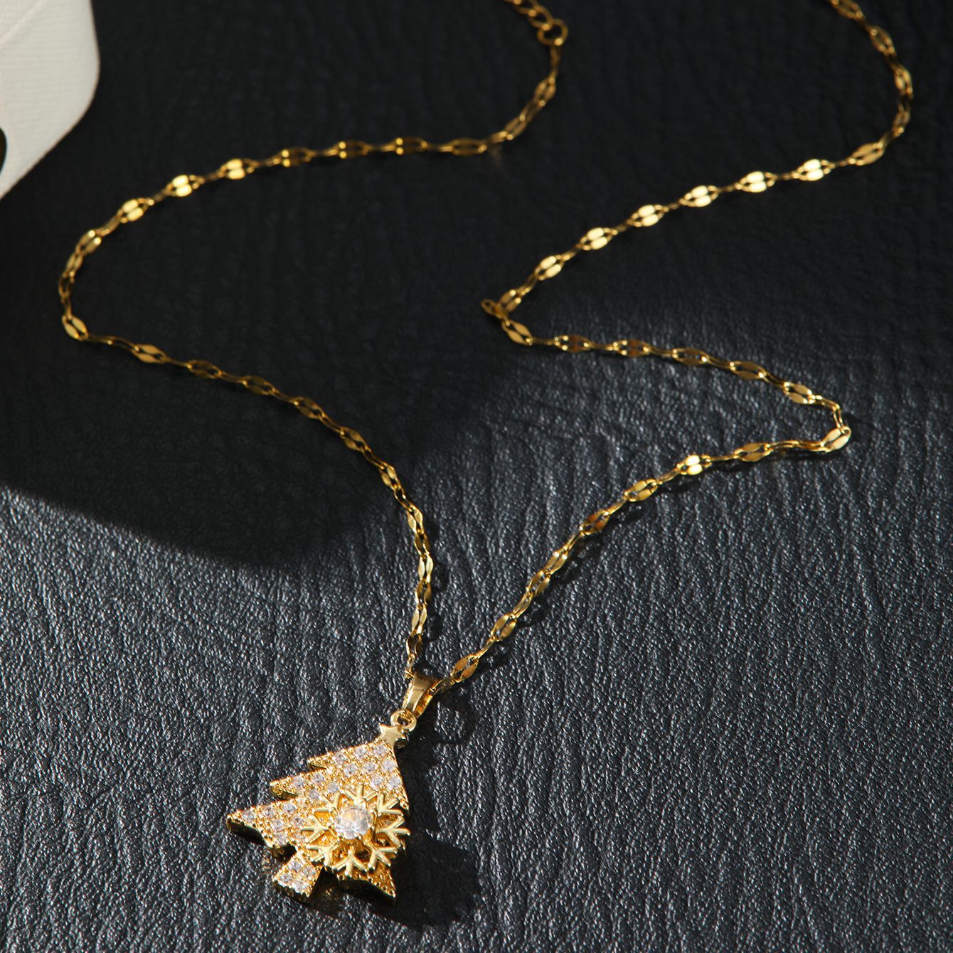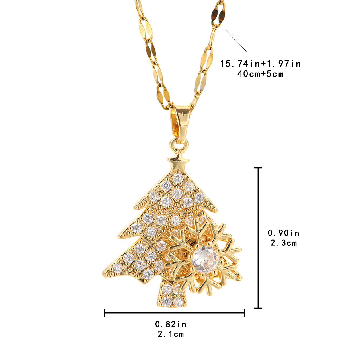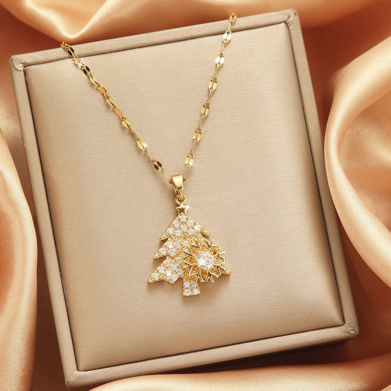 欧美风可旋转雪花圣诞树钛钢项链女微镶满钻时尚圣诞节热卖锁骨链