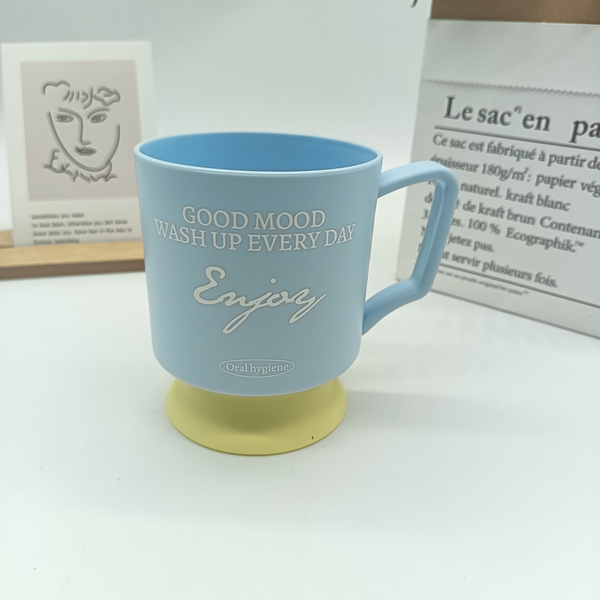 亚马逊热销可爱漱口杯韩式高脚杯双层多巴胺拼色学生儿童口杯批发