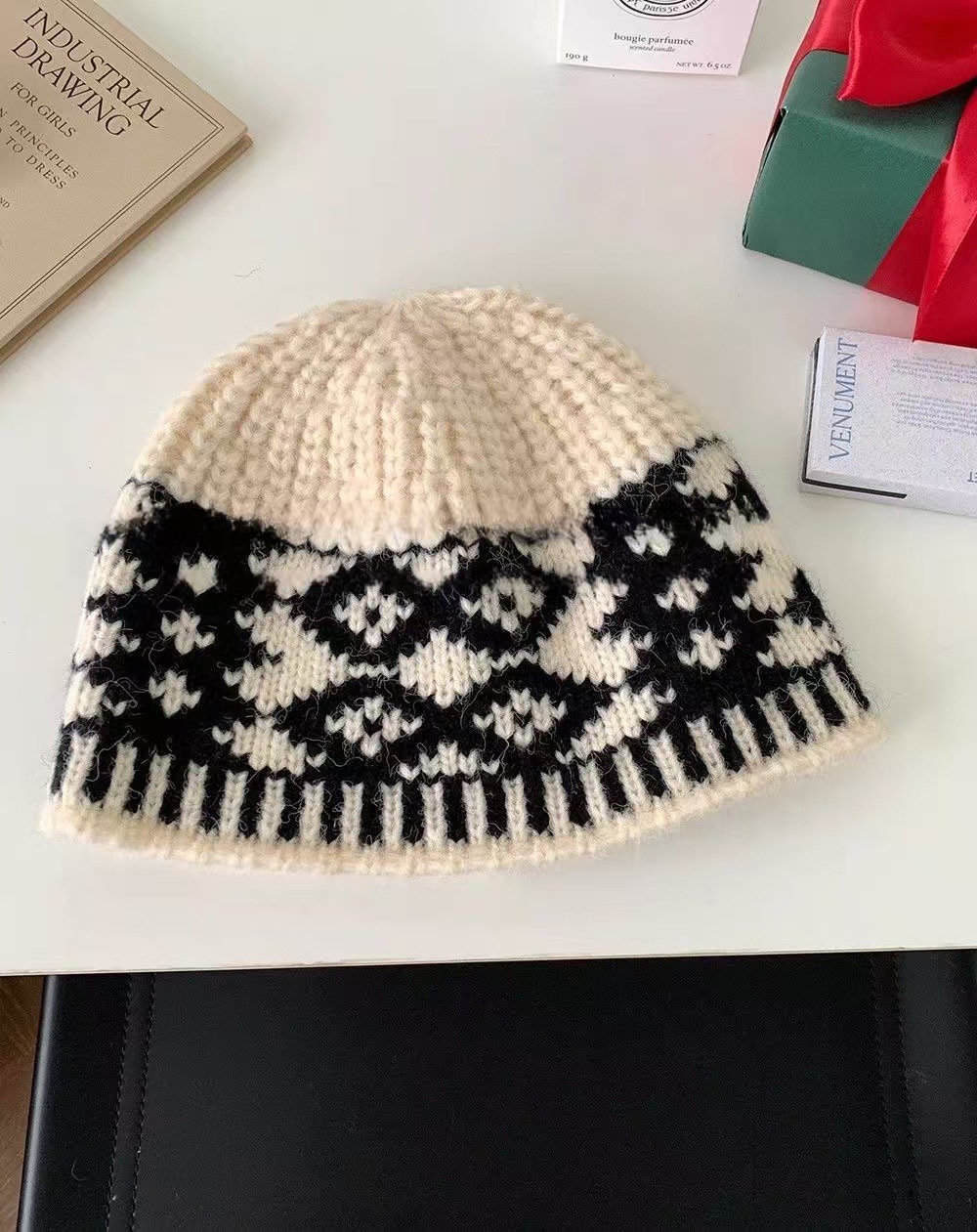 跨境批发针织帽子女秋冬羊毛混纺复古毛线帽保暖大头围冷帽包头帽