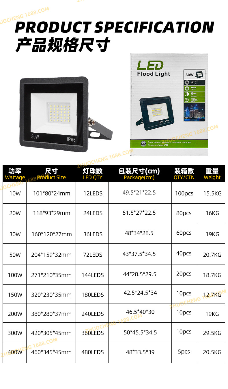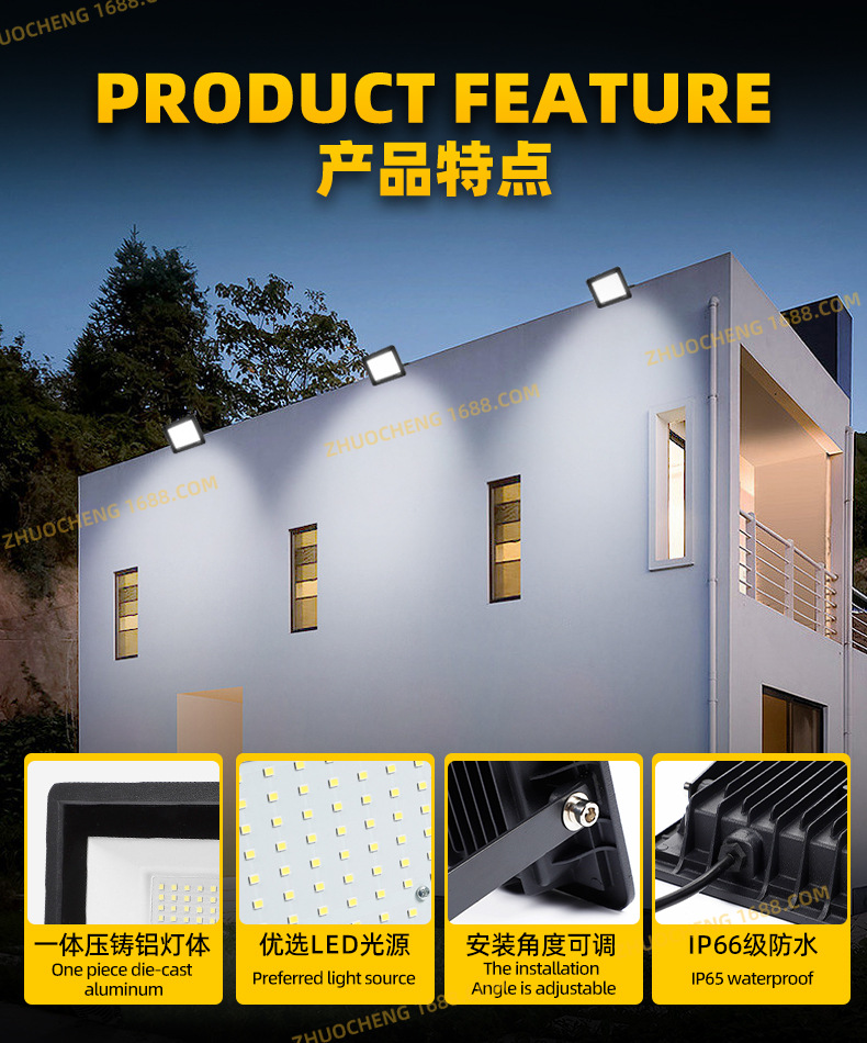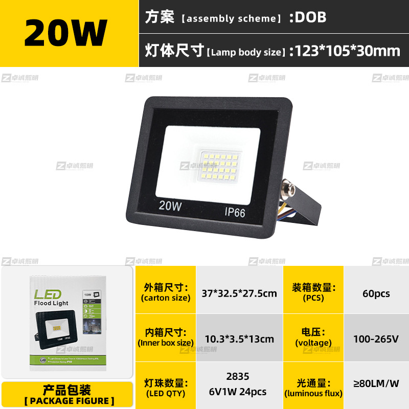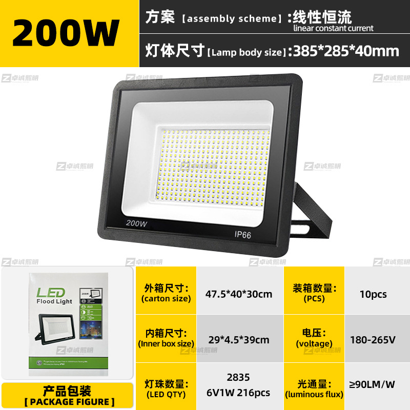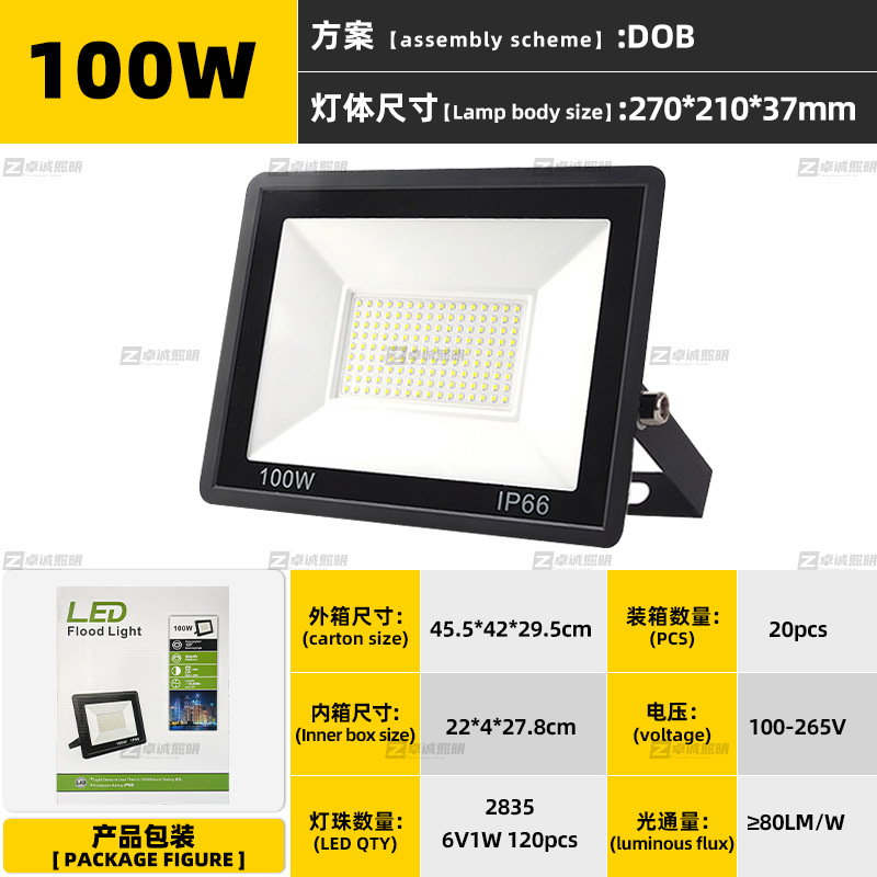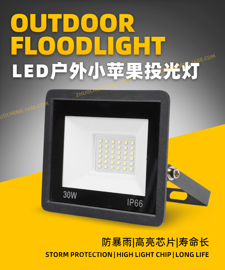 led投光灯 超薄线性防水泛光灯100W小苹果户外庭院灯广告牌投光灯