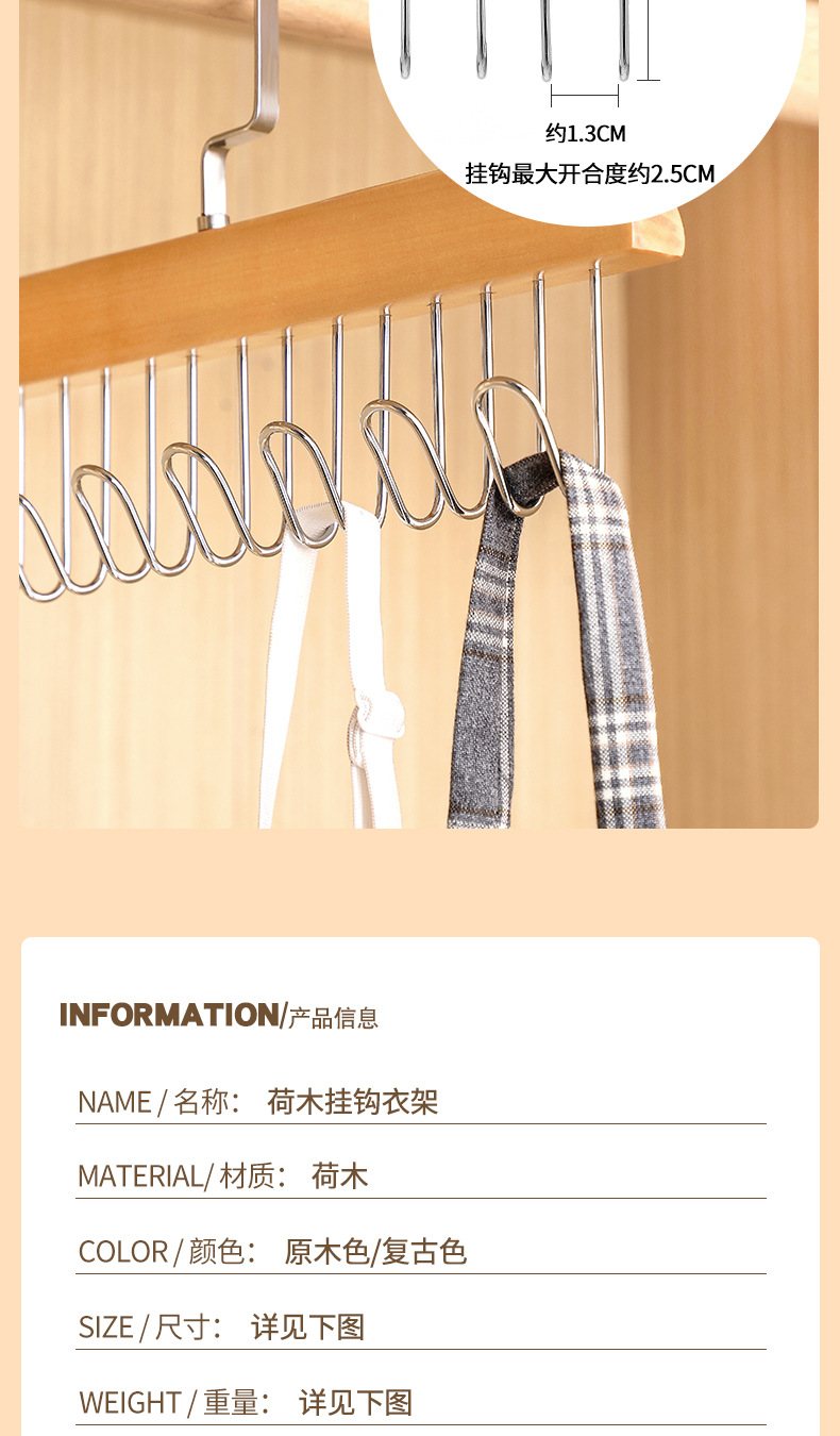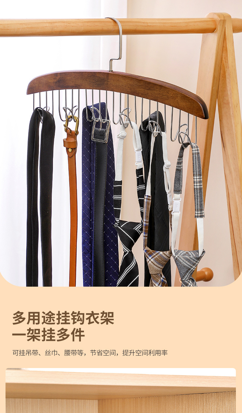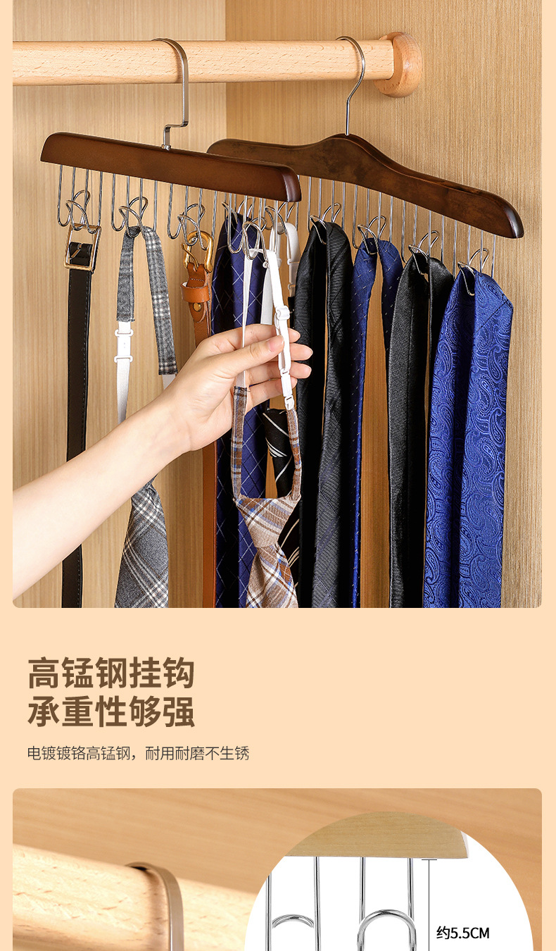 吊带衣架木质挂钩衣架挂内衣皮带丝巾包包多钩波浪衣架收纳神器