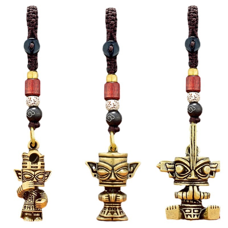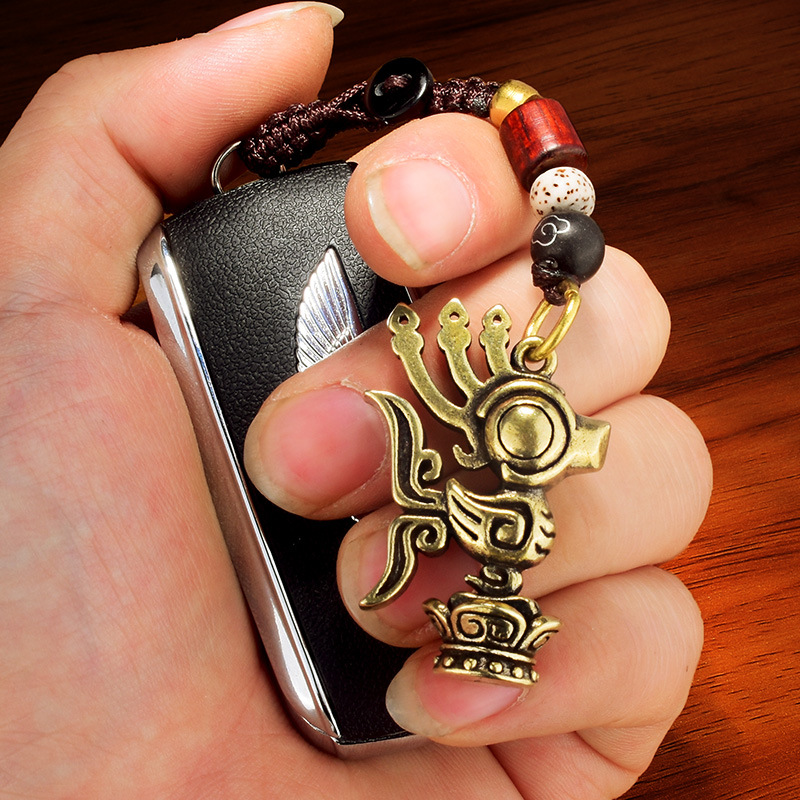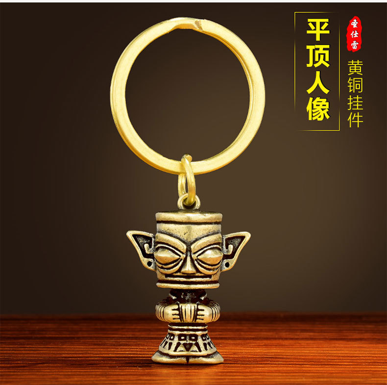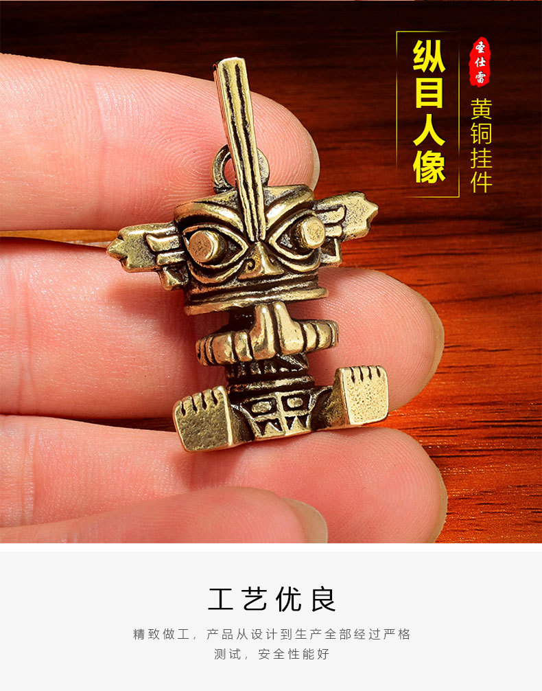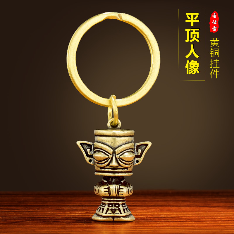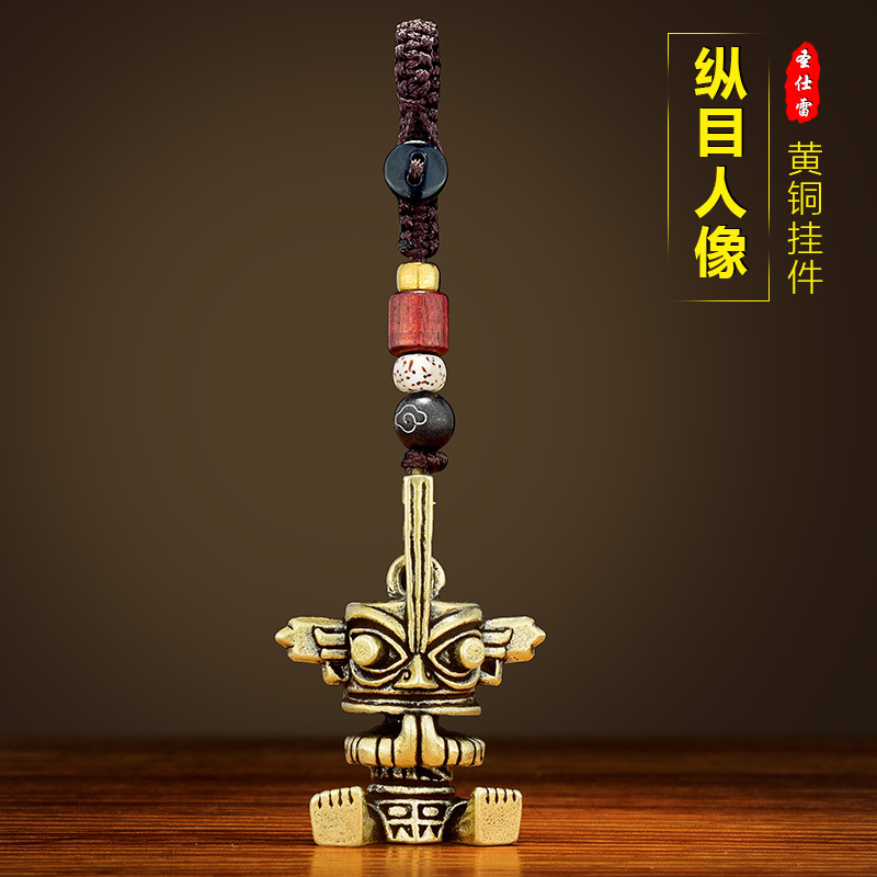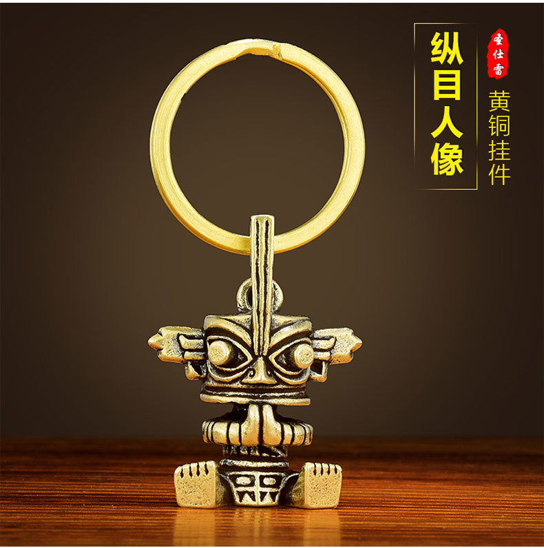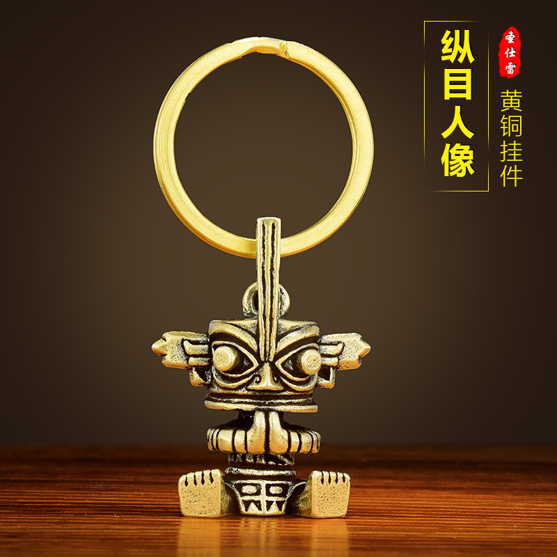 三星堆钥匙扣黄铜祈福神官纵目挂件纪念品吊坠创意汽车钥匙链