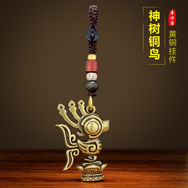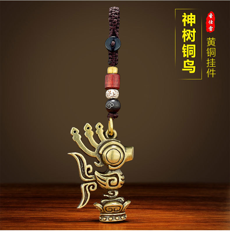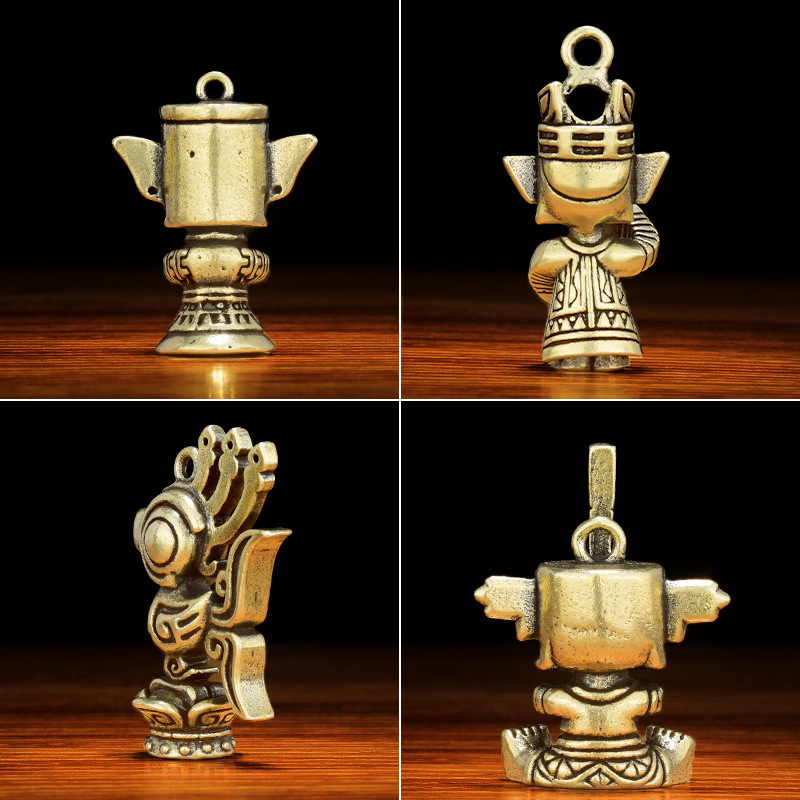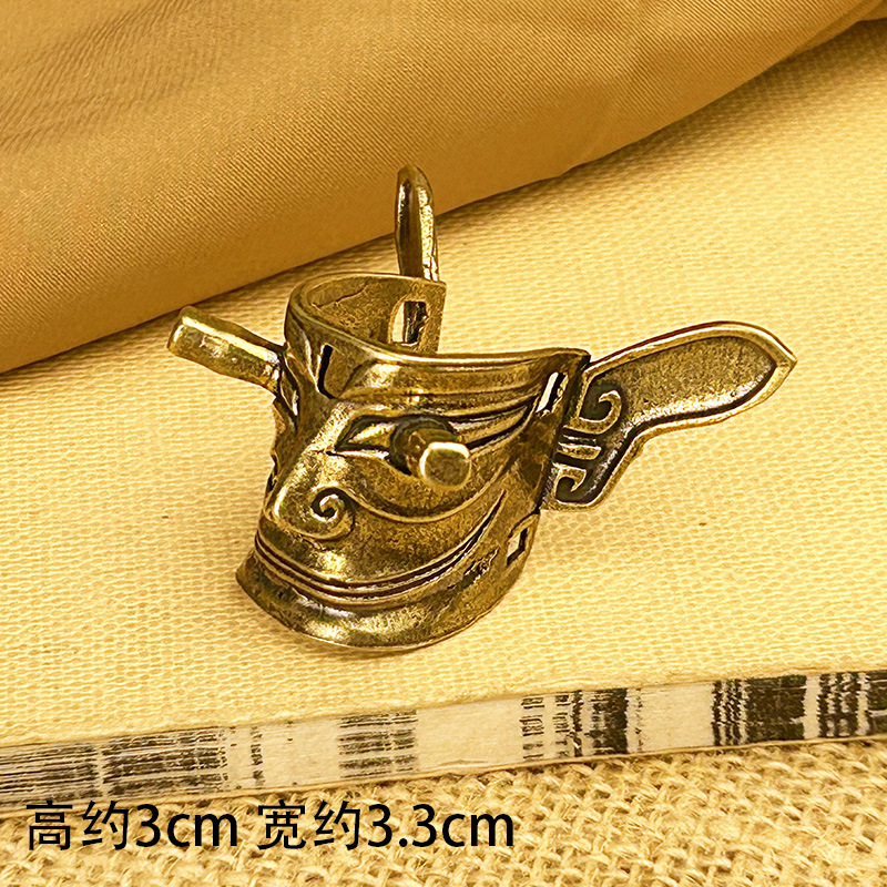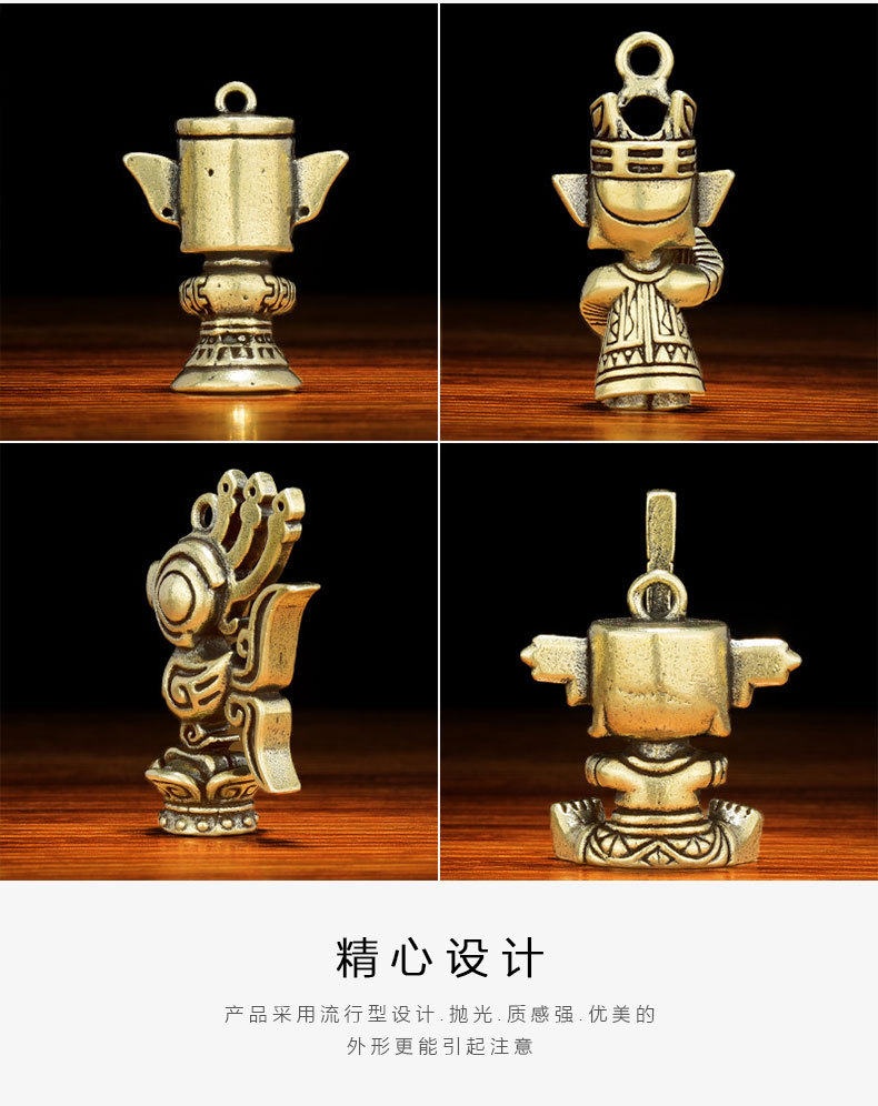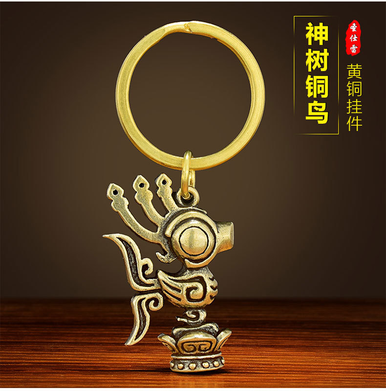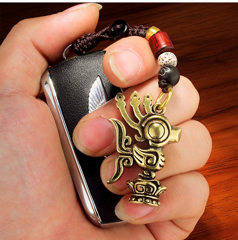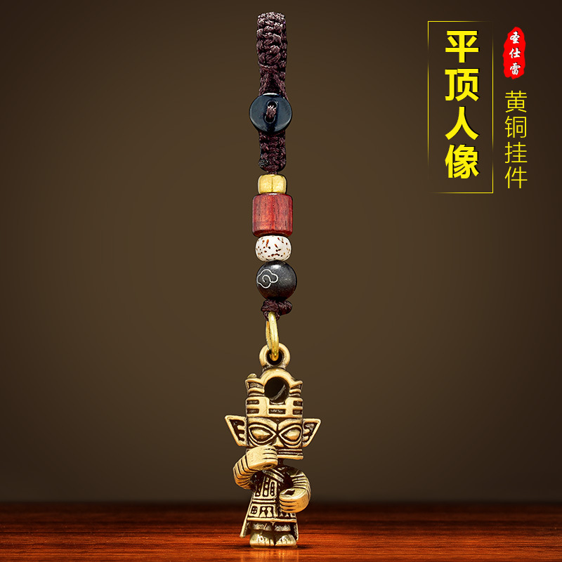 三星堆钥匙扣黄铜祈福神官纵目挂件纪念品吊坠创意汽车钥匙链