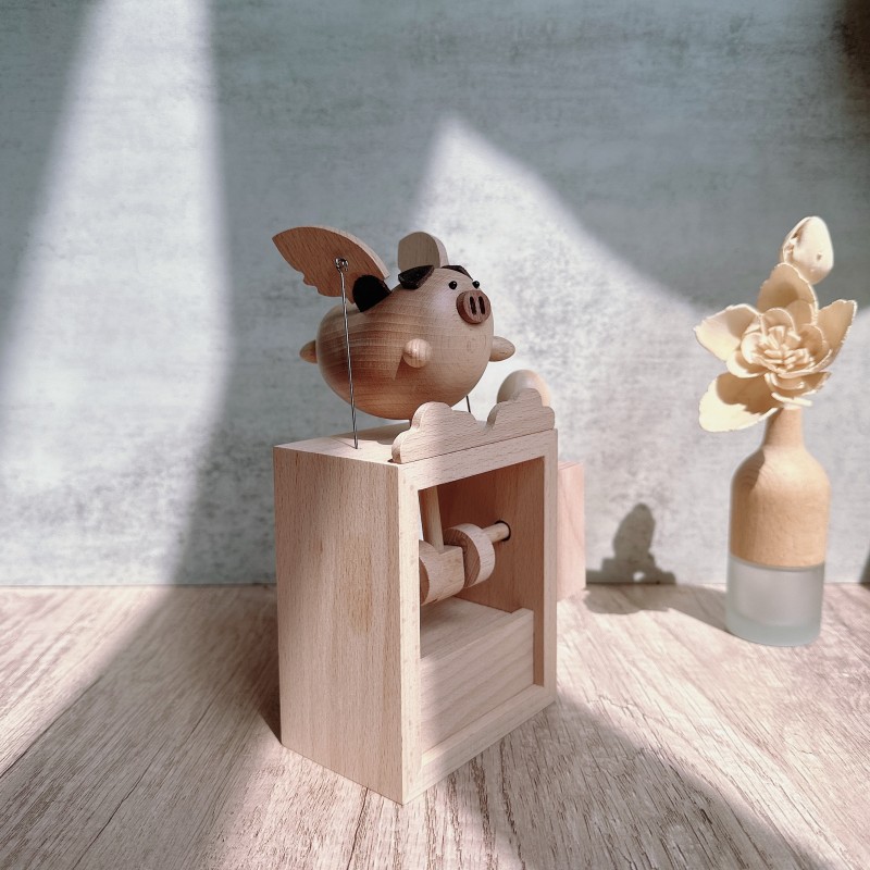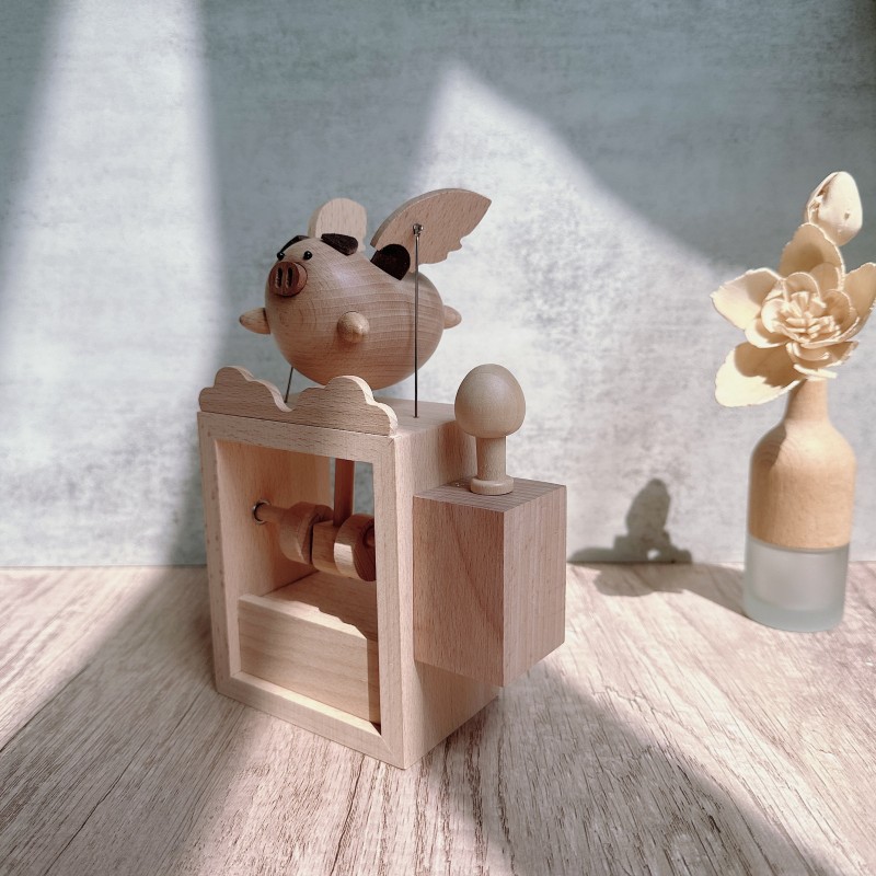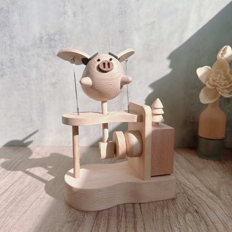 厂家直销木质电动小飞猪摆件创意家居礼物会飞的猪手工木制工艺品
