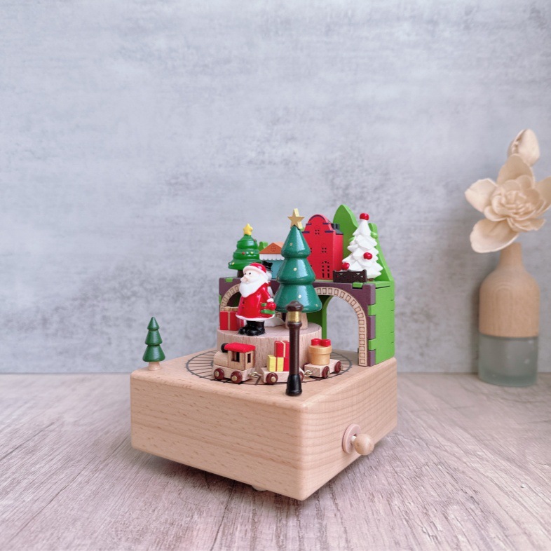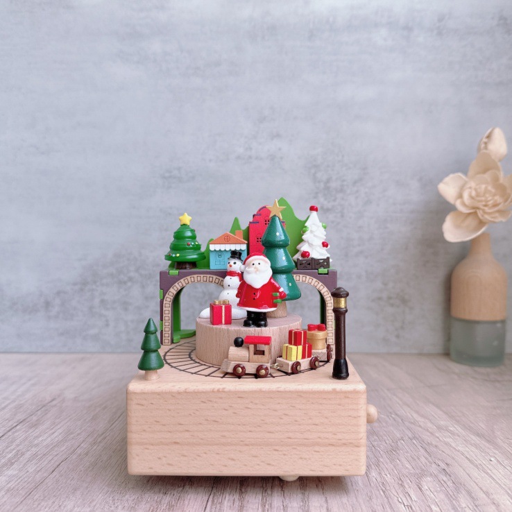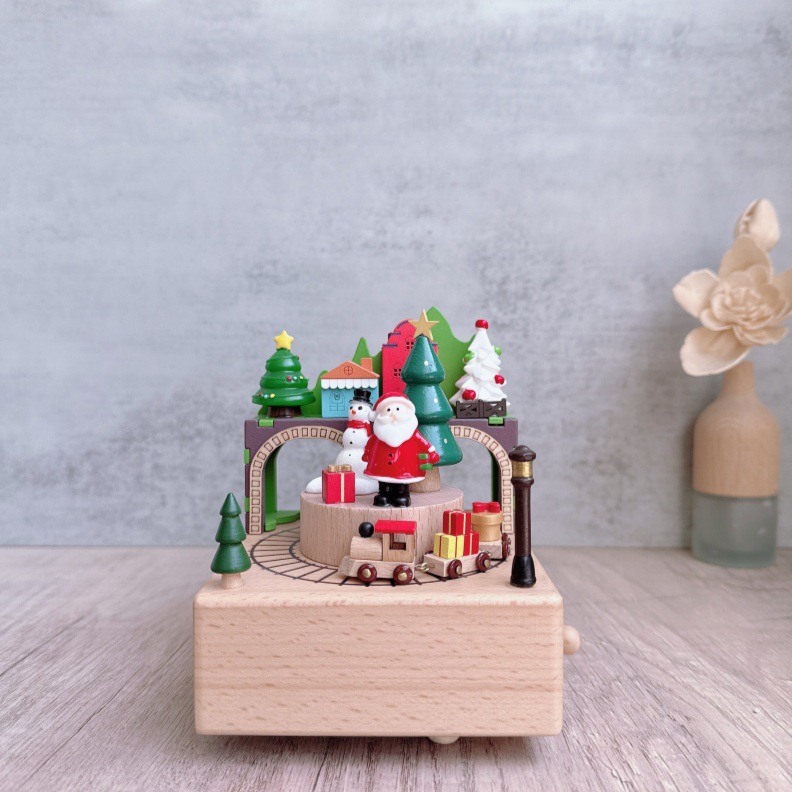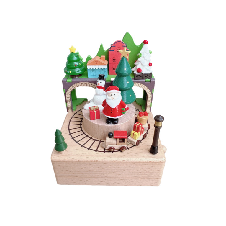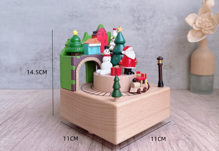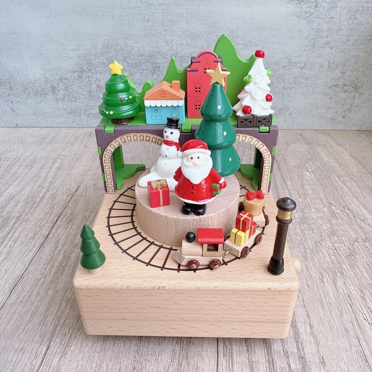 圣诞老人火车音乐盒木质旋转八音盒圣诞节礼物节日礼品圣诞音乐盒