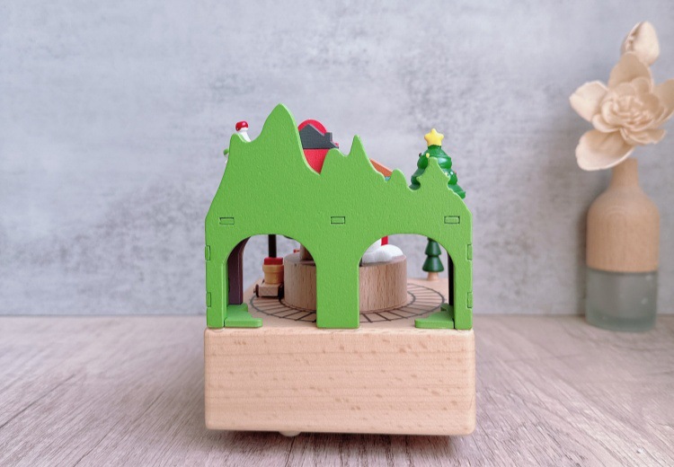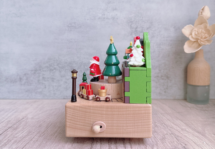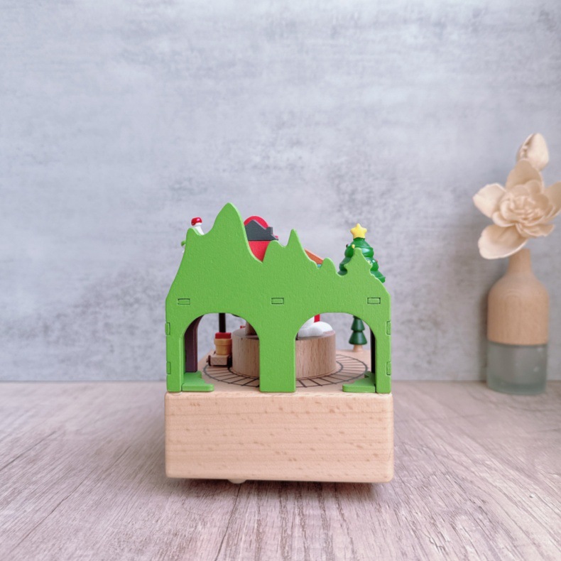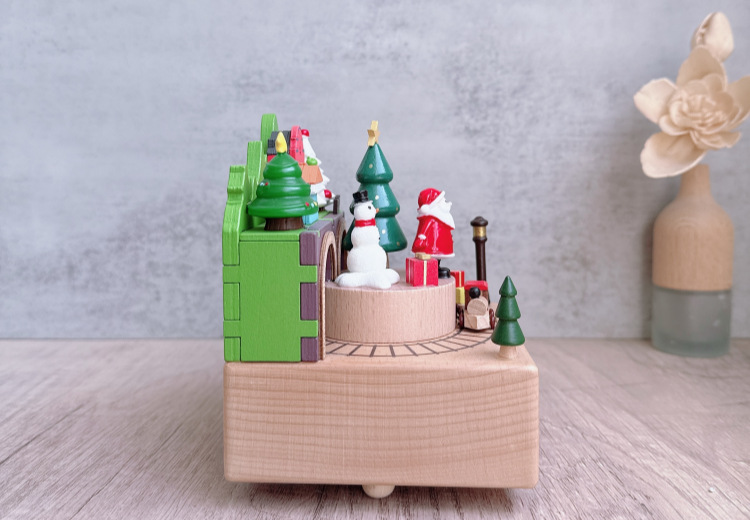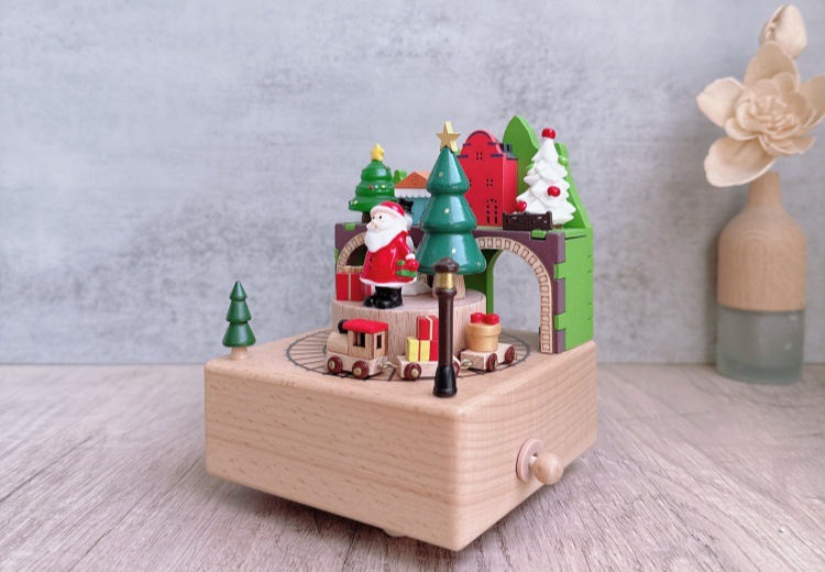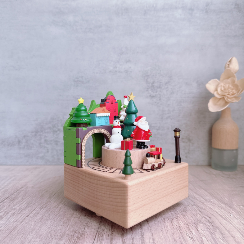 圣诞老人火车音乐盒木质旋转八音盒圣诞节礼物节日礼品圣诞音乐盒