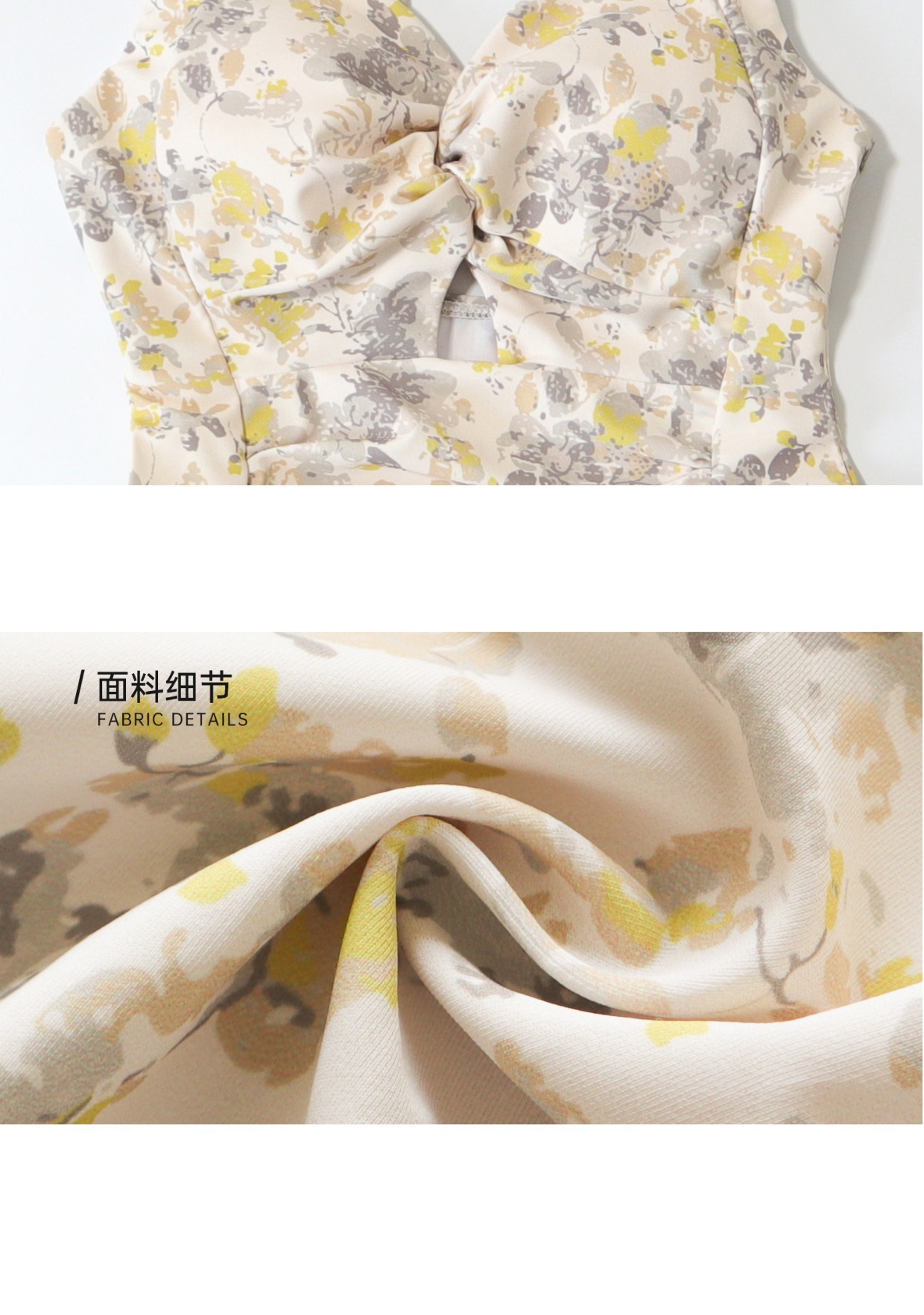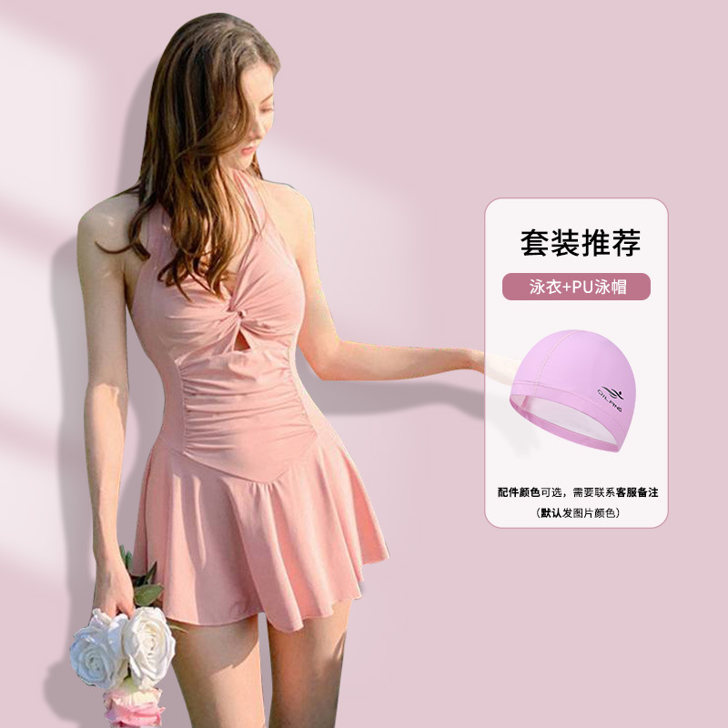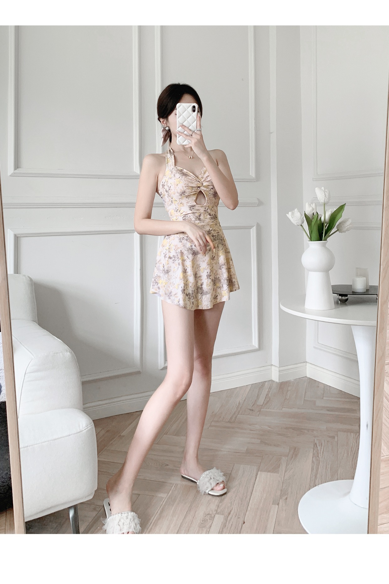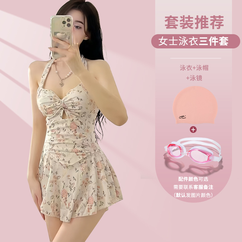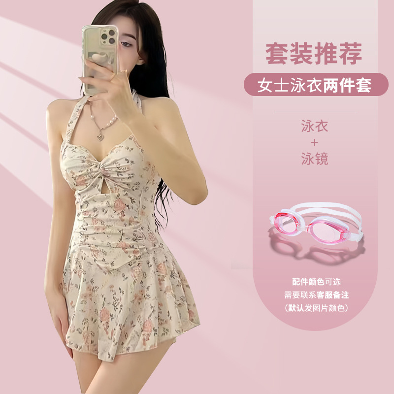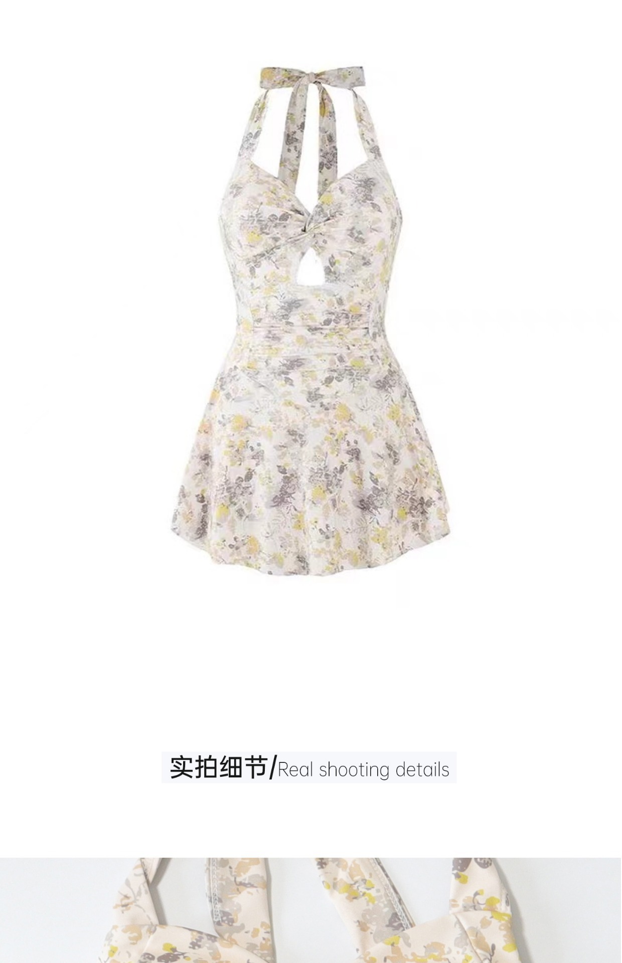 女士泳衣韩版碎花连体裙式爆款纯欲挂脖时尚高级温泉泳装显瘦批发