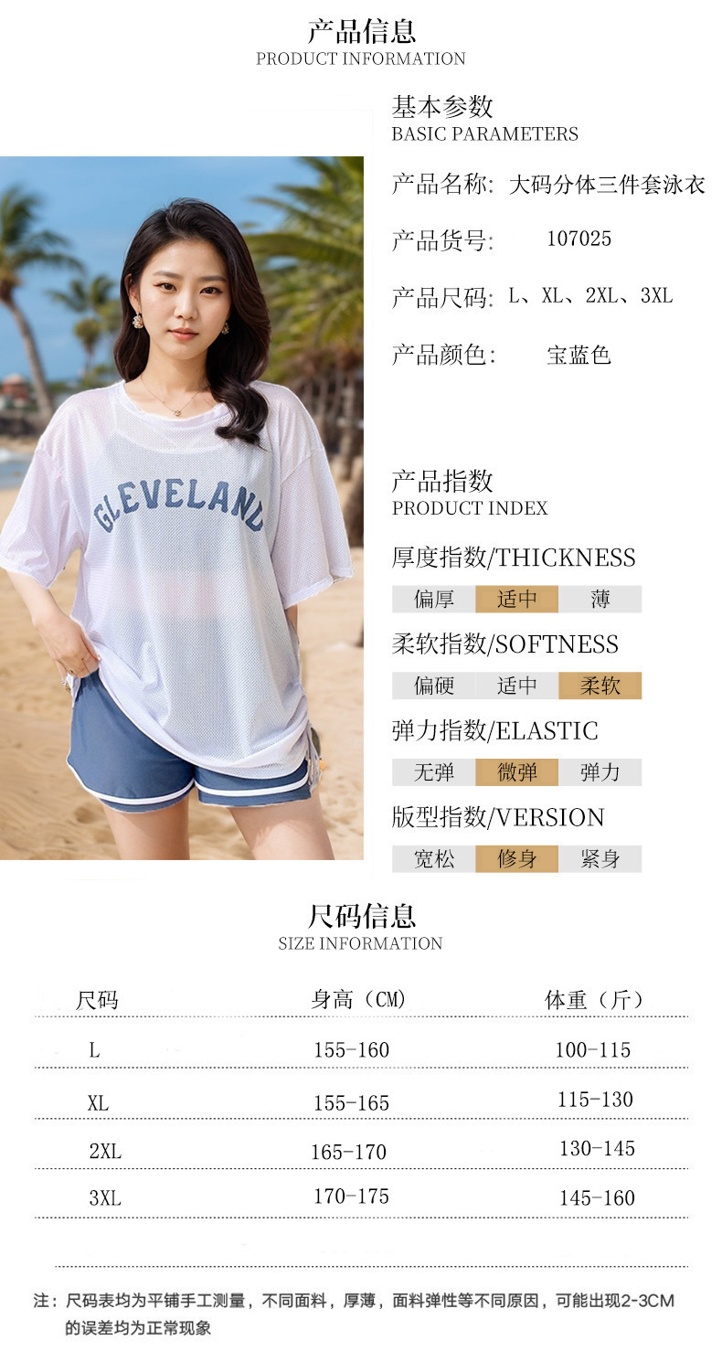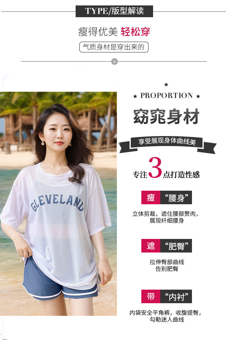 保守泳衣女大码宽松分体三件套胖MM显瘦遮肉罩衫防晒度假游泳装