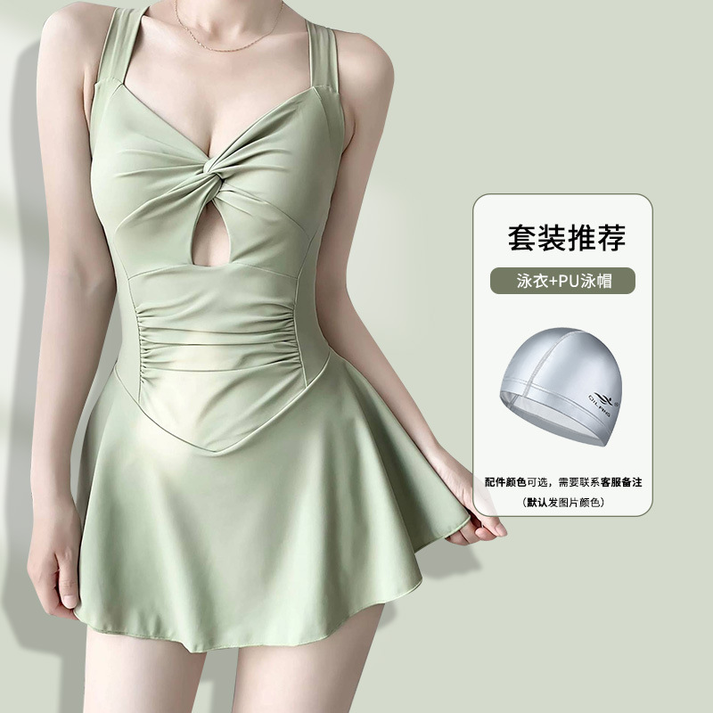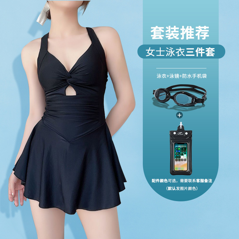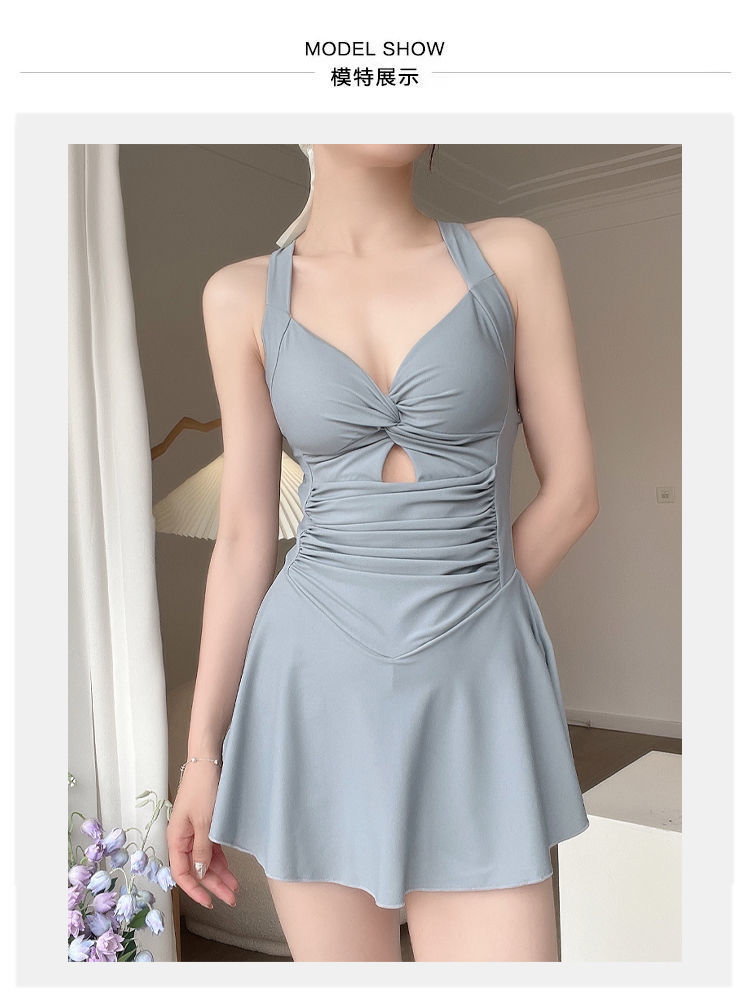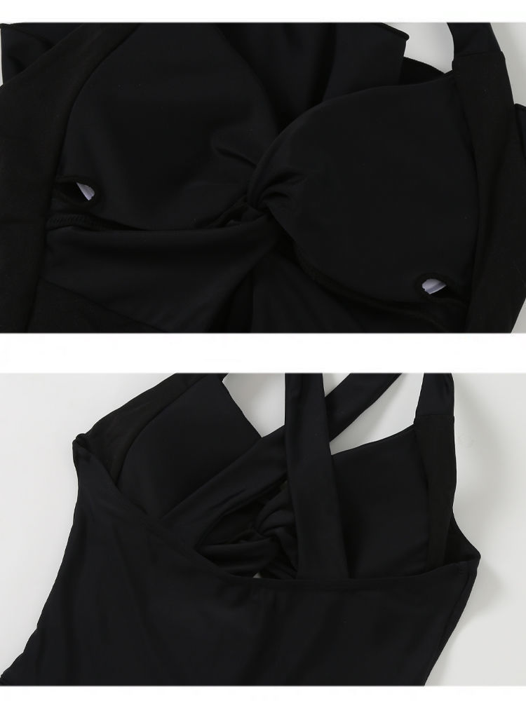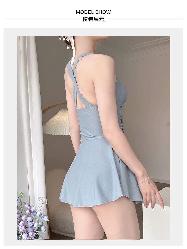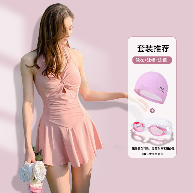 骐浪纯欲风泳衣女连体性感露背小胸挂脖游泳衣遮肚显瘦泡温泉泳装