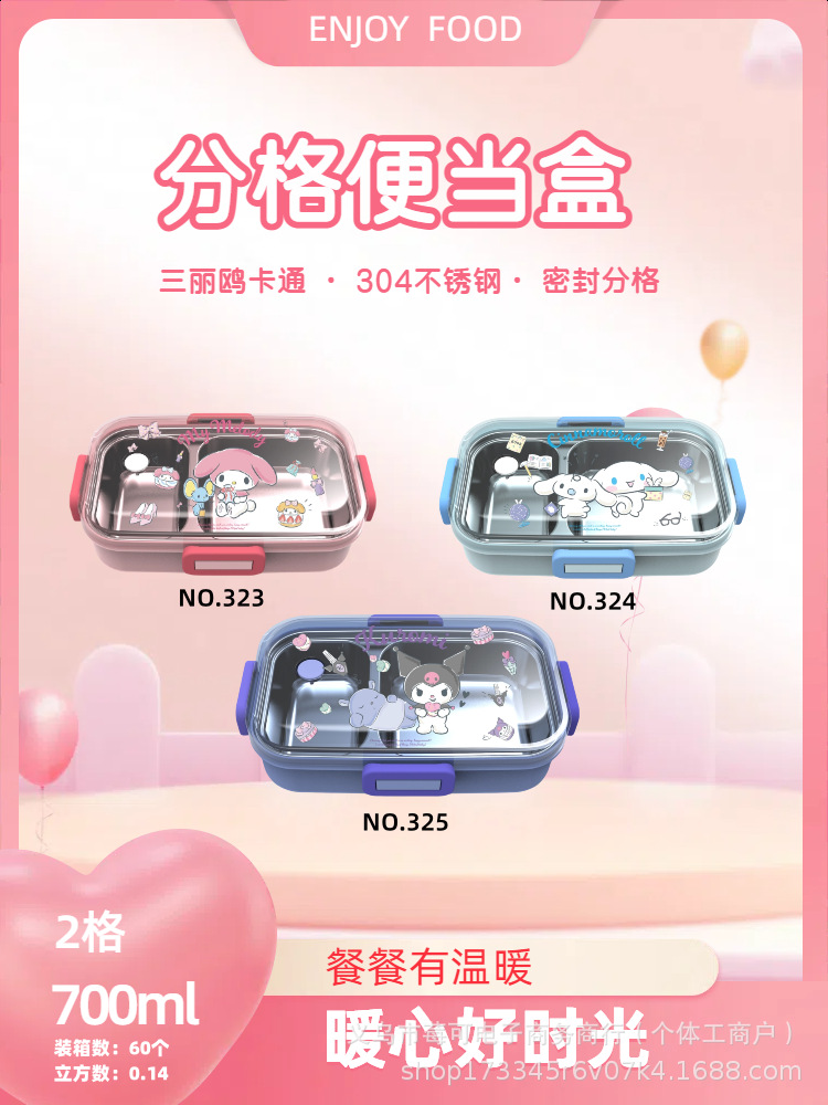 日系卡通PLUS会员价不锈钢饭盒有趣便当盒防烫便携分隔型餐盒