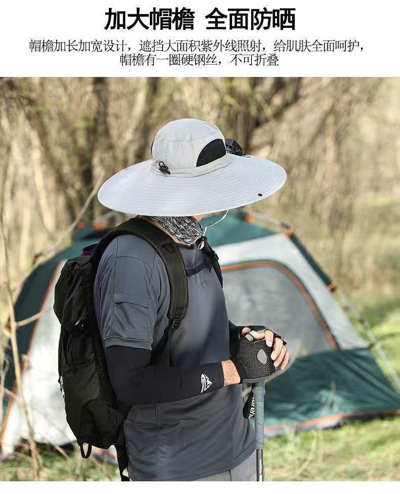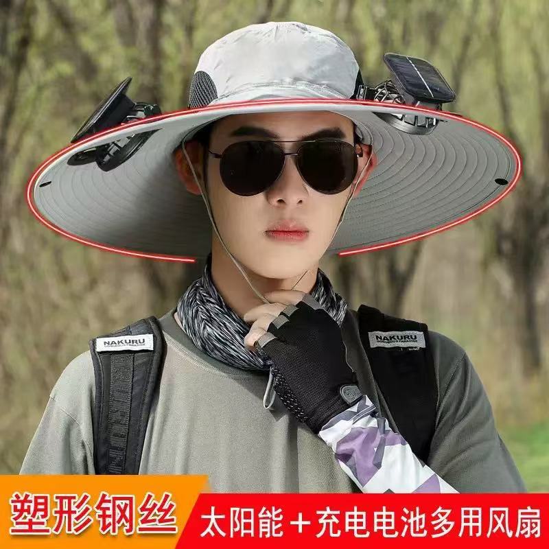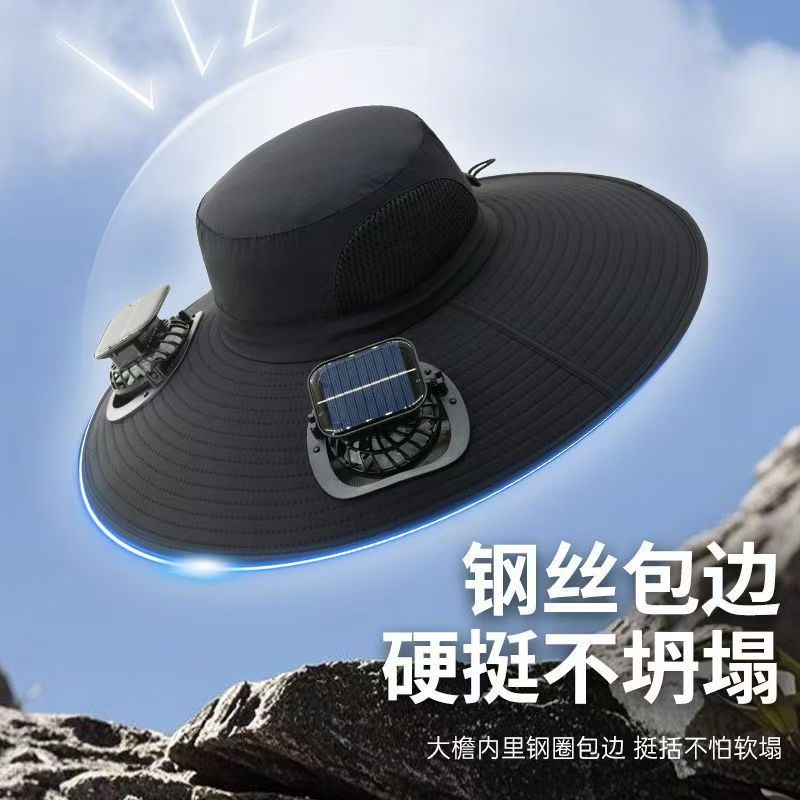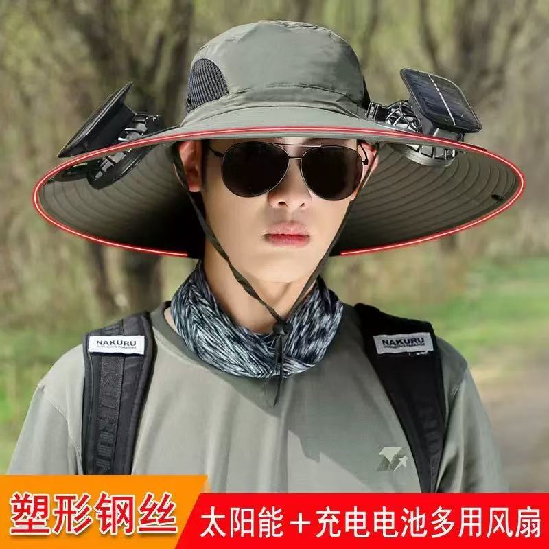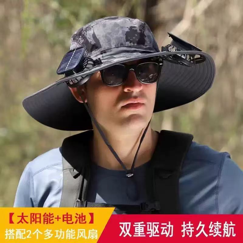 外贸爆品太阳能帽可充电双风扇男士钓鱼渔夫帽户外遮阳帽防晒帽子