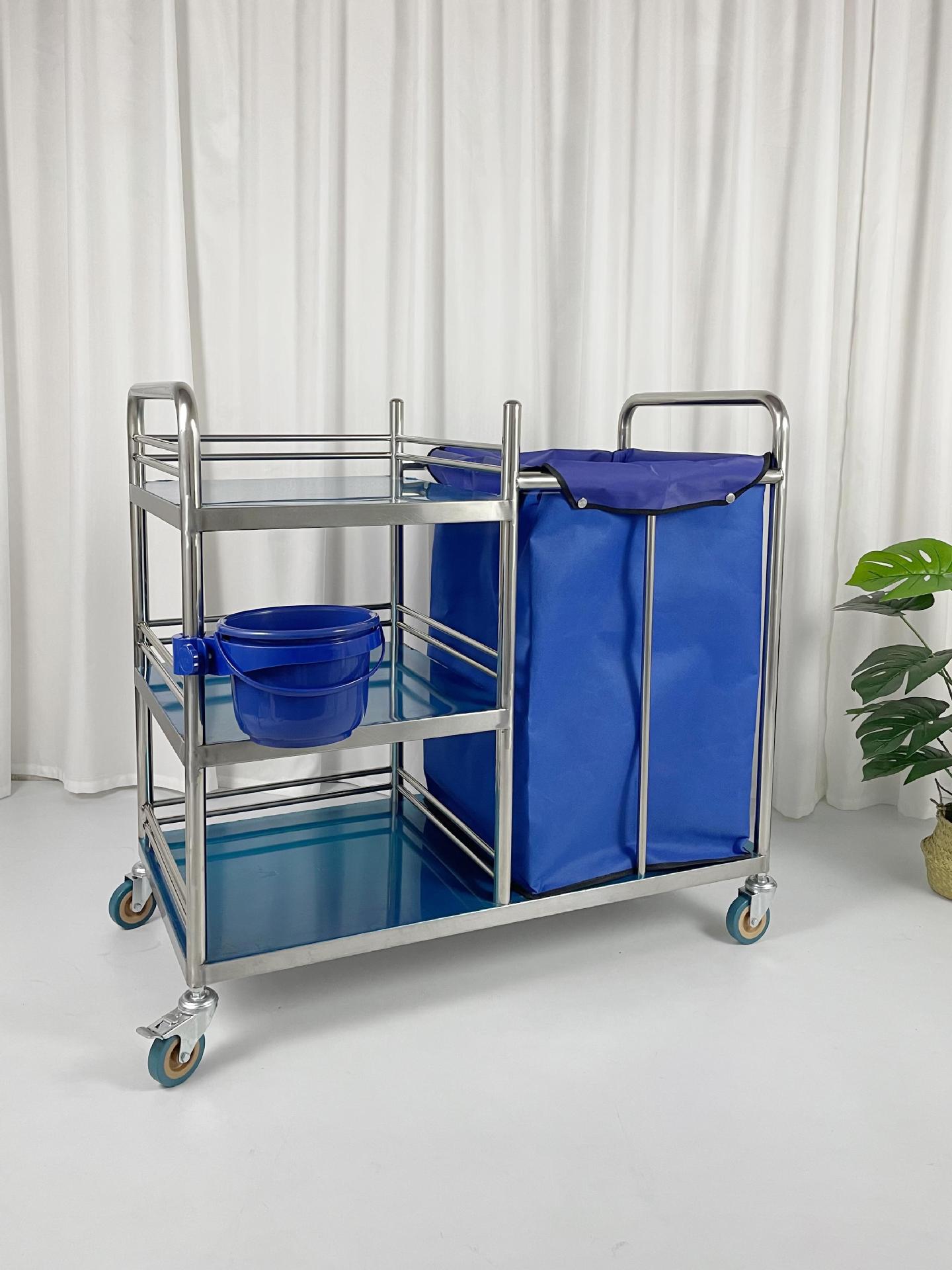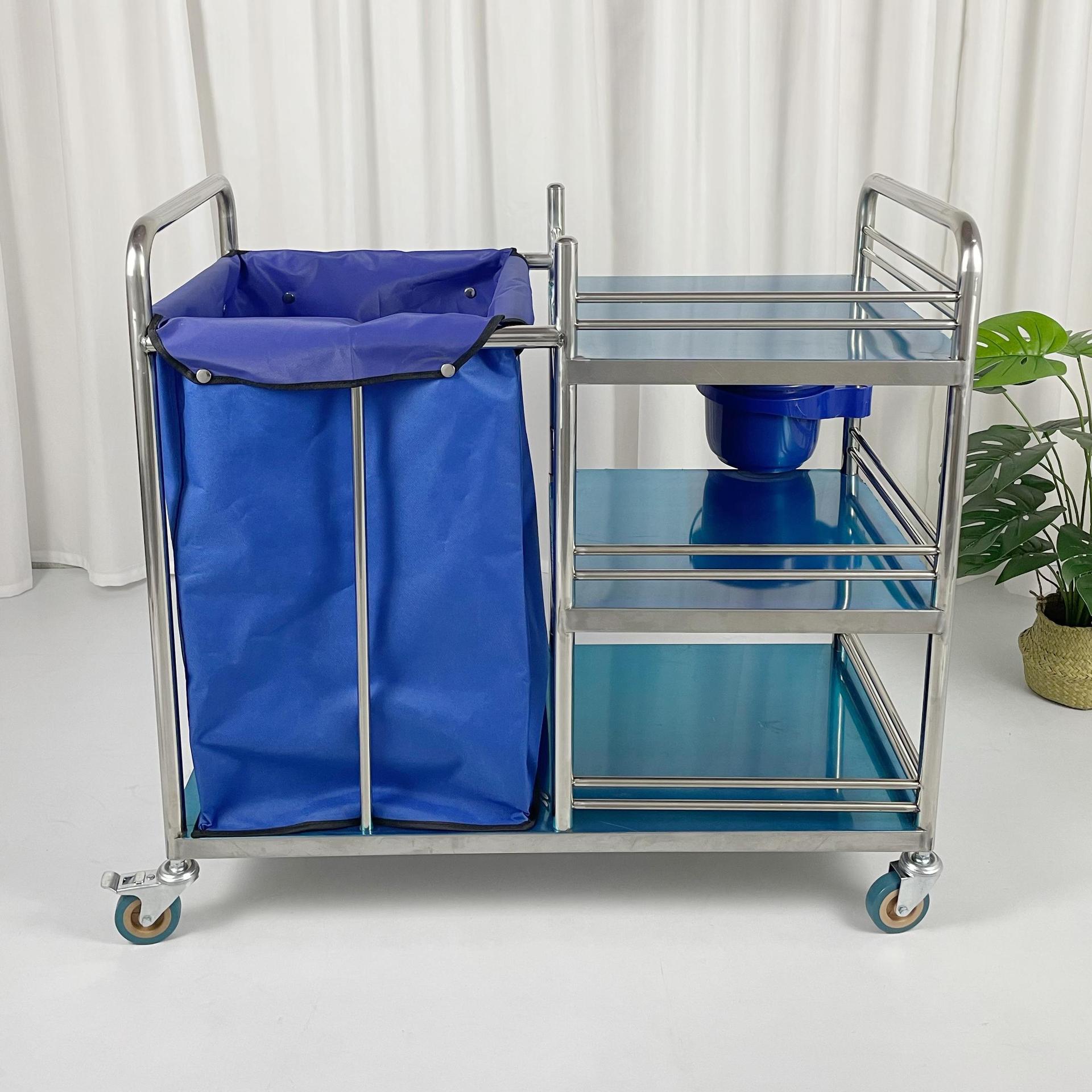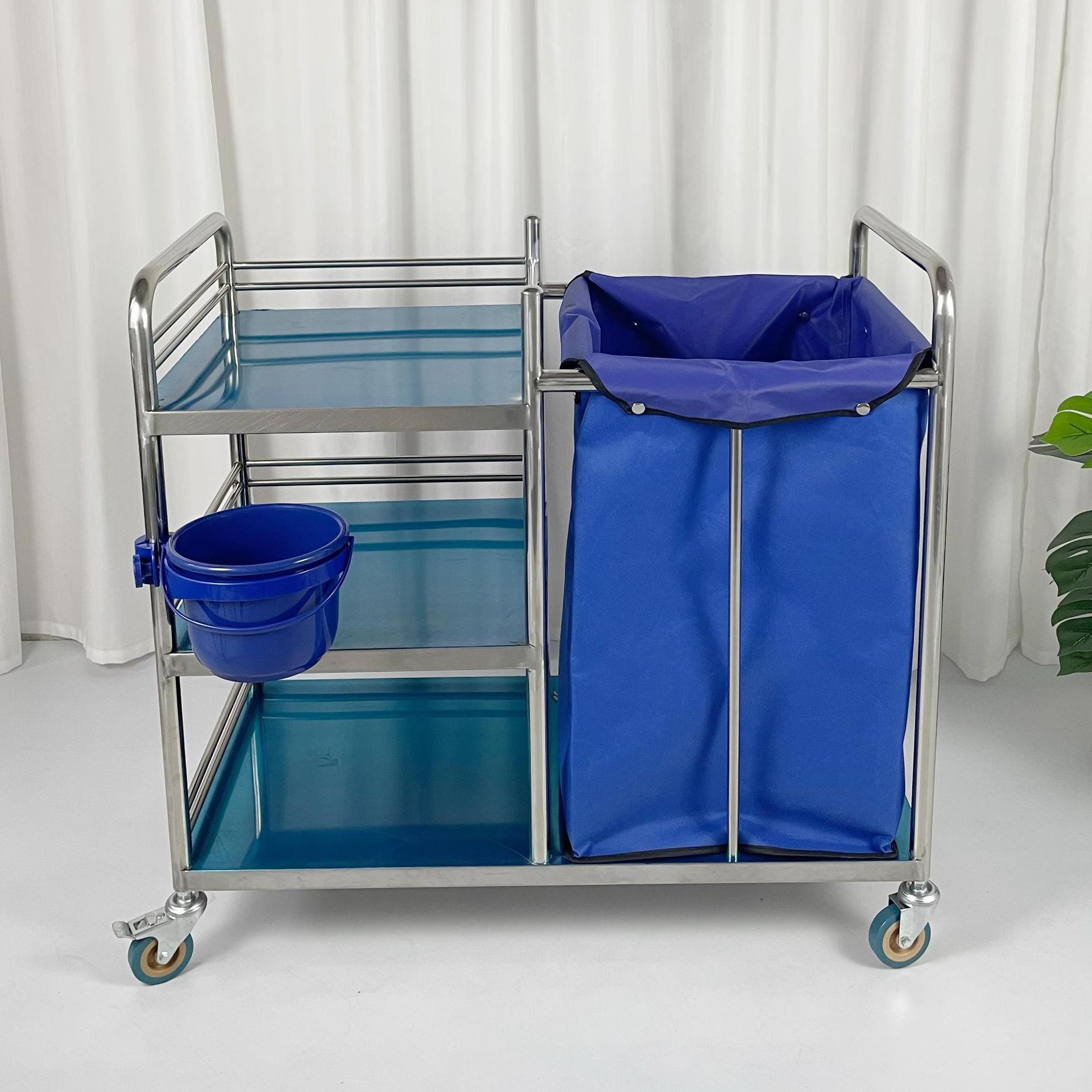 专供出口不锈钢污物车三层护理车运输病房污衣车酒店清理车