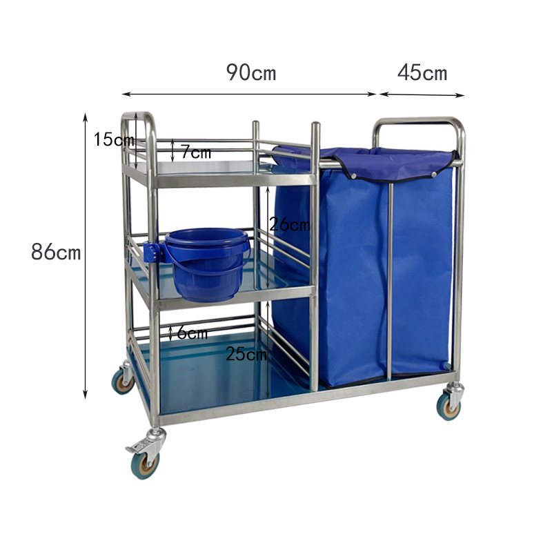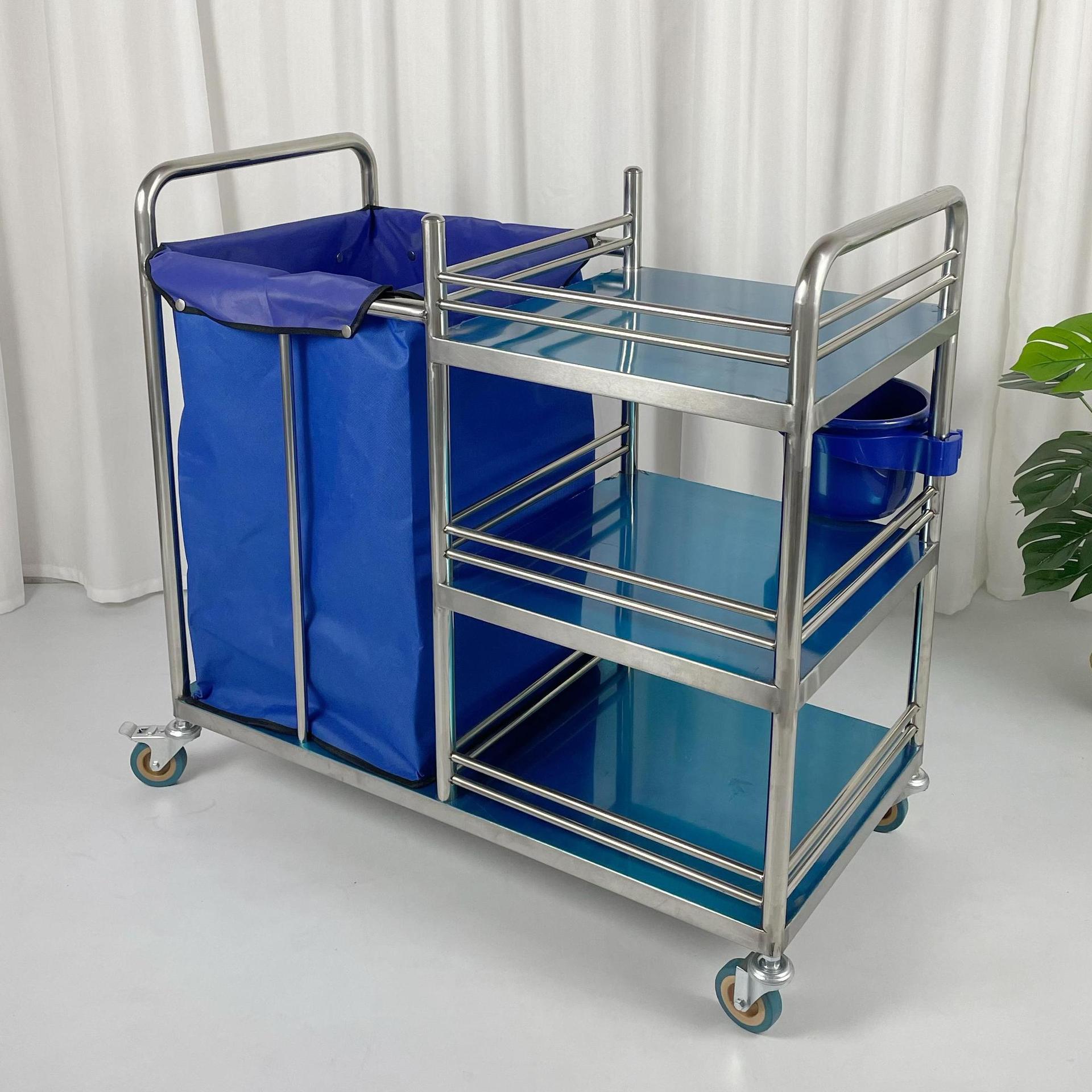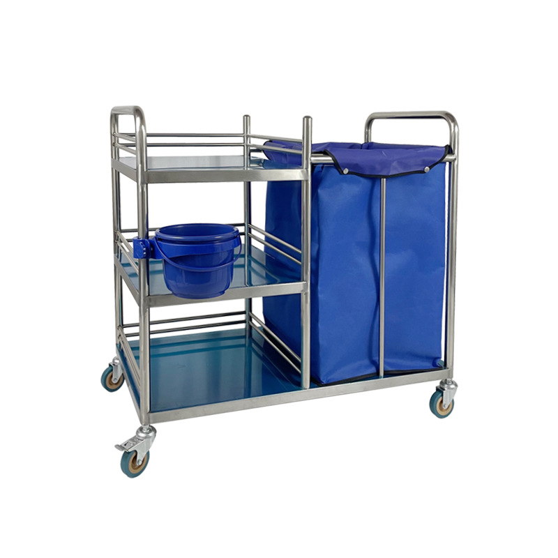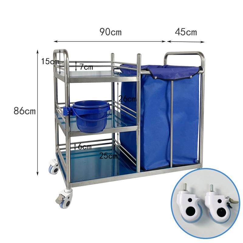 专供出口不锈钢污物车三层护理车运输病房污衣车酒店清理车