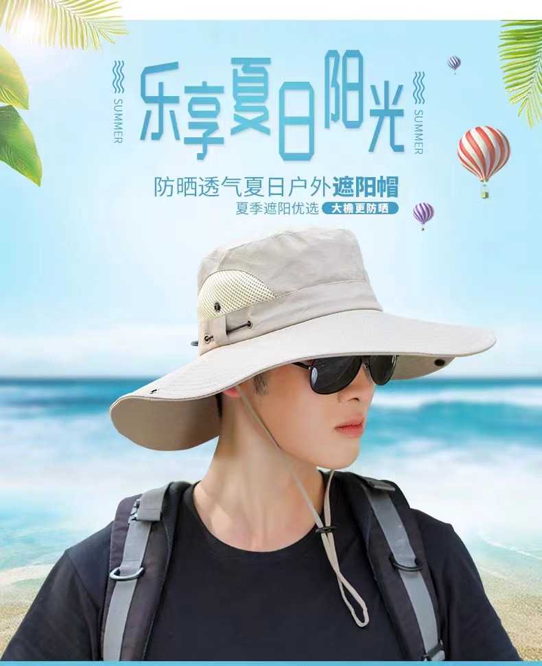 新款遮阳帽男夏季户外防晒面罩钓鱼太阳帽大檐透气草帽凉帽渔夫帽