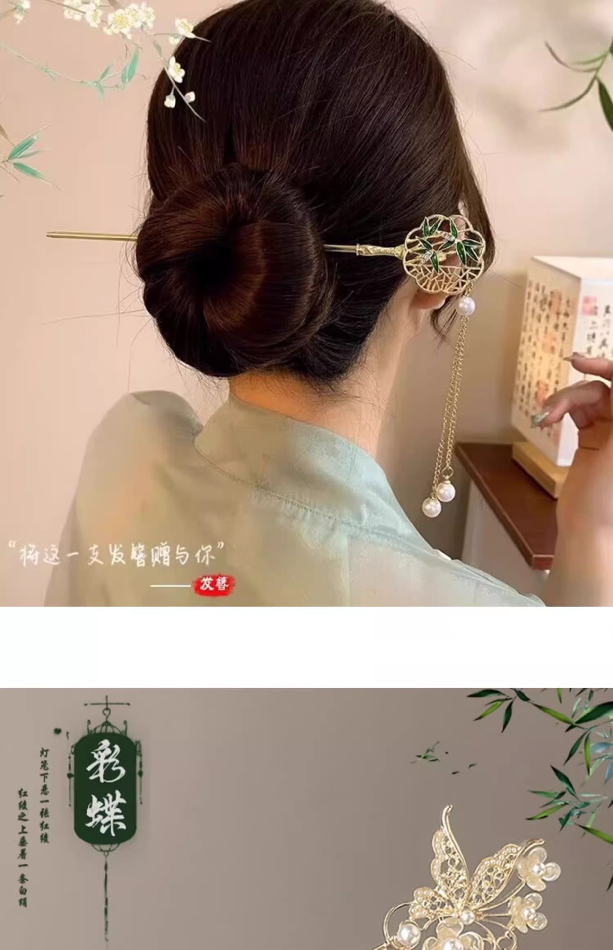 古风高级感黑色檀木发簪女神流苏新中式簪子盘发神器发钗新款发饰
