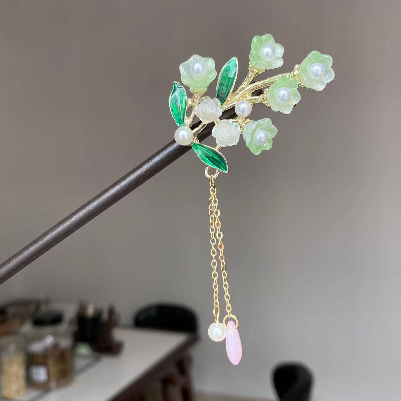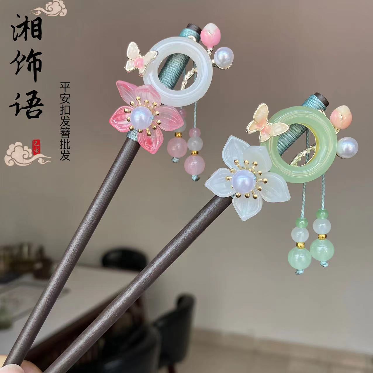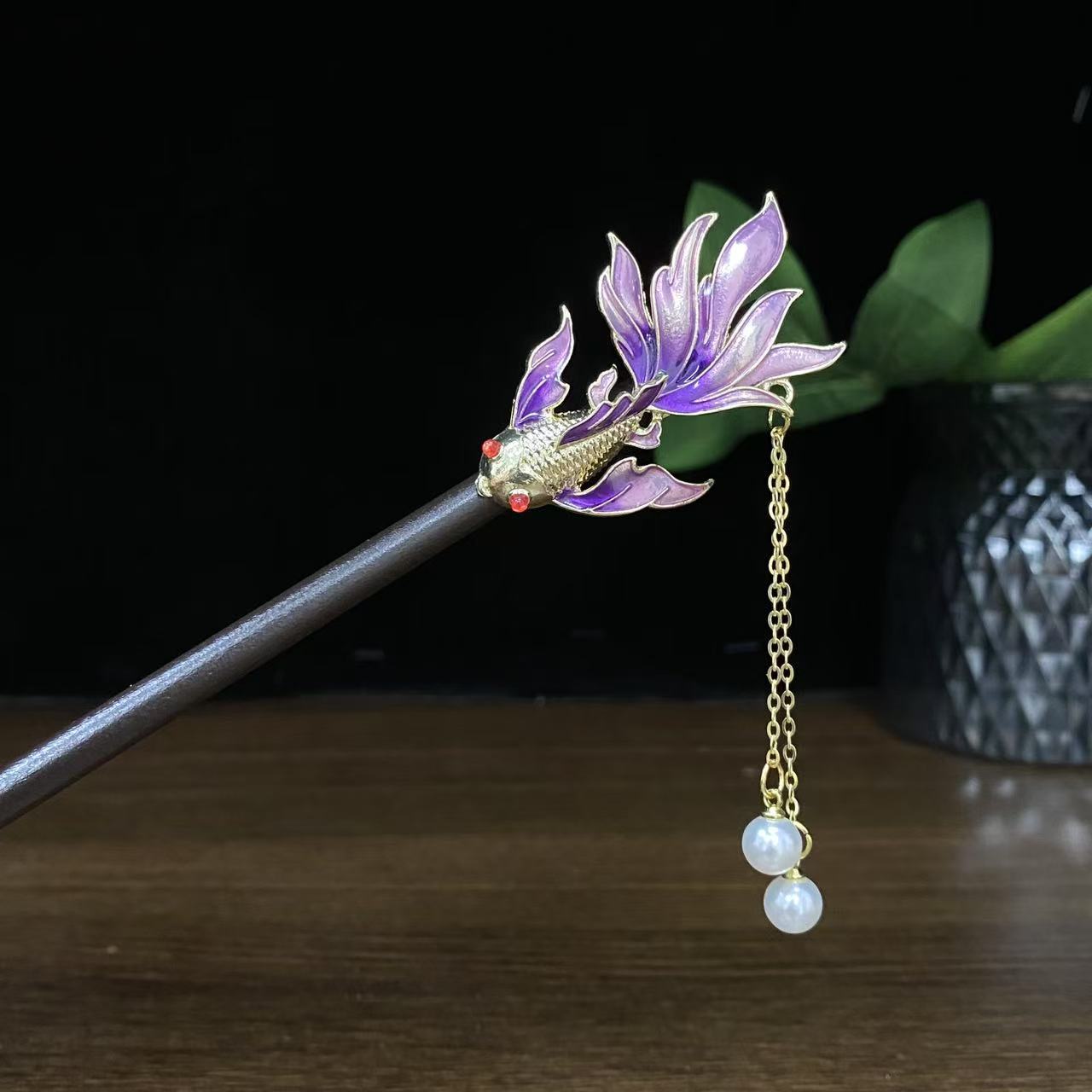 古风流苏木簪高级感黑檀木发簪新中式旗袍简约气质盘发簪子发饰