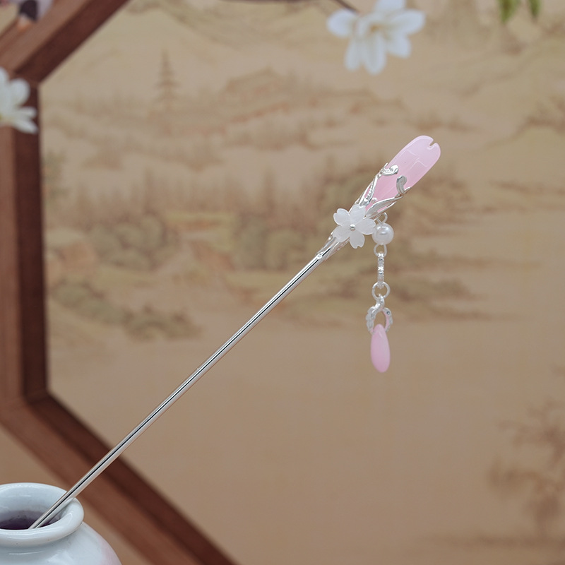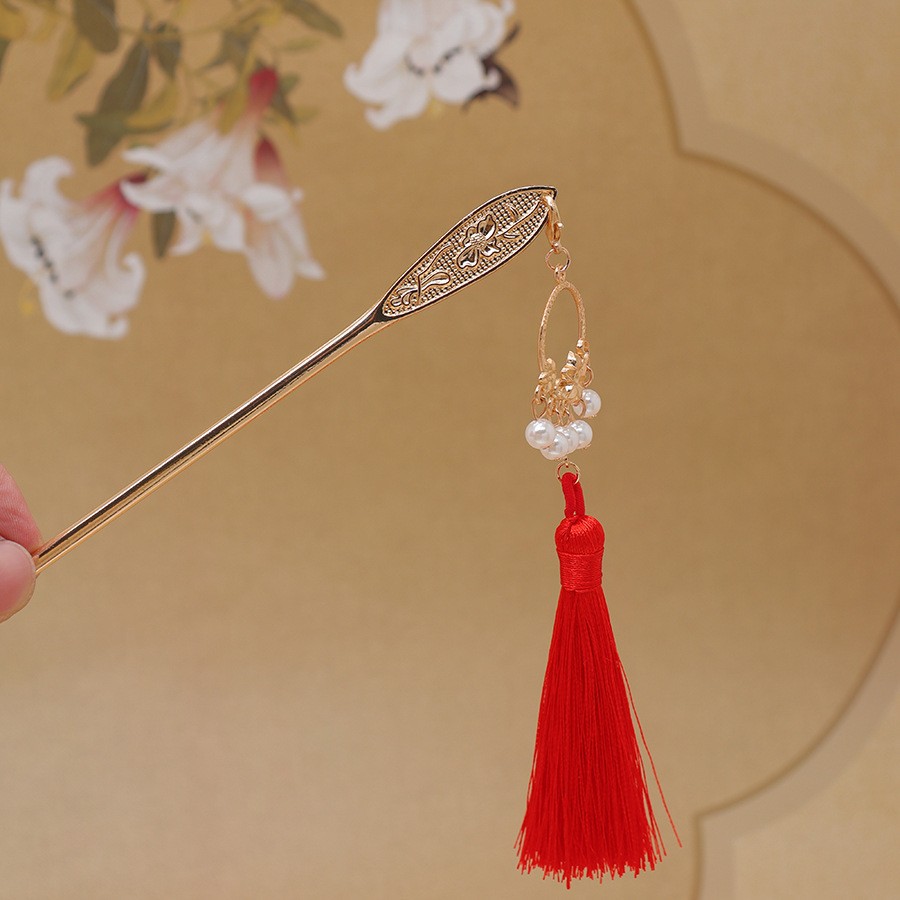 复古民族风发簪琉璃水滴银色步摇流苏古风日常简约簪子神棍簪子