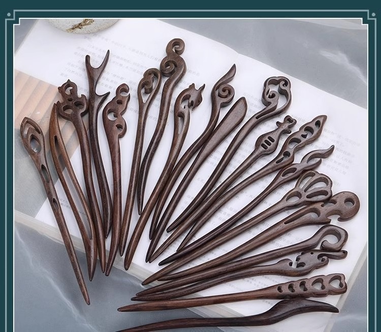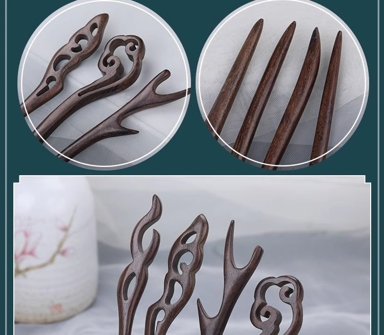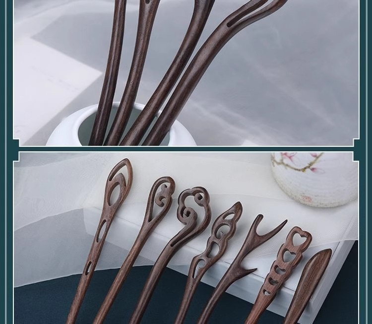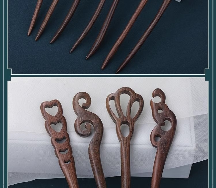 棕木檀木木簪子简约现代发簪古风发饰檀木盘发木簪汉服旗袍头饰