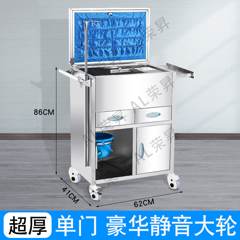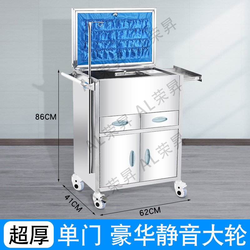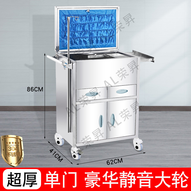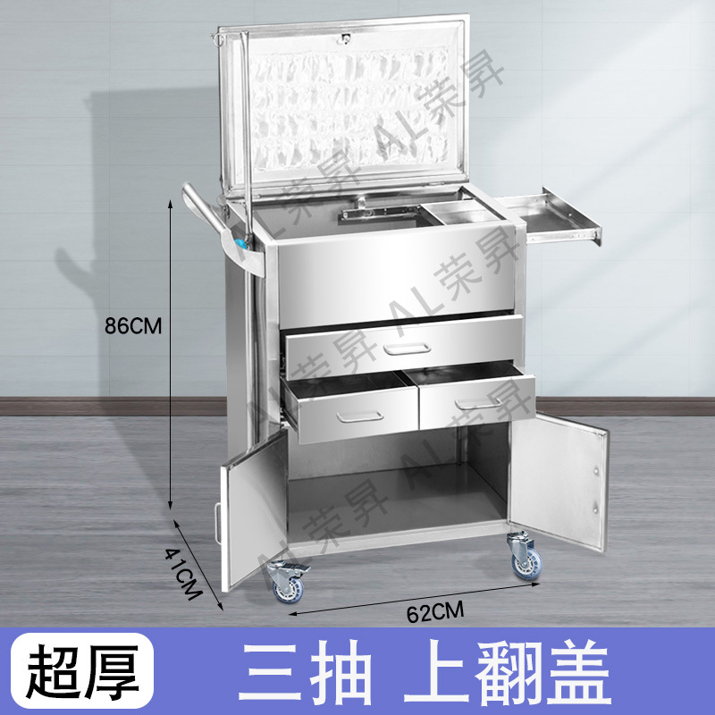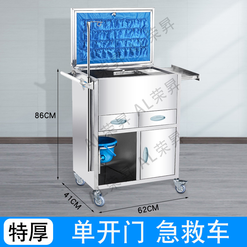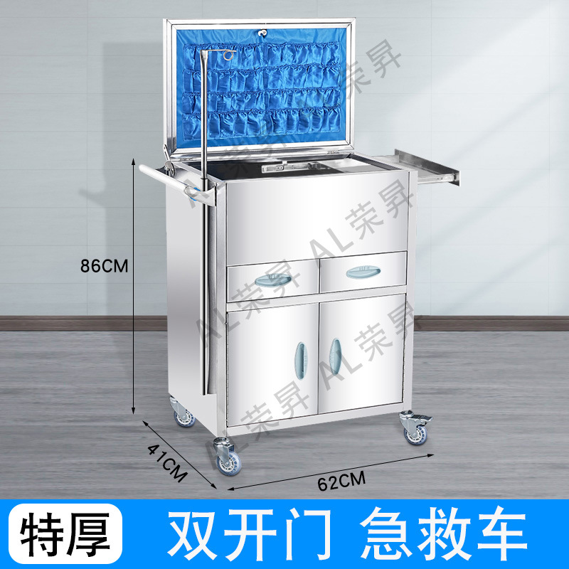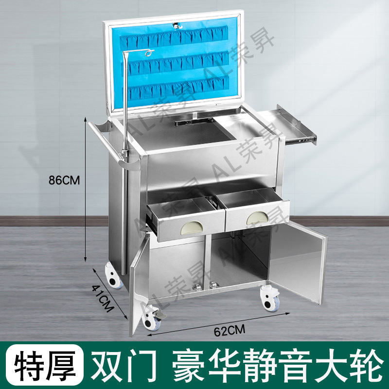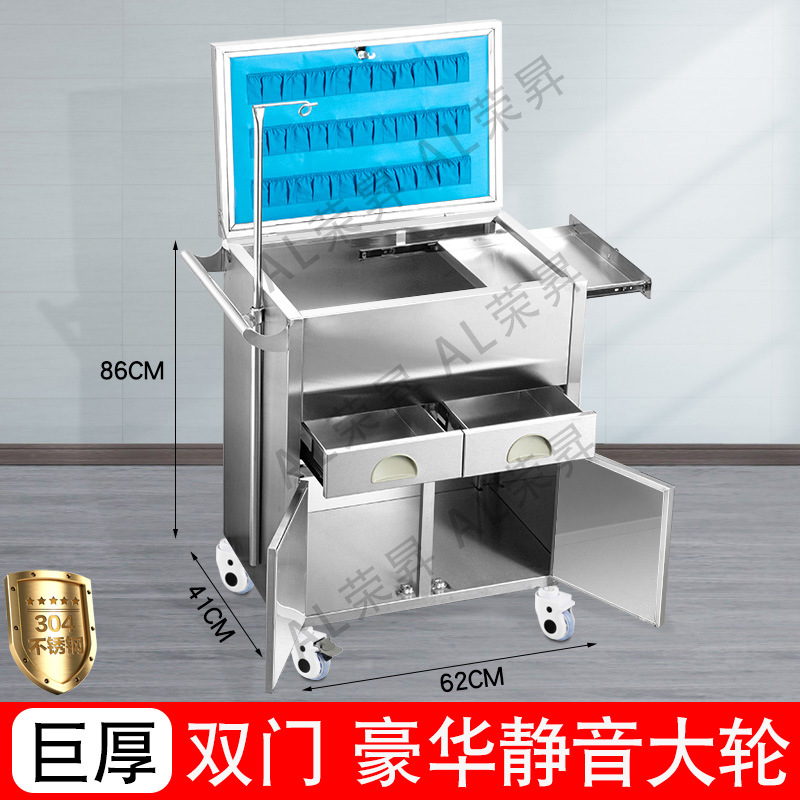 专供出口麻醉输液诊所急救车不锈钢柜药品换药翻盖仪器推车抢救车