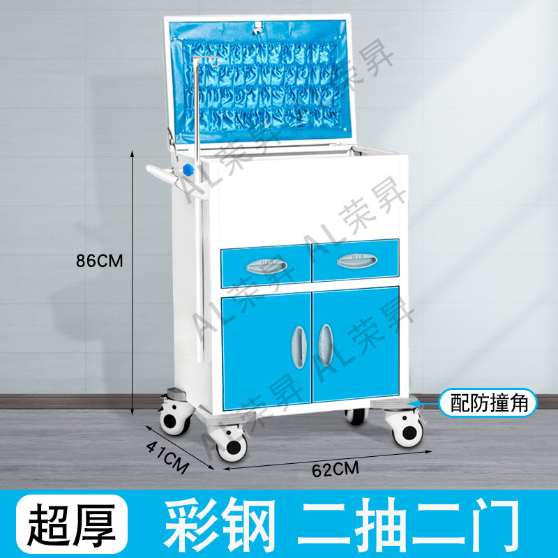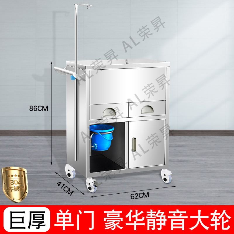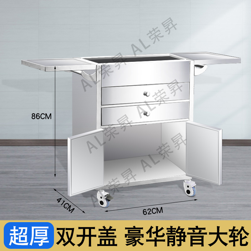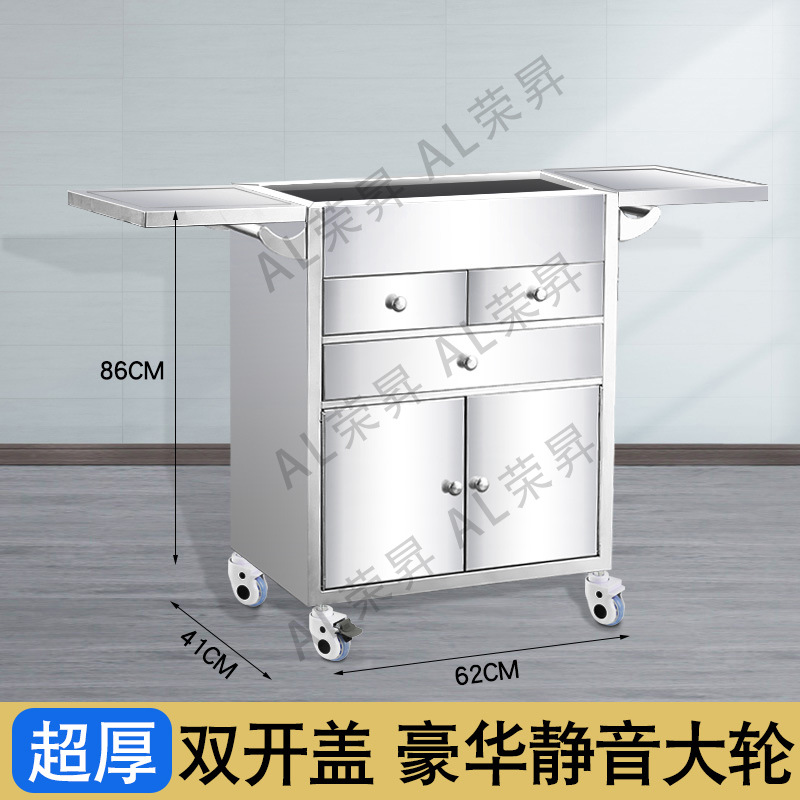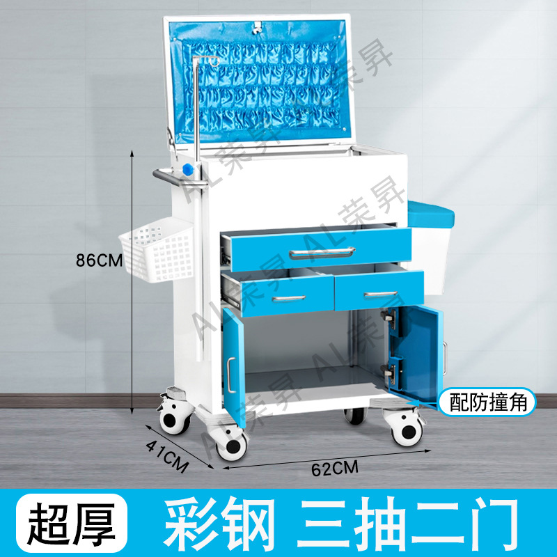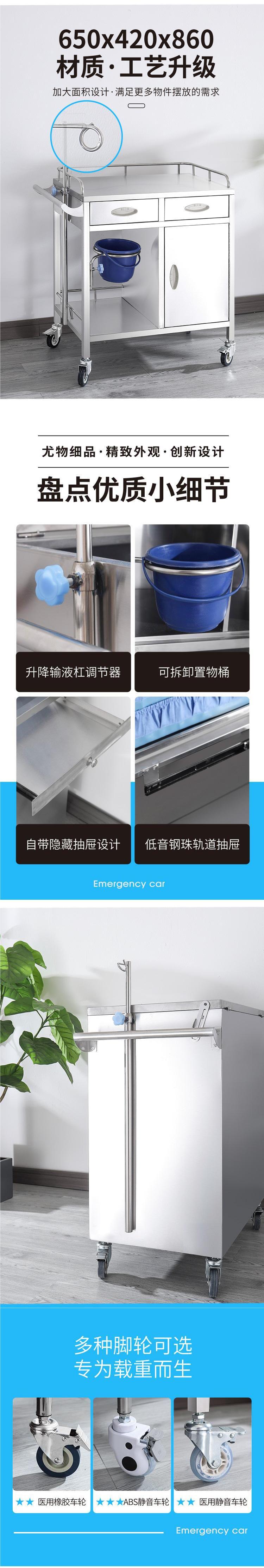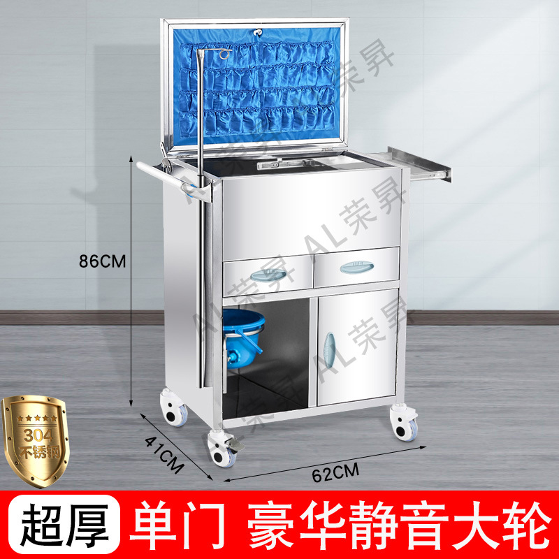专供出口麻醉输液诊所急救车不锈钢柜药品换药翻盖仪器推车抢救车
