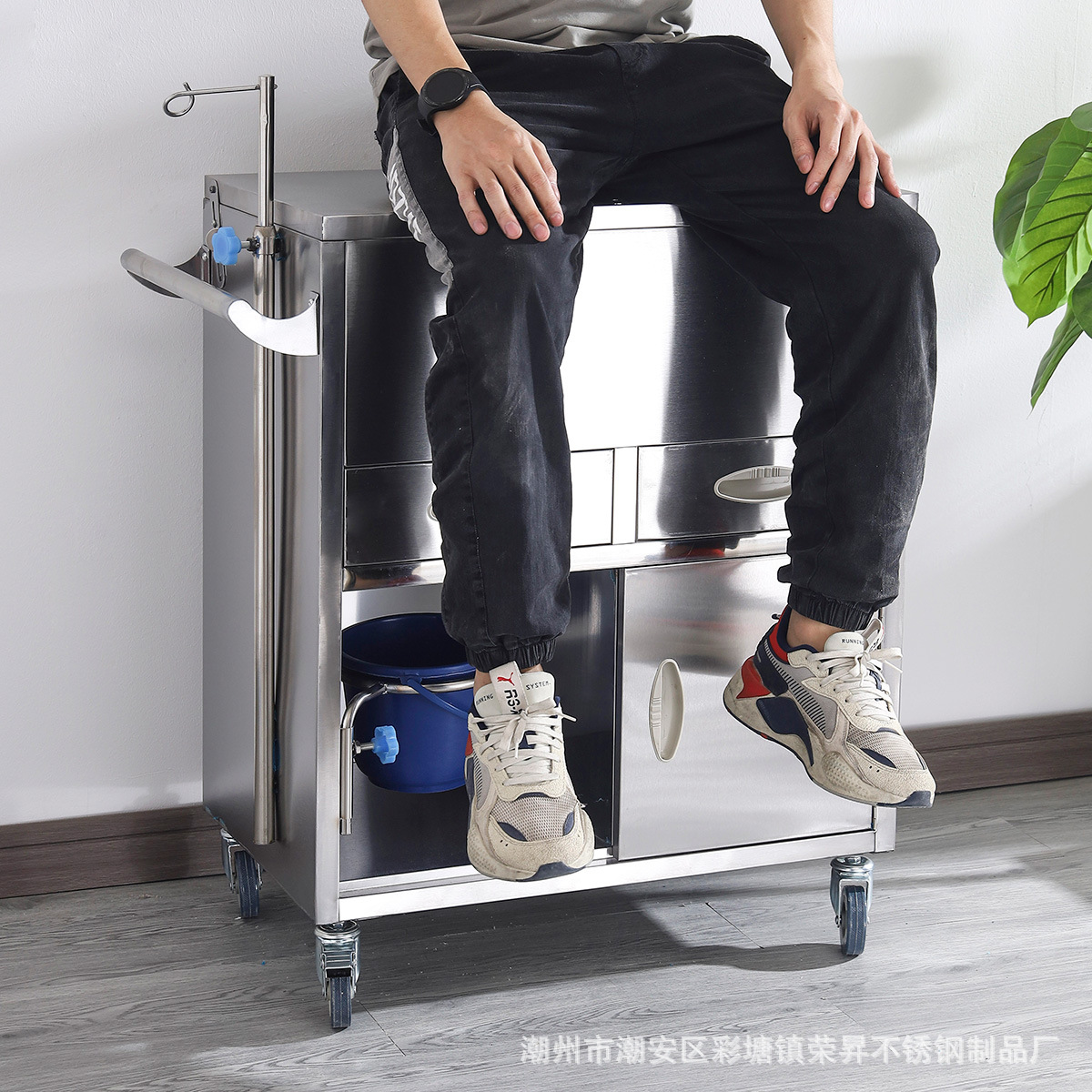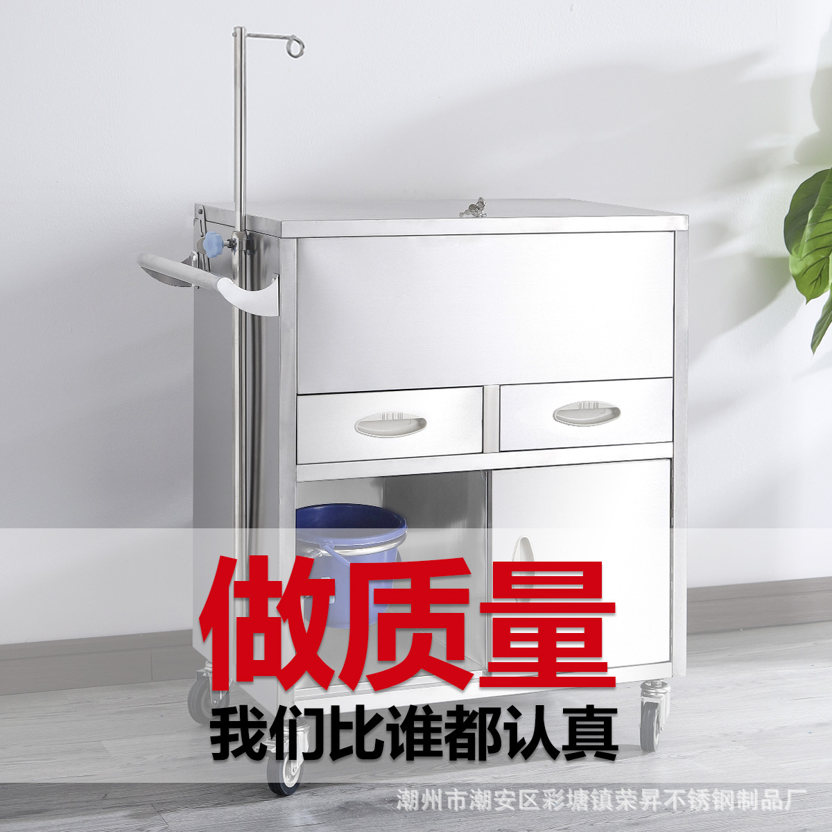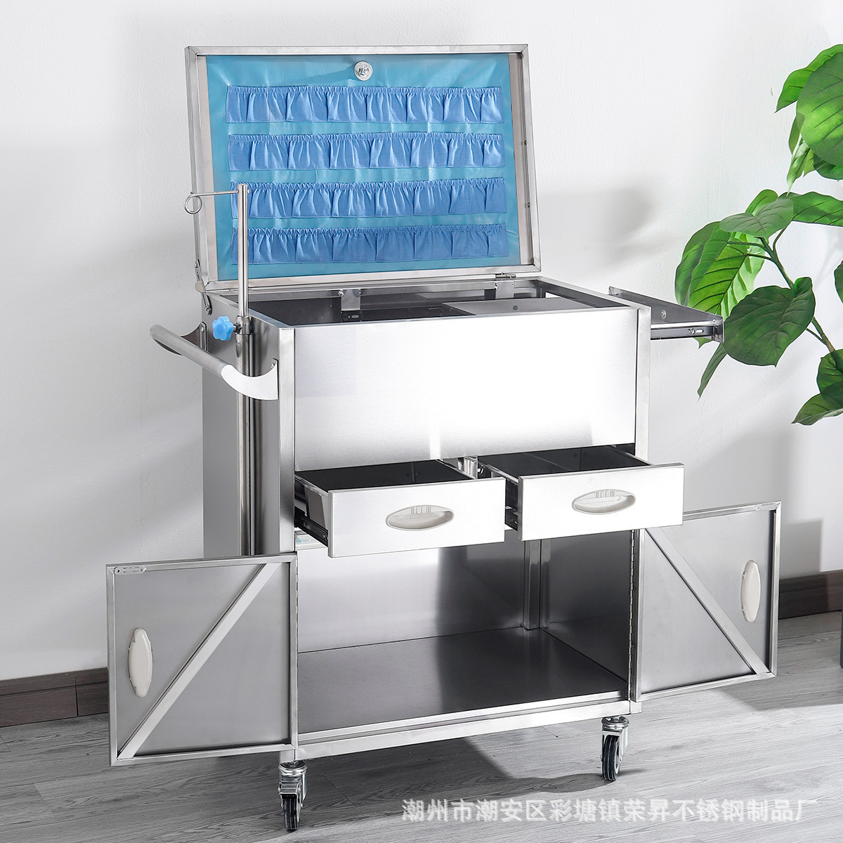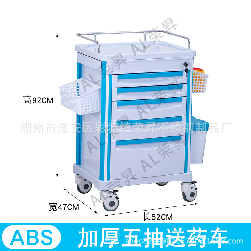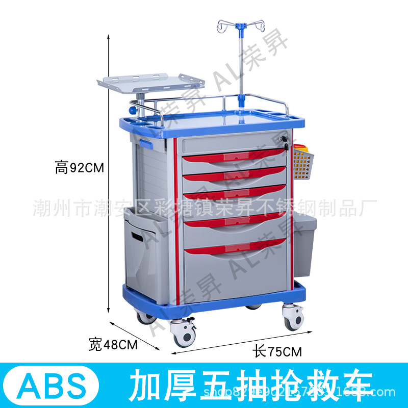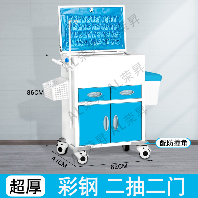 专供出口麻醉输液诊所急救车不锈钢柜药品换药翻盖仪器推车抢救车