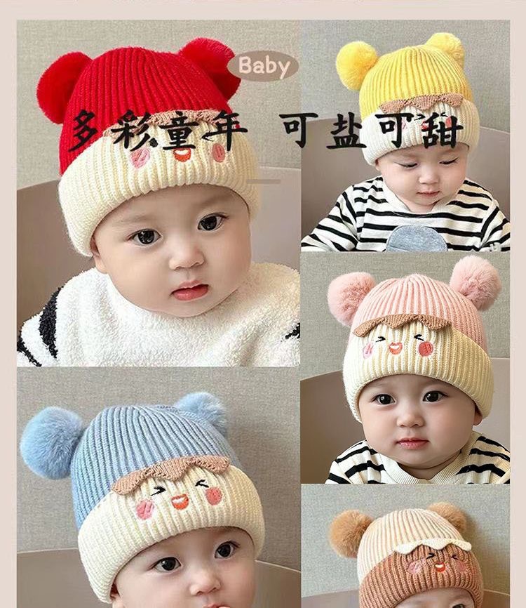 婴儿帽子秋冬季针织帽宝宝萌毛球帽男女儿童冬天保暖可爱帽子潮