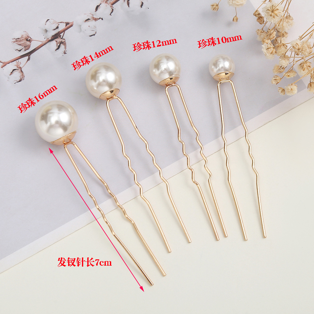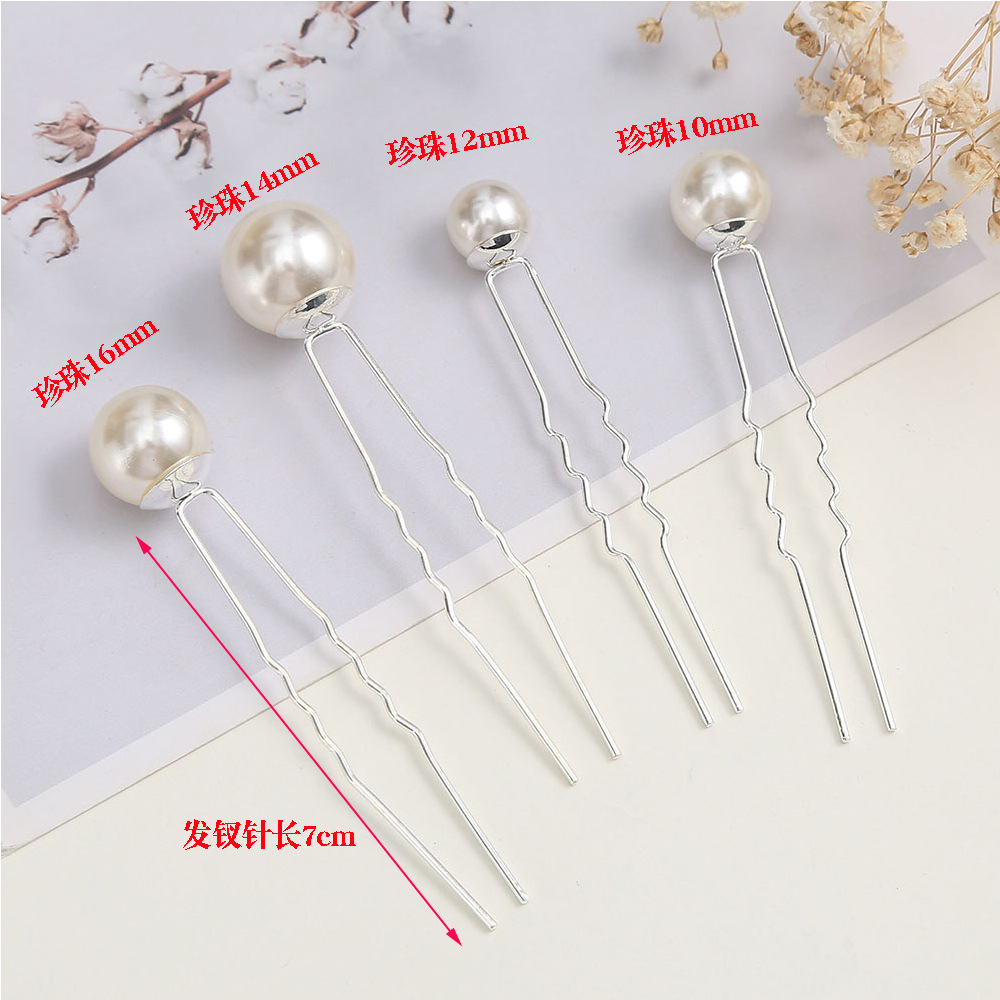韩国新娘头饰盘发簪子珍珠发钗 U形夹子结婚纱发饰品简约插针发卡