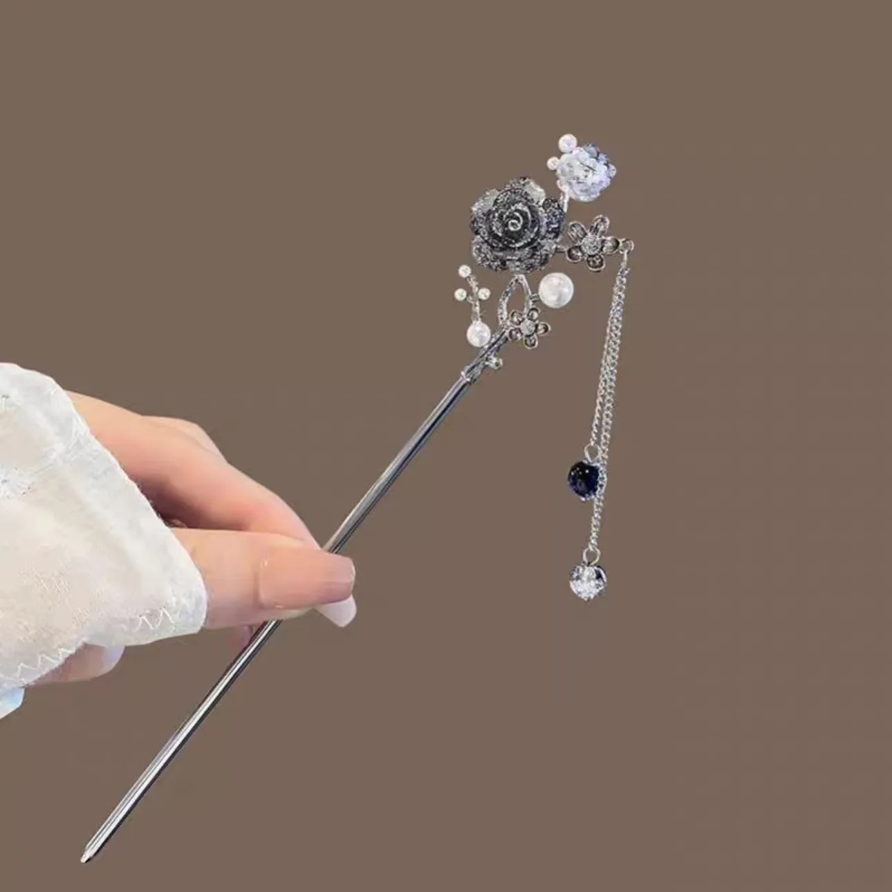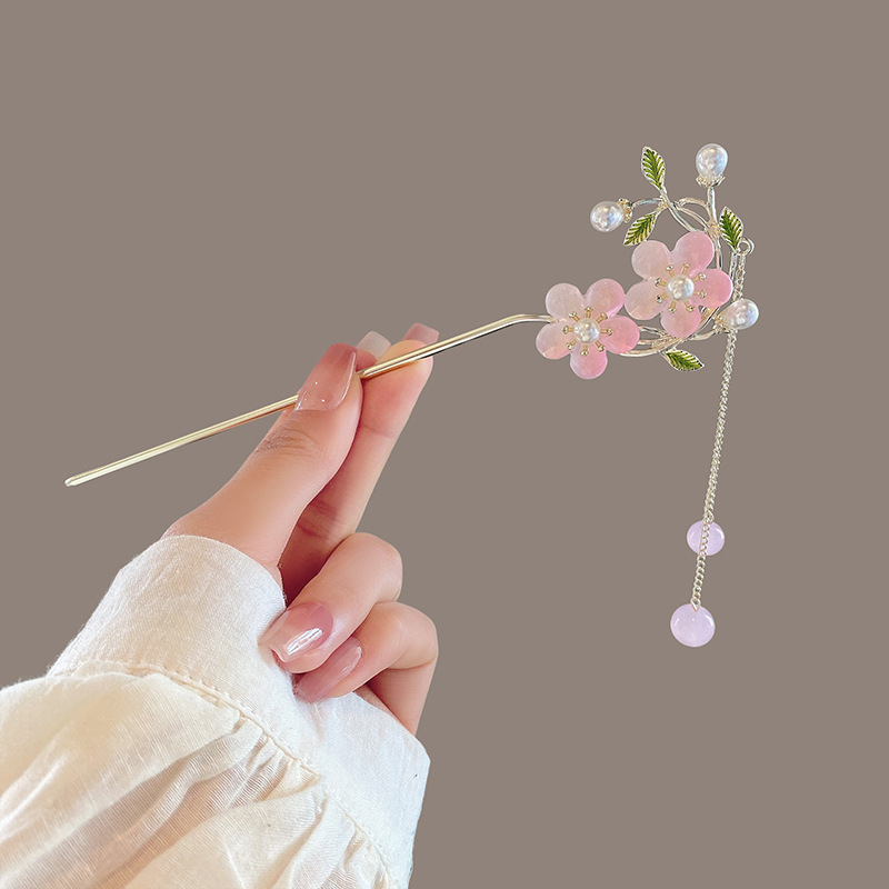 流苏古风发簪女盘发簪子高级感旗袍木簪女新中式花朵发钗发饰批发