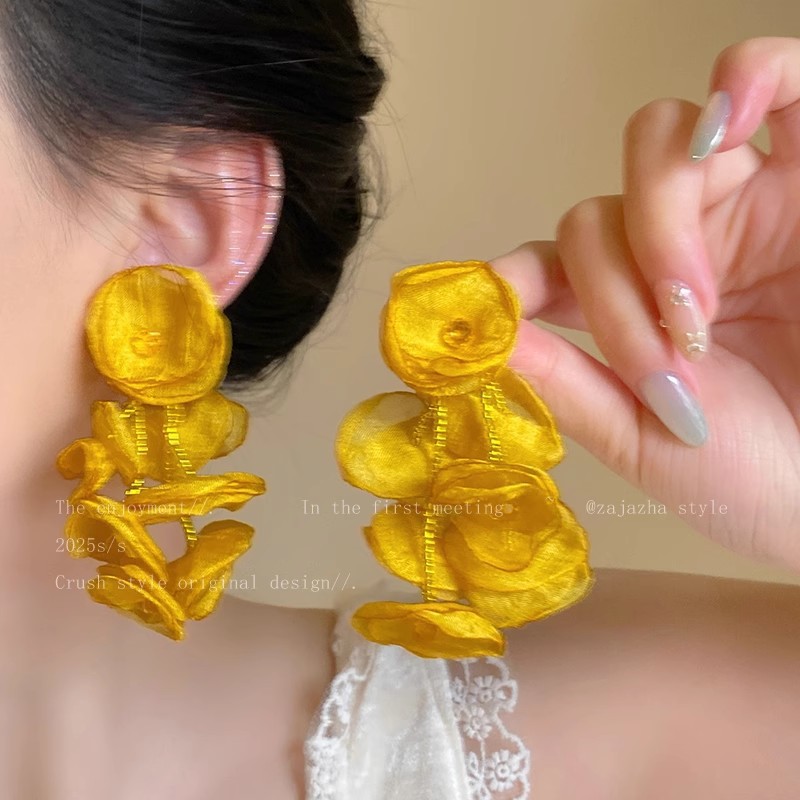 度假风温柔超仙气质长款流苏花朵耳环小清新百搭网红同款珍珠耳钉